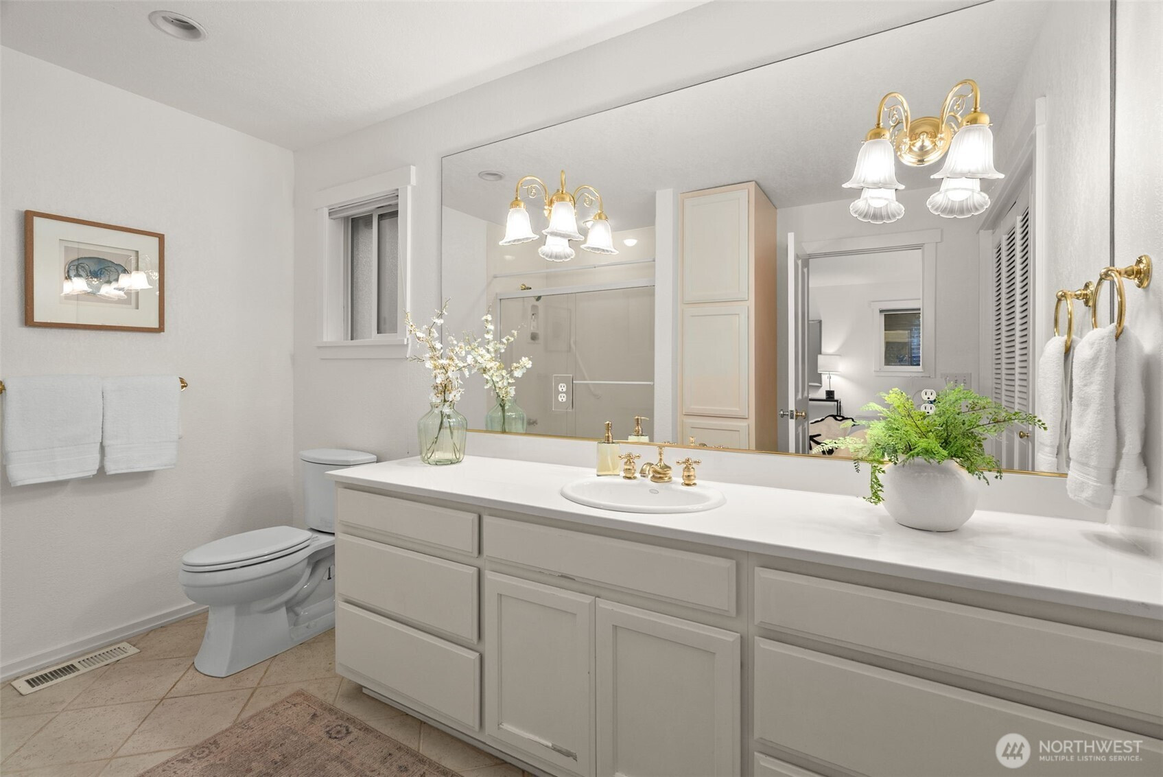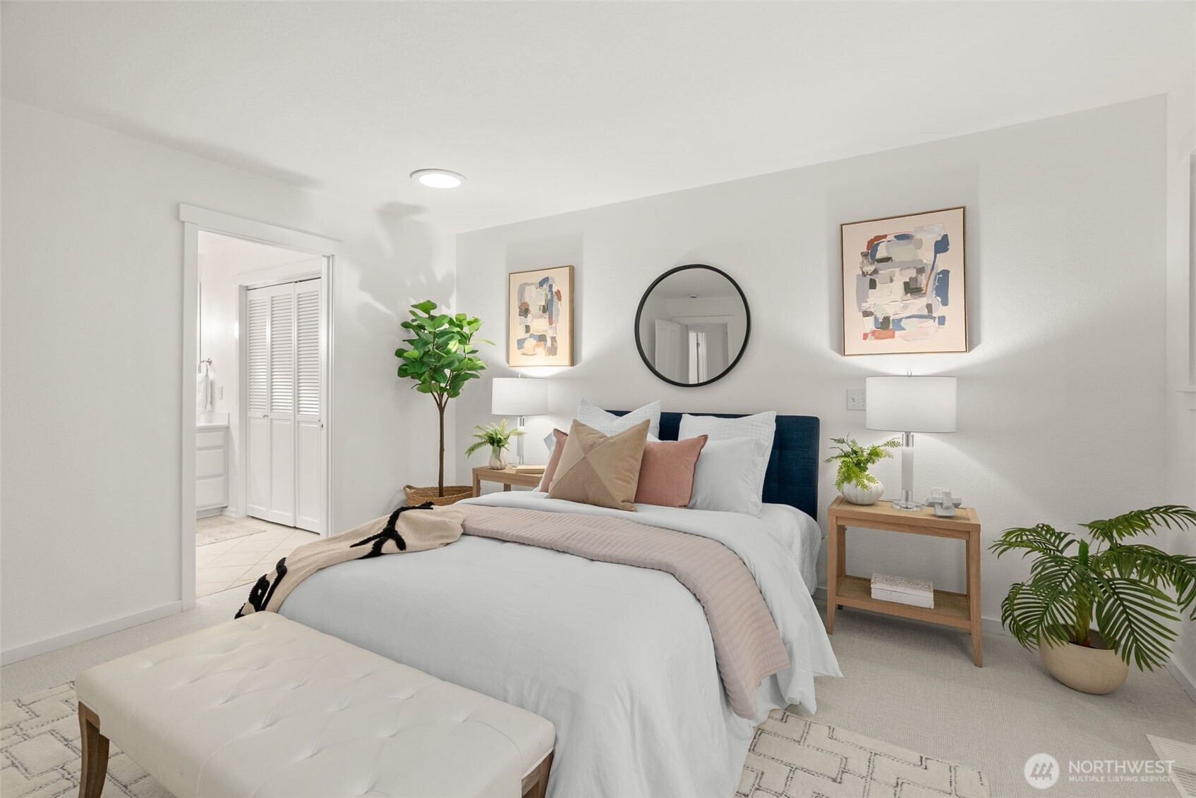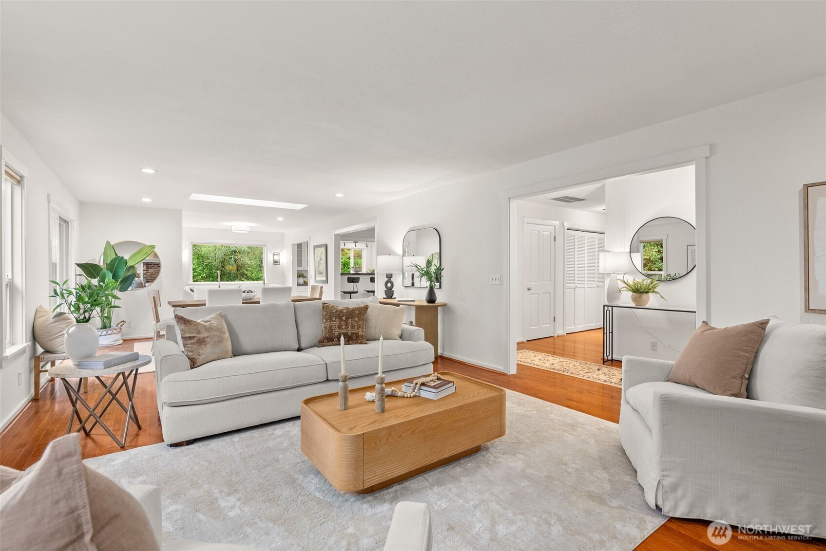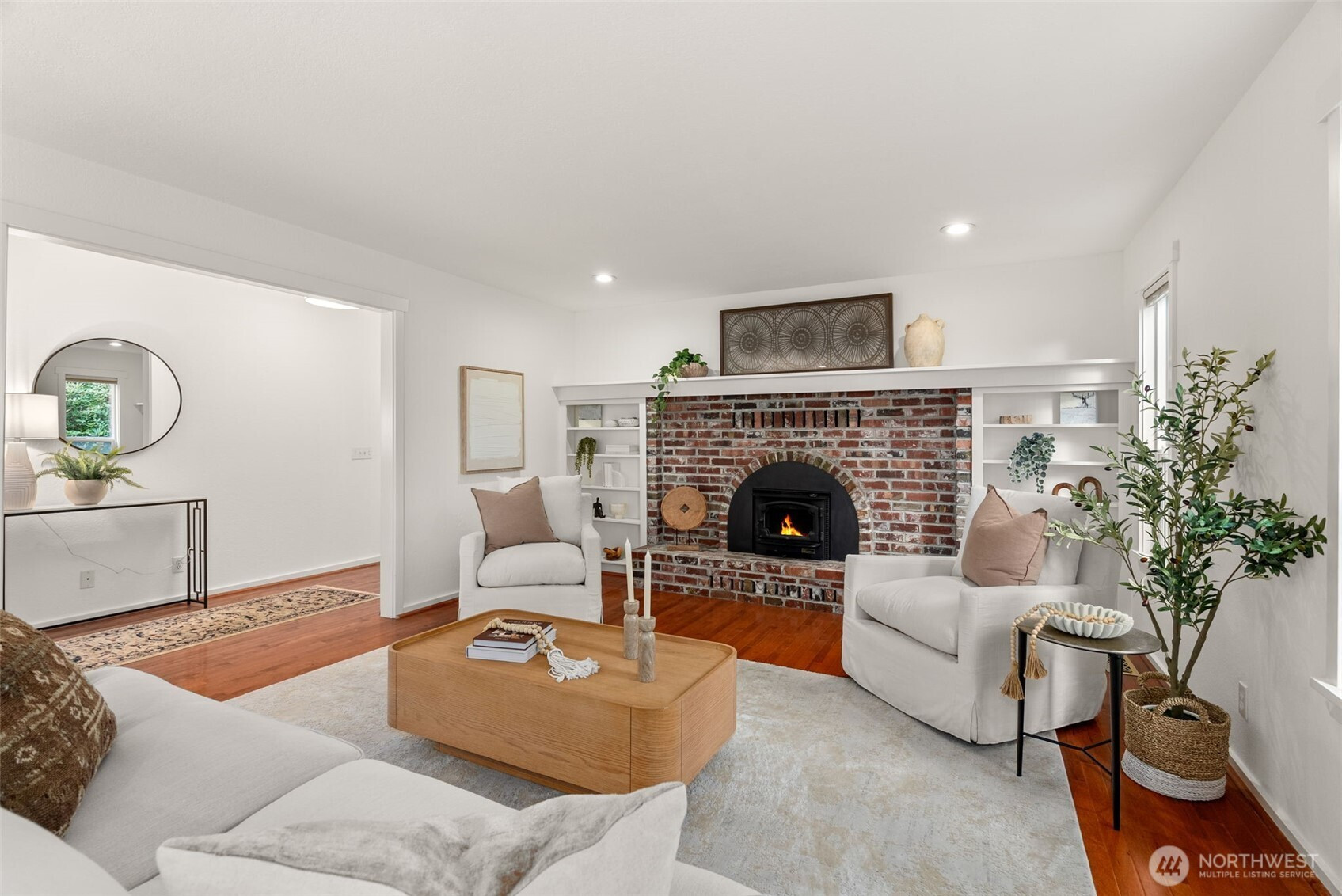 Tucked into the heart of historic Port Madison, this charming single-level home is set on a level half-acre with mature gardens and a circular drive, capturing a sense of ease and tranquility. Highly desirable Port Madison offers community members access to over 1,000 feet of private, pristine shoreline, a deepwater dock, a boat launch, and more than 40 forested acres of meandering, meditative trails. A cozy wood-burning stove, set in a custom brick surround, centers the living, dining, and sitting rooms. Two sliding glass doors open to the expansive wraparound deck, offering seamless indoor-outdoor living and views across the lawn and gardens to beautiful sunrises over Point Monroe. The gracious kitchen offers a breakfast bar, quartz counters, wood cabinets, a tile floor, and a garden-view window. The primary suite and second bedroom, each with a full bath, have new carpet and fresh paint. The large laundry/mudroom doubles as an office with a built-in desk. The home features rich 3/4-inch oak floors; a heat pump and furnace for efficient year-round heating and cooling; and a large two-car garage with plenty of room for storage. This lovely home is a stone’s throw from Fay Bainbridge Park, convenient to bus routes, and only a 12-minute drive to Winslow and the Seattle ferry. Welcome home!