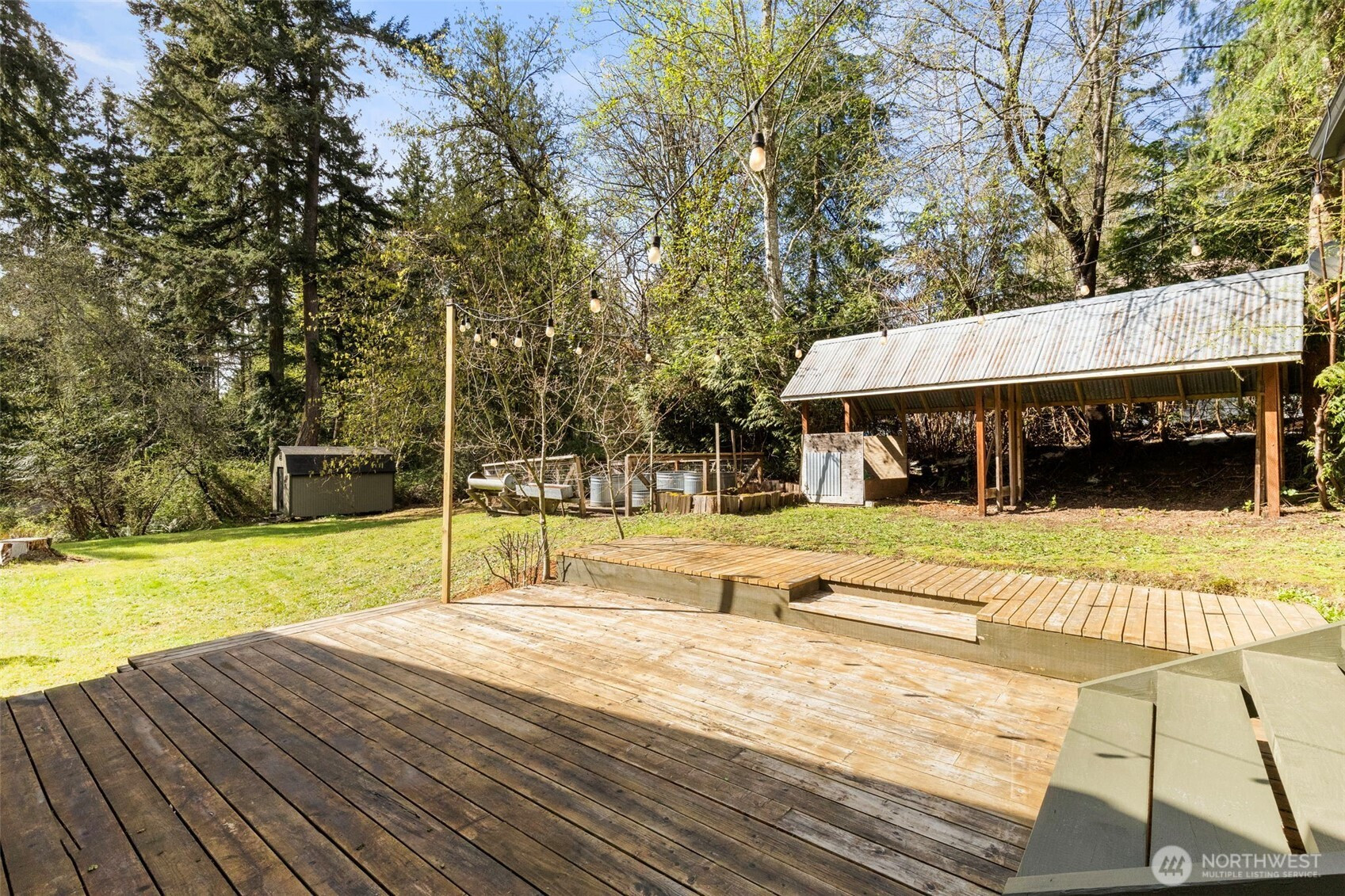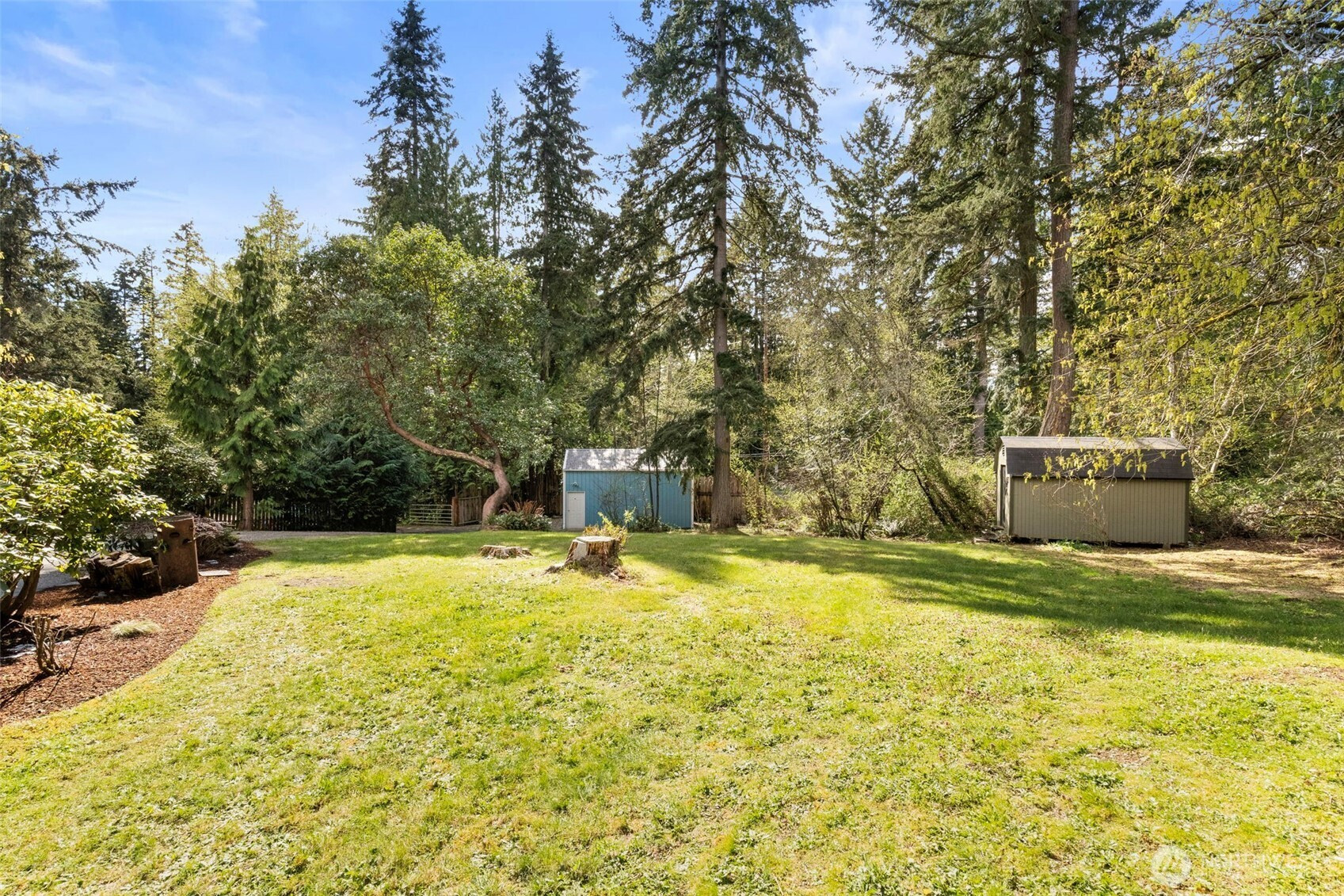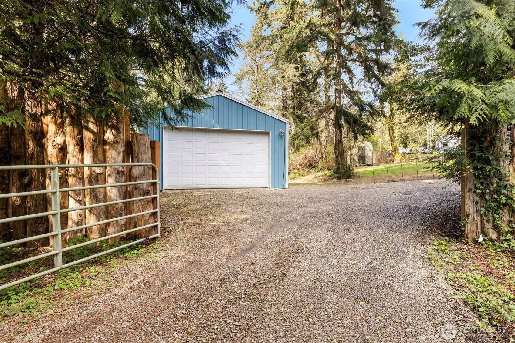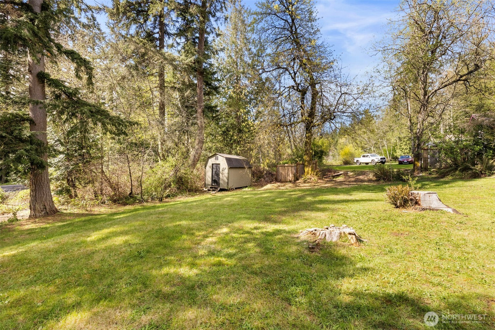 Enjoy effortless living in this updated 1,581 sq. ft. rambler on a spacious .52-acre lot. This 3-bedroom, 2-bath home features an open floor plan with cathedral ceilings and spacious living areas. The modern kitchen offers butcher block countertops, stainless steel appliances and a breakfast nook. Expansive backyard featuring a large deck that leads to a private, detached home office or studio with a cedar-lined ceiling and propane fireplace. Partially fenced lot with plenty of garden space, large detached shop/garage, attached 2 car garage, woodshed, outbuildings and newer roof. Ideally located for an easy commute to Kingston or Bainbridge ferries, highway access, and Navy bases.