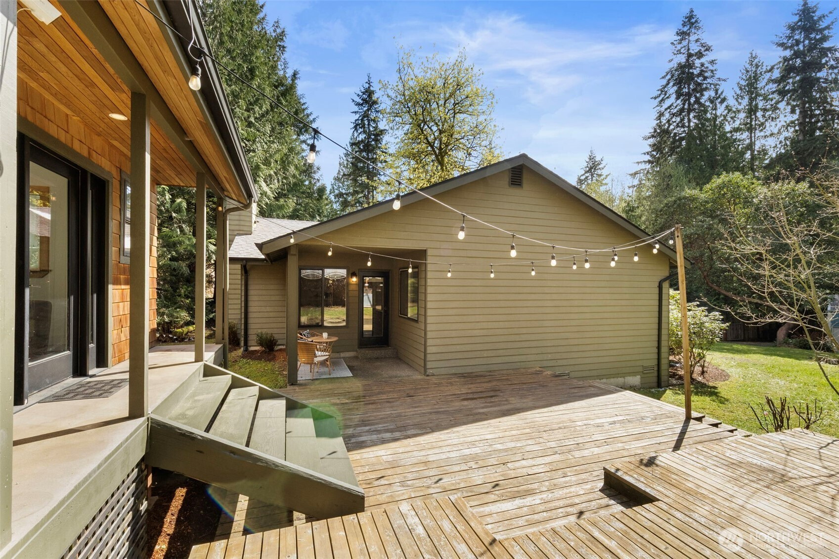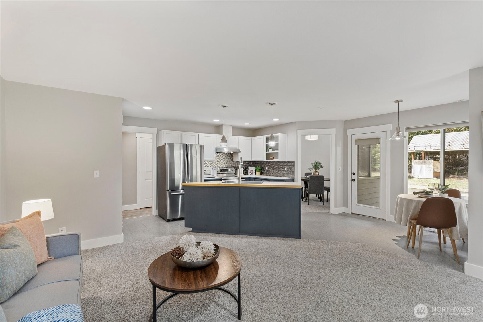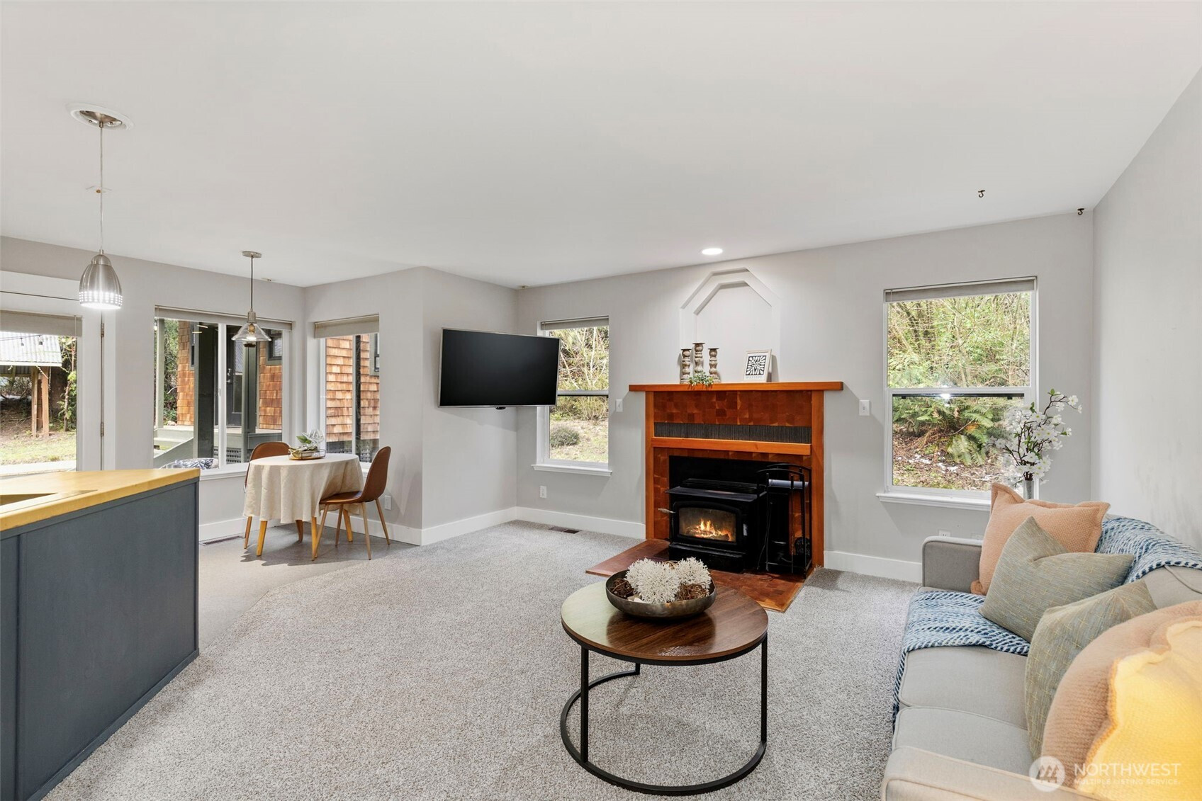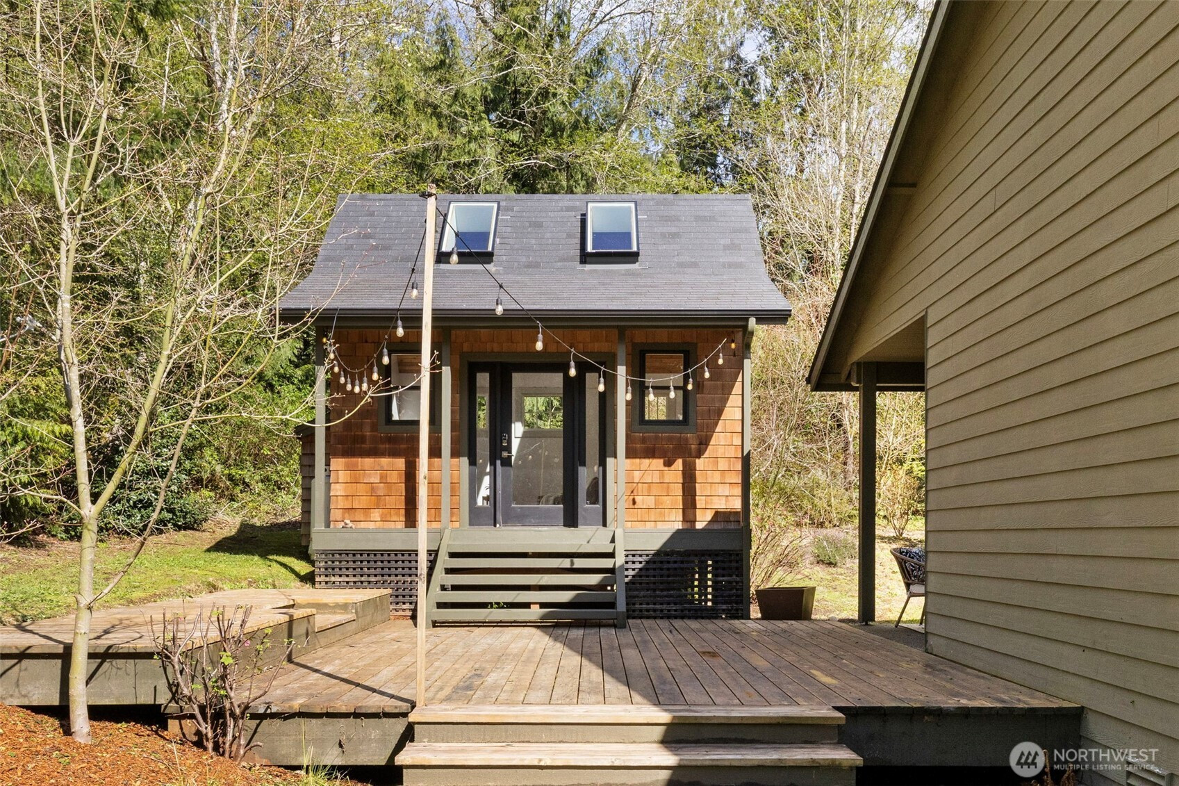 Enjoy effortless living in this updated 1,581 sq. ft. rambler on a spacious .52-acre lot. This 3-bedroom, 2-bath home features an open floor plan with cathedral ceilings and spacious living areas. The modern kitchen offers butcher block countertops, stainless steel appliances and a breakfast nook. Expansive backyard featuring a large deck that leads to a private, detached home office or studio with a cedar-lined ceiling and propane fireplace. Partially fenced lot with plenty of garden space, large detached shop/garage, attached 2 car garage, woodshed, outbuildings and newer roof. Ideally located for an easy commute to Kingston or Bainbridge ferries, highway access, and Navy bases.