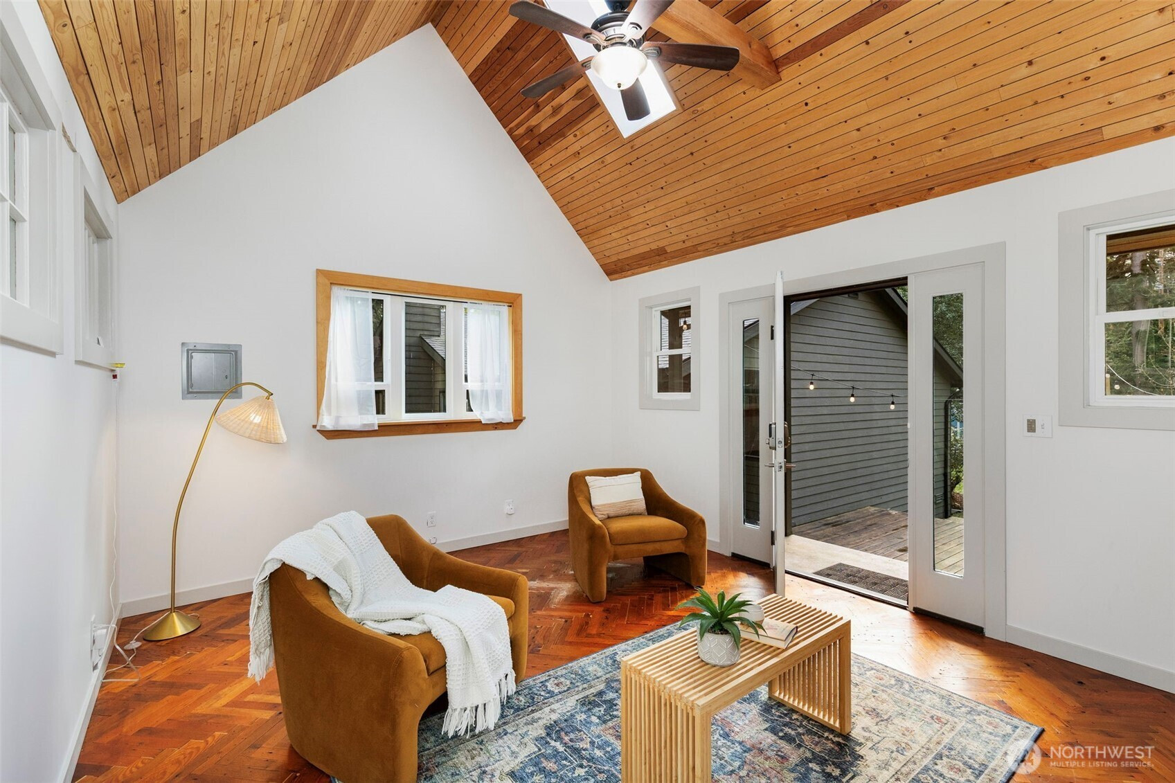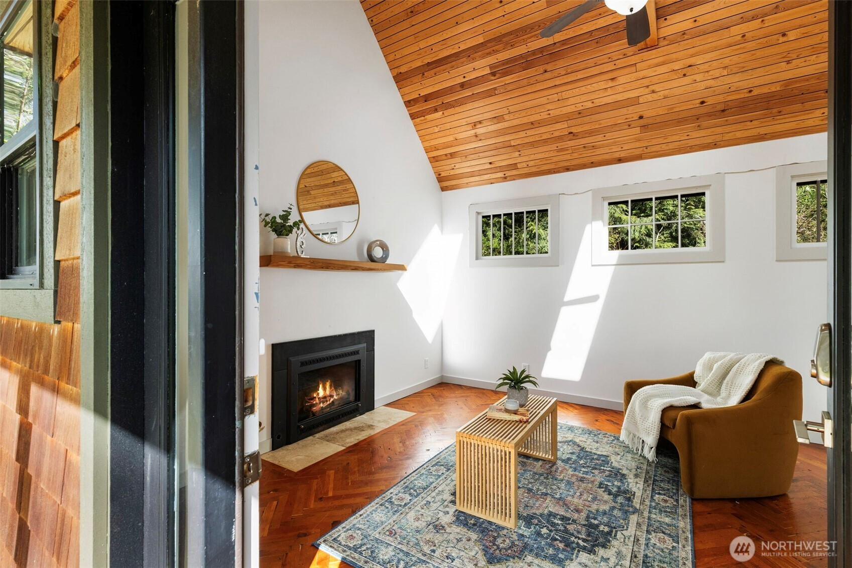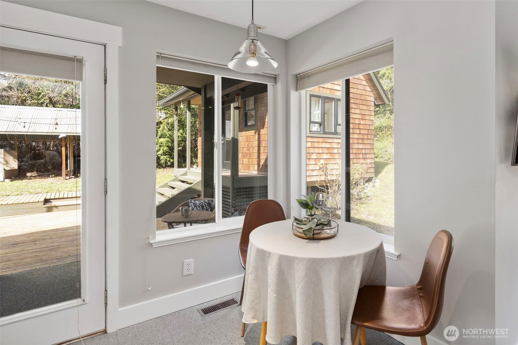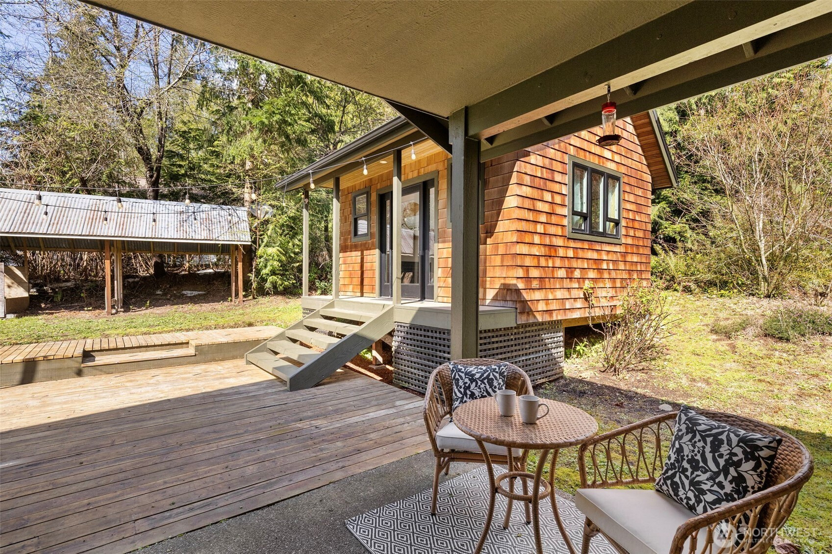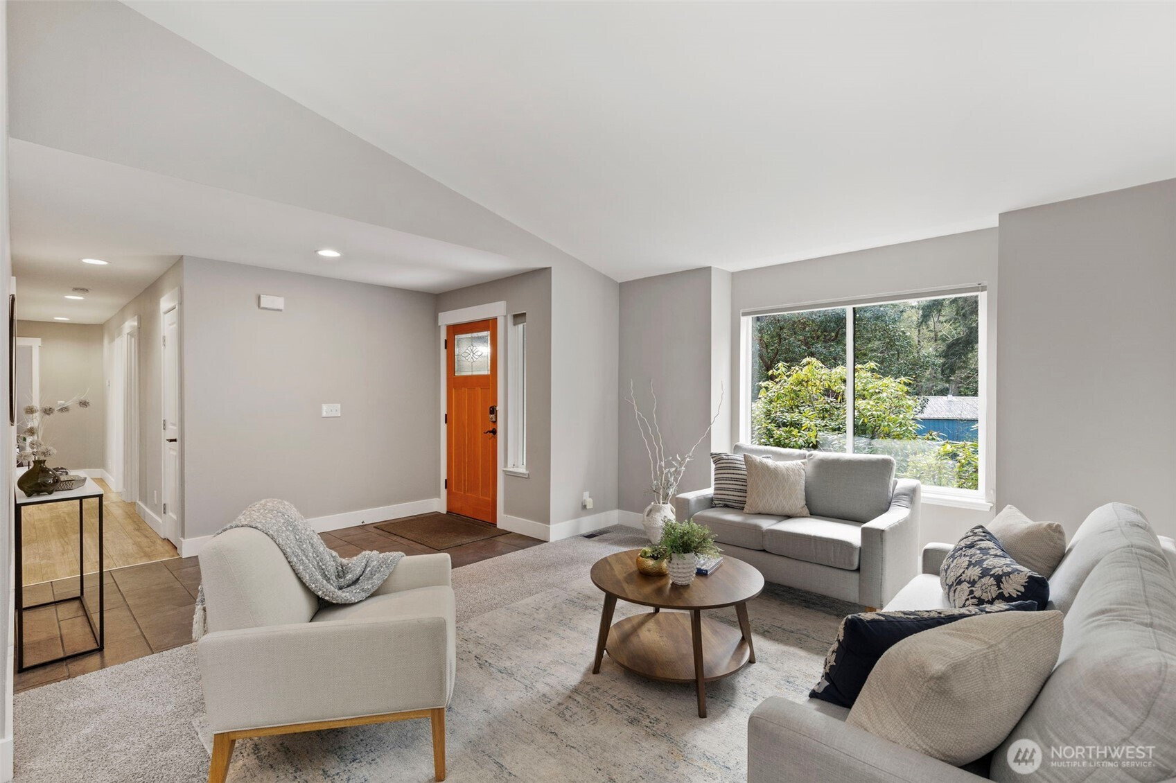 Enjoy effortless living in this updated 1,581 sq. ft. rambler on a spacious .52-acre lot. This 3-bedroom, 2-bath home features an open floor plan with cathedral ceilings and spacious living areas. The modern kitchen offers butcher block countertops, stainless steel appliances and a breakfast nook. Expansive backyard featuring a large deck that leads to a private, detached home office or studio with a cedar-lined ceiling and propane fireplace. Partially fenced lot with plenty of garden space, large detached shop/garage, attached 2 car garage, woodshed, outbuildings and newer roof. Ideally located for an easy commute to Kingston or Bainbridge ferries, highway access, and Navy bases.