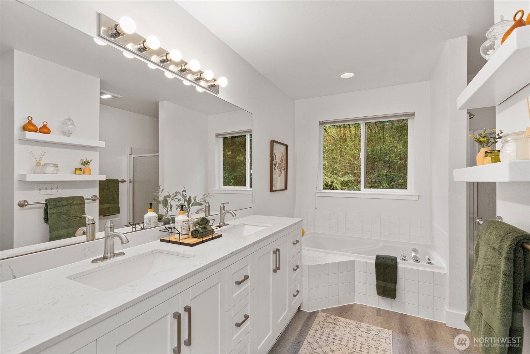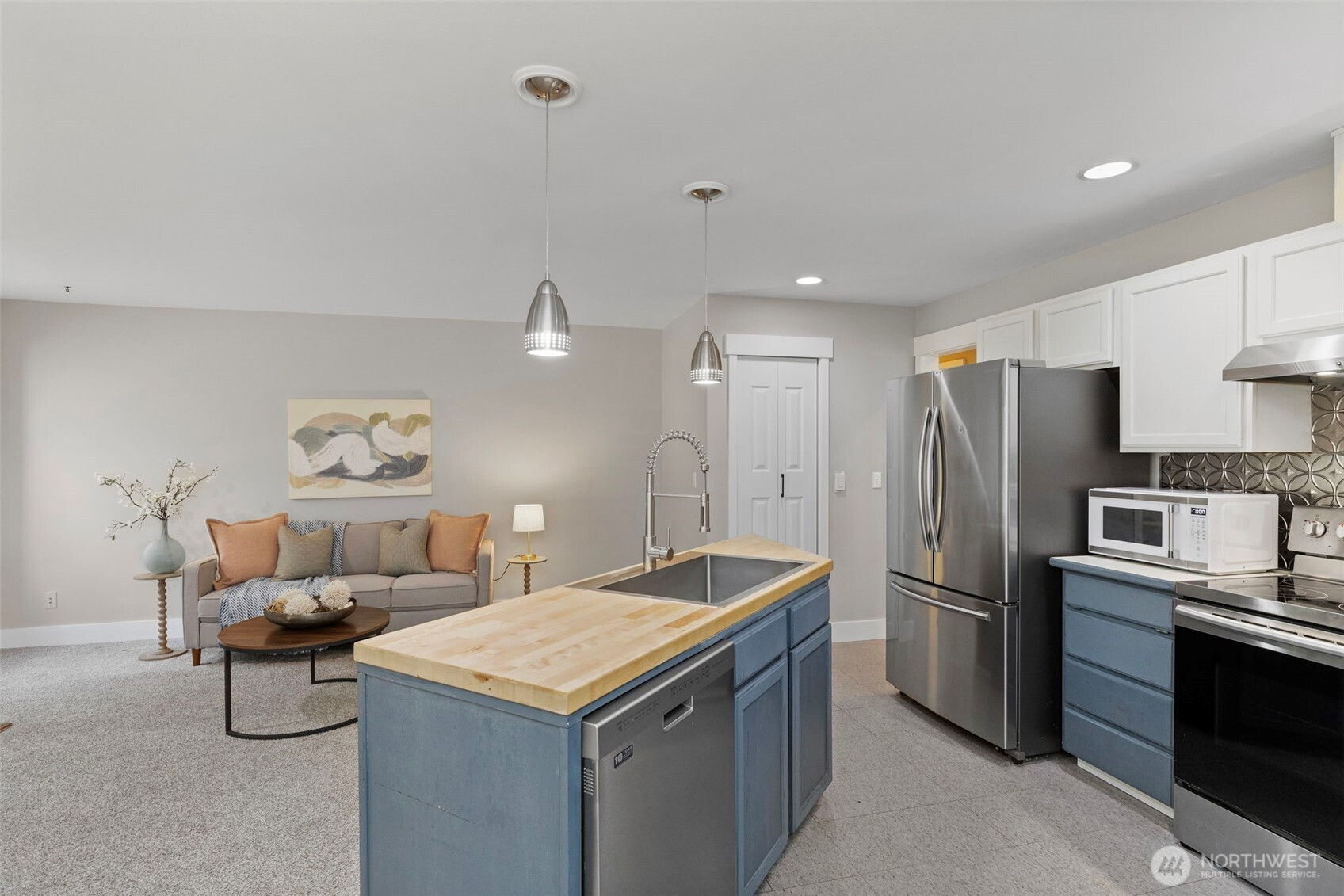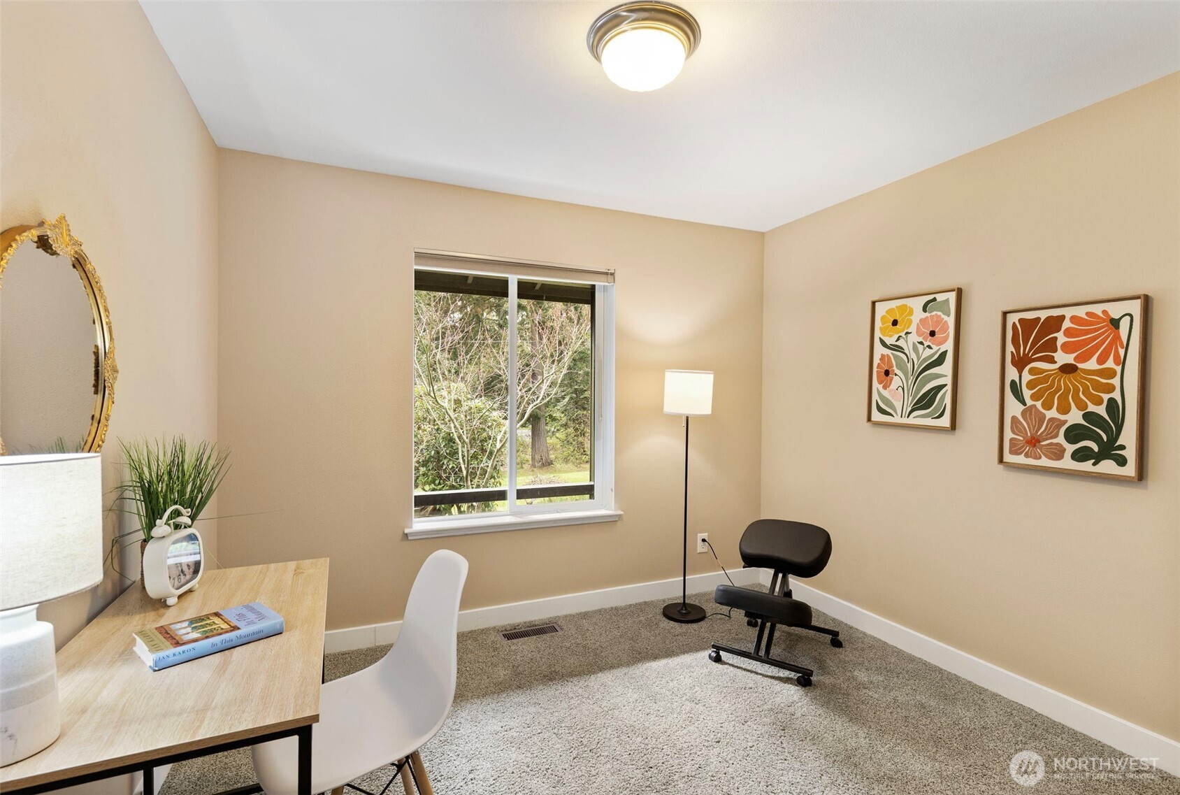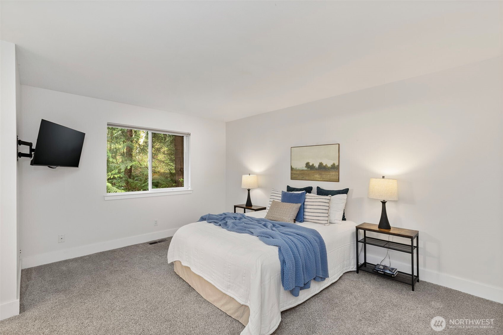 Enjoy effortless living in this updated 1,581 sq. ft. rambler on a spacious .52-acre lot. This 3-bedroom, 2-bath home features an open floor plan with cathedral ceilings and spacious living areas. The modern kitchen offers butcher block countertops, stainless steel appliances and a breakfast nook. Expansive backyard featuring a large deck that leads to a private, detached home office or studio with a cedar-lined ceiling and propane fireplace. Partially fenced lot with plenty of garden space, large detached shop/garage, attached 2 car garage, woodshed, outbuildings and newer roof. Ideally located for an easy commute to Kingston or Bainbridge ferries, highway access, and Navy bases.