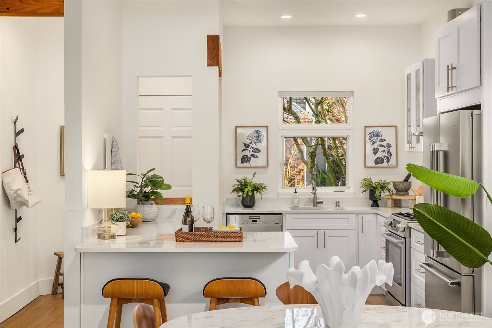 Situated in one of Winslow’s most convenient in-town locations, this residence offers a rare combination of tranquility, privacy, and natural beauty—just steps from shops, restaurants, parks, and the Seattle ferry. The home lives like a private garden retreat, enhanced by thoughtful redesign and refined updates throughout. Completely updated in 2023, the three-bedroom layout includes a main-floor bedroom currently serving as a family room. With a full bath and laundry also on the main level, the home comfortably supports aging in place.