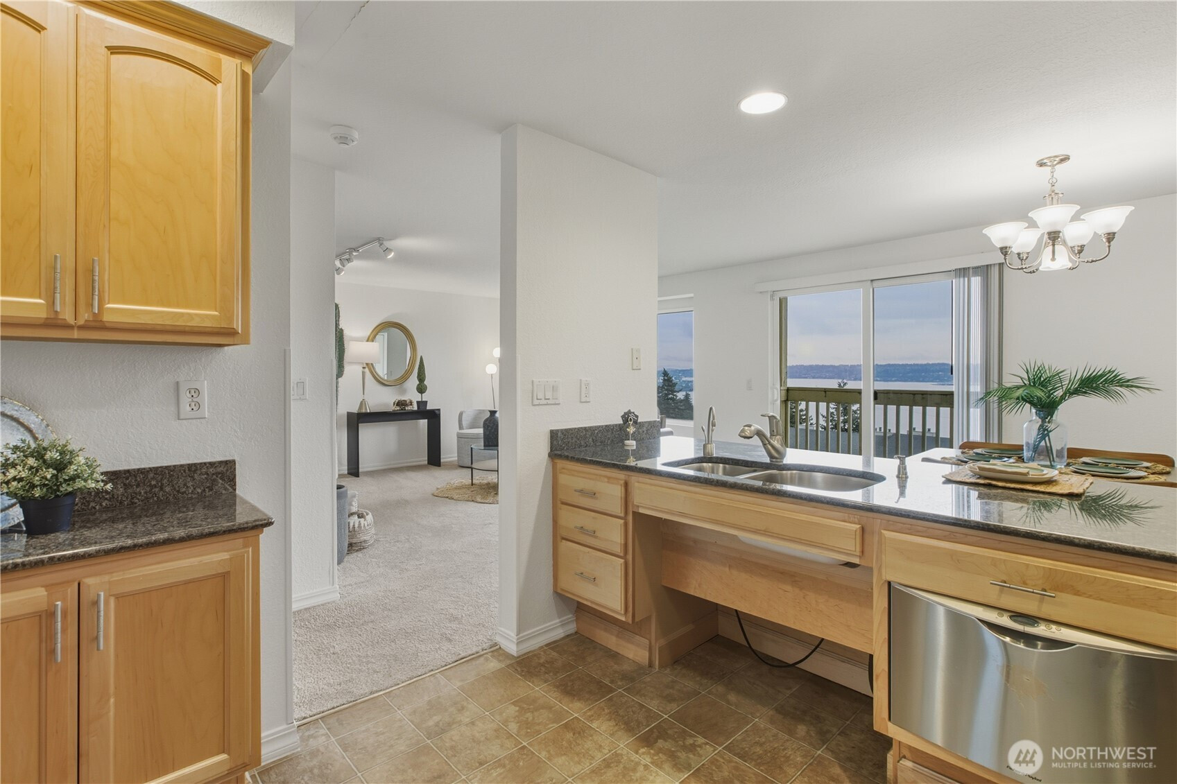 Breathtaking water views with true level entry—no stairs to climb! This light-filled 2BR condo offers effortless, single-level living with sweeping views of Sinclair Inlet from the living room, dining area, kitchen, and private balcony. Cozy up by the fireplace or enjoy the extra-spacious kitchen featuring granite countertops, shaker-style wood cabinetry, stainless steel appliances, and an eating bar—perfect for entertaining or everyday comfort. Perfectly positioned in the community for optimal views & quiet enjoyment. The generous primary bedroom and oversized bath with a double-wide walk-in shower provide ease and accessibility. Ample storage, full-size stacked washer/dryer, and parking included. Low HOA dues cover W/S/G and more. Enjoy resort-style amenities including pool, spa, fitness center, tennis courts, dog park, clubhouse, and guest parking. Ideally located minutes to Downtown Bremerton, ferry, parks, and just a short commute to Naval Base Kitsap—an exceptional opportunity for military members or anyone seeking low-maintenance waterfront adjacent living.