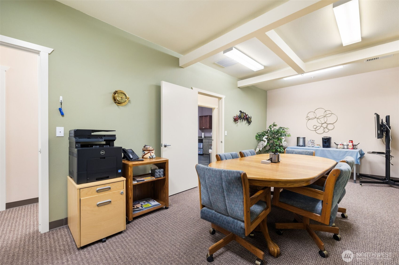 Perfect opportunity to own an office condo unit in the heart of the Port Orchard medical corridor. Currently being used as a law office but set up and ready for a medical practice to go in here as well. You enter this space into a fantastic lobby / reception area with an enclosed receptionist office with a large window to open into the lobby for greeting visitors.Includes a lunch room in the back and private ensuite bathroom. 1 large conference room with an observation room behind a 1 way glass mirror. 5 individual office spaces as well as multiple very large storage closets. Elevators and staircase both accessible from entry / public spaces.