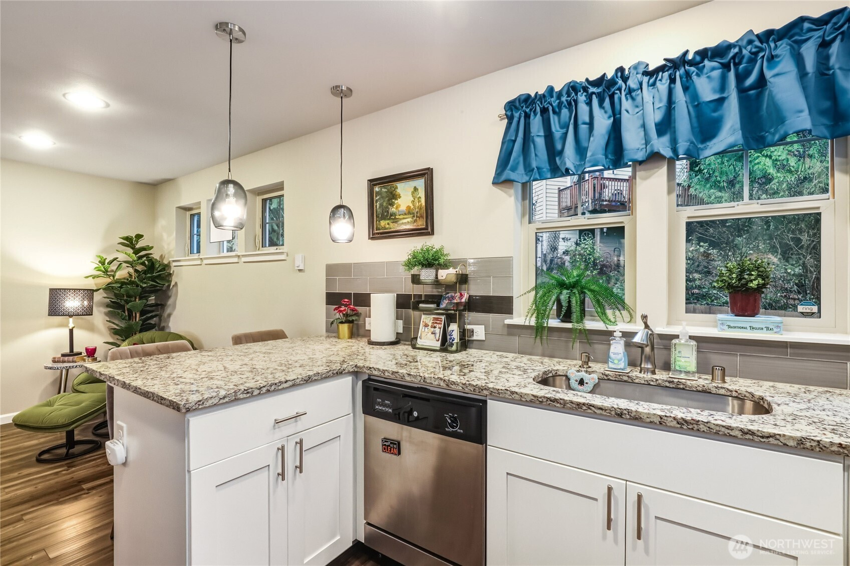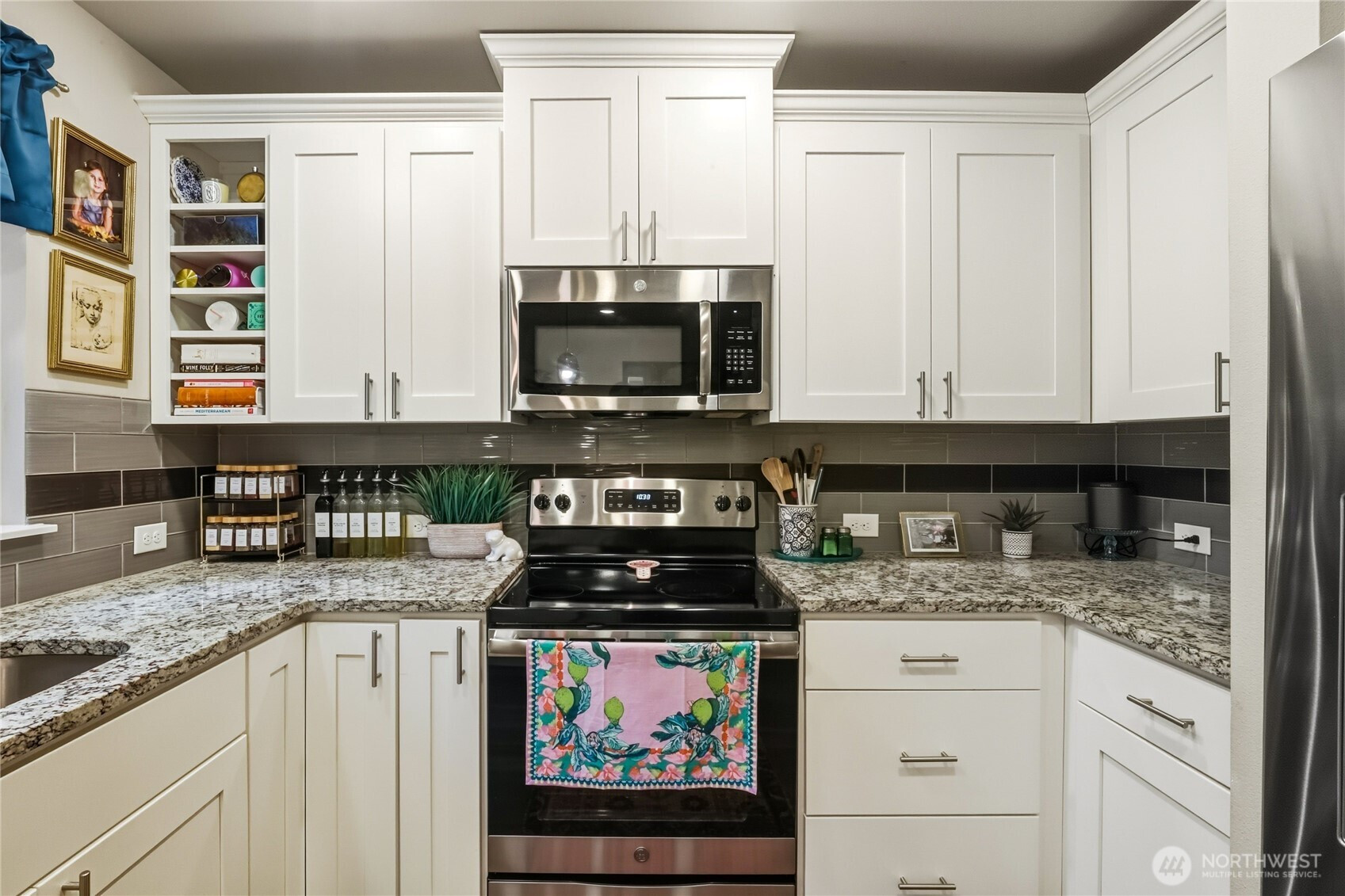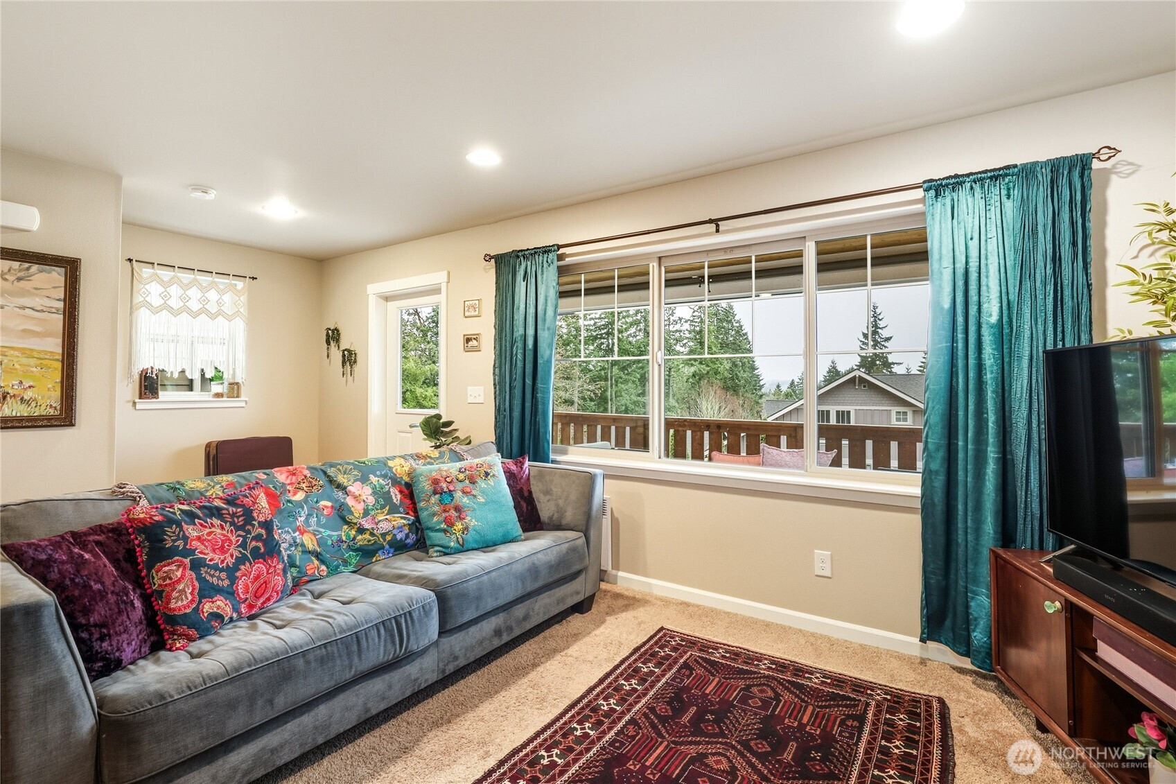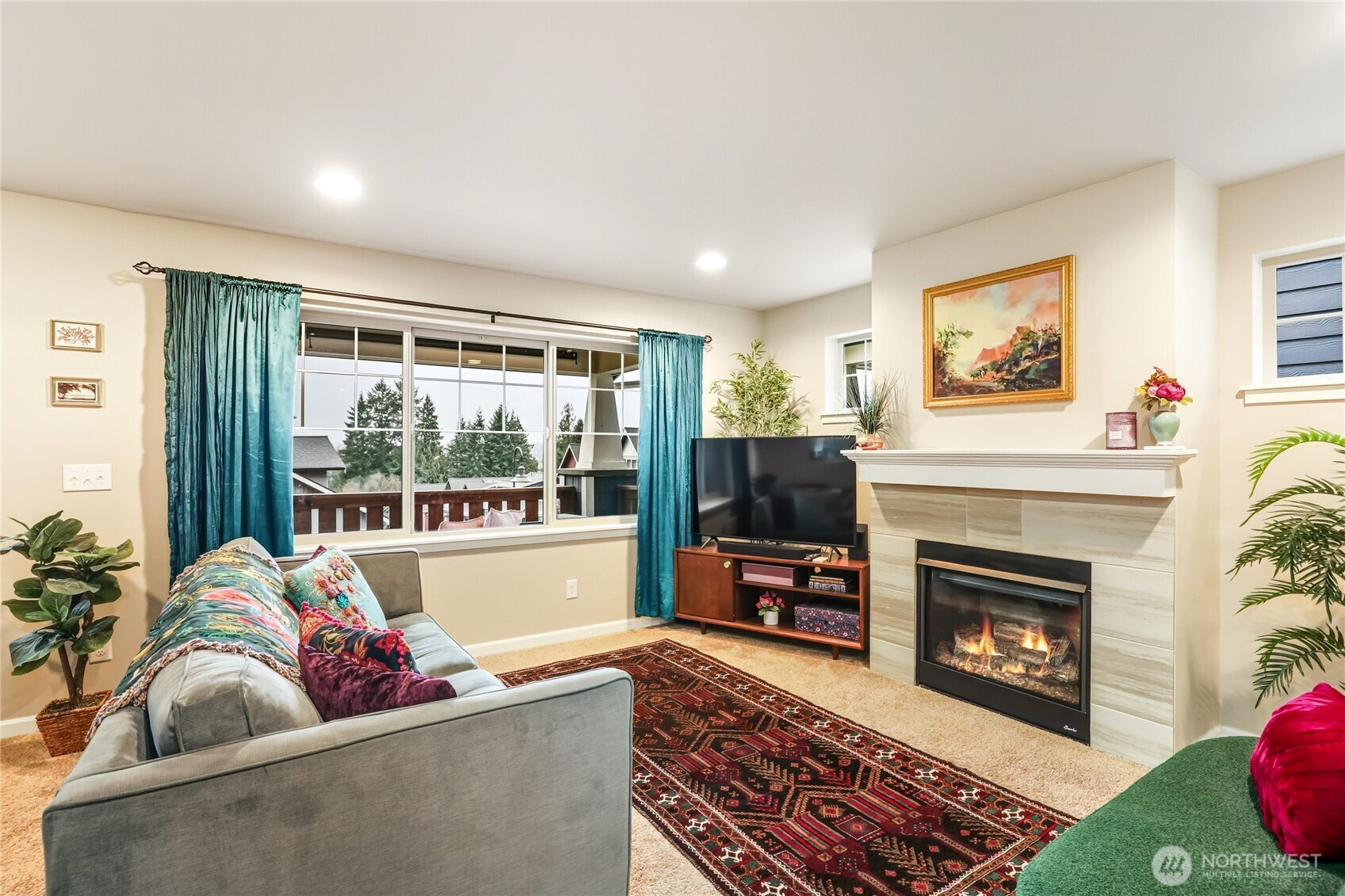 Beautiful NW craftsman home in Snowberry Bungalows, built in 2017 and thoughtfully designed across three levels. Enjoy striking Mountain and Sound views. The main floor offers a bright living room with a gas fireplace, a stylish kitchen with quartz counters, stainless steel appliances, a cozy nook, and access to a spacious deck. The top floor includes two bedrooms, a full bath, and a serene primary suite with an en-suite. The lower level provides a flexible den or office plus a half bath. A 2-car tandem garage and radiant wall heat add convenience and energy efficiency to this exceptional home.