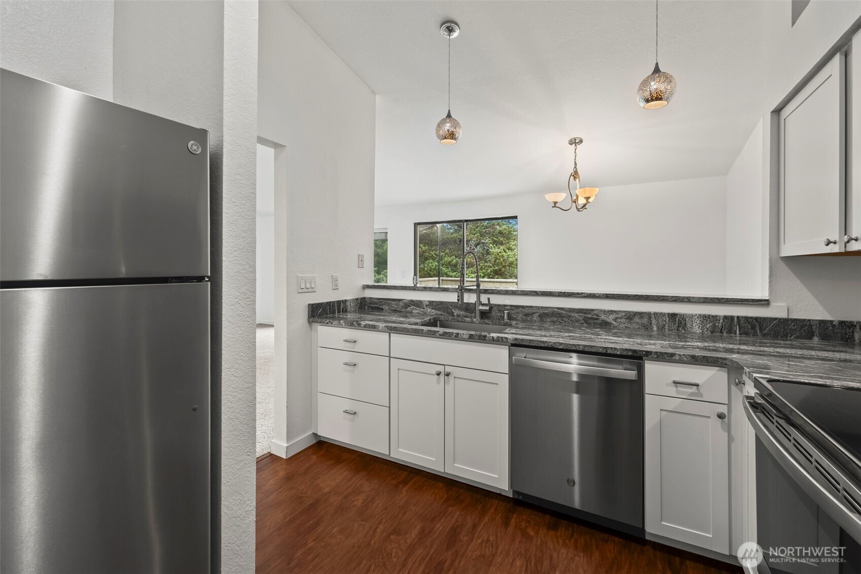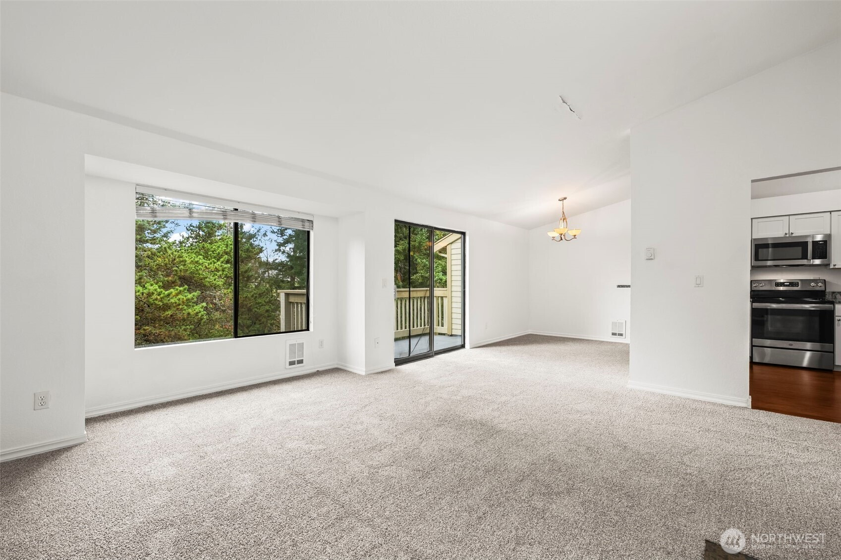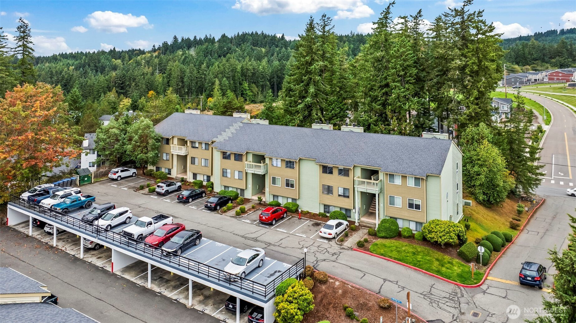 This Sunn Fjord unit is unlike any other! Situated on the top floor, this end-unit stuns with vaulted ceilings and modern finishes. With no upstairs neighbors and only one shared wall, this is a standout opportunity in a sought-after location. Fully updated in 2023: new paint, carpet, laminate, kitchen counters & cabinets, GE appliances, including washer/dryer & new bath vanities. All appliances stay, making this home convenient AND beautiful. Never bother with roof, siding, or yard work! This unit has some of the lowest dues in Bremerton (includes water/sewer/garbage) with NO ASSESSMENTS! Your ownership comes with a clubhouse, gym, pool, & doggie park! 5-minute drive to PSNS, 2 minutes to Hwy 3 & public transit. Preinspected + warranty!