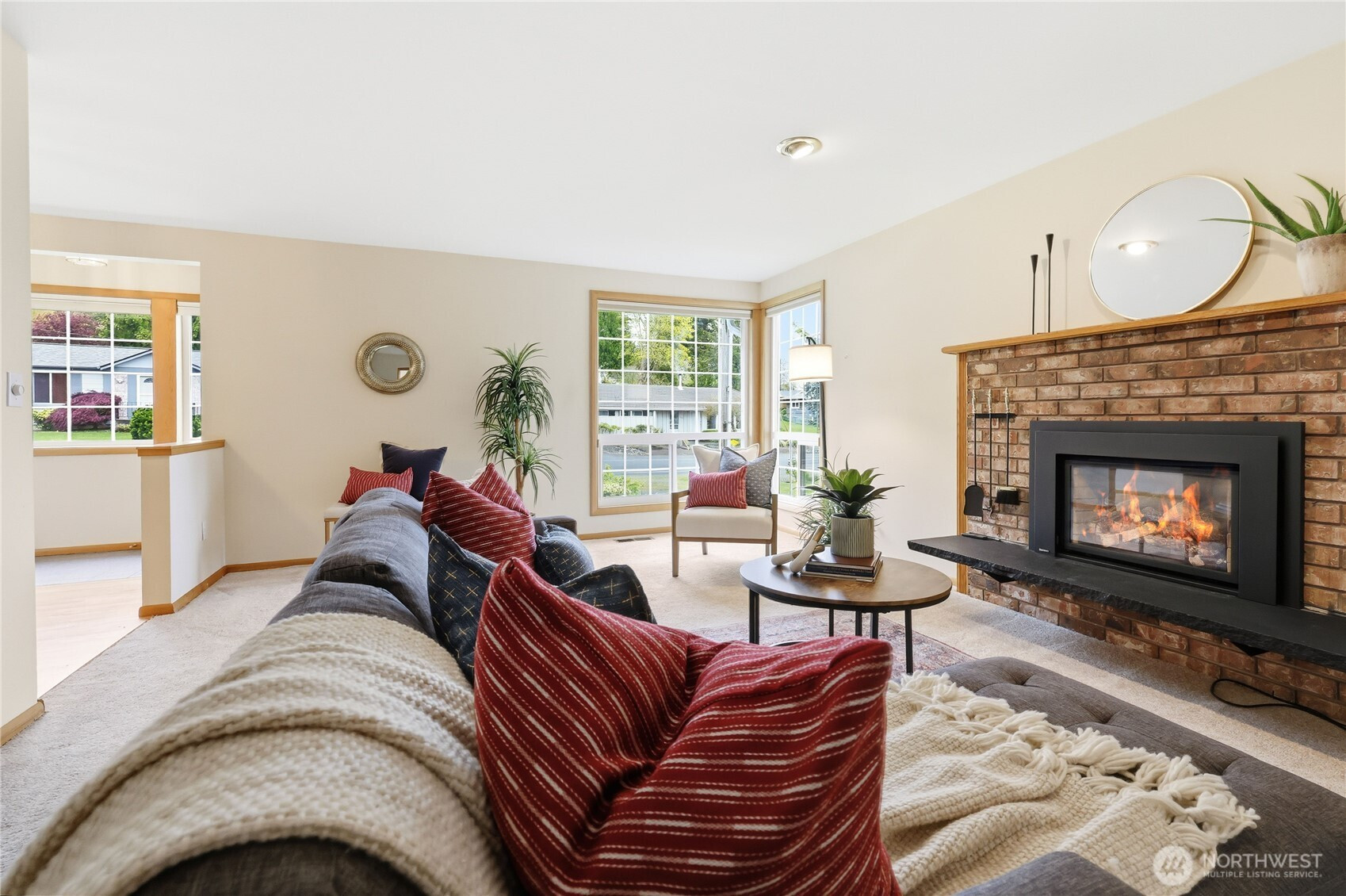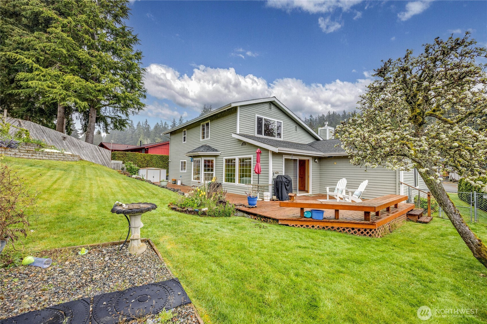 Tucked into the heart of Poulsbo, this inviting 3-bedroom, 2-bath home combines everyday comfort with an unbeatable location. Just a short stroll to downtown’s restaurants, cafés, and bakeries, you’ll enjoy the energy and charm of this beloved waterfront community right outside your door. Set on a tranquil street, this spacious quarter-acre lot with a fully fenced yard— is perfect for relaxing, gardening, or hosting gatherings. The back deck is made for summer evenings and weekend BBQs, while a garden shed offers convenient extra storage. A side driveway adds ample off-street parking. Inside, the well designed floorplan provides both functionality and flexibility. The main level features two bedrooms, a bright kitchen that flows into a sunny breakfast nook and a generous family room, plus a separate living room with a cozy gas fireplace. A dedicated dining area and convenient laundry space complete the main floor. Upstairs, the primary suite is a true retreat, showcasing lovely views of Liberty Bay and the Olympic Mountains. The ensuite bath includes a soaking tub, separate shower, and a spacious walk-in closet. A one-plus car garage with an attached shop/studio area adds versatility, whether for hobbies, storage, or projects. Located just minutes from Liberty Bay Marina and scenic Lemolo Shore Drive, this home offers the perfect blend of location, comfort, and lifestyle.