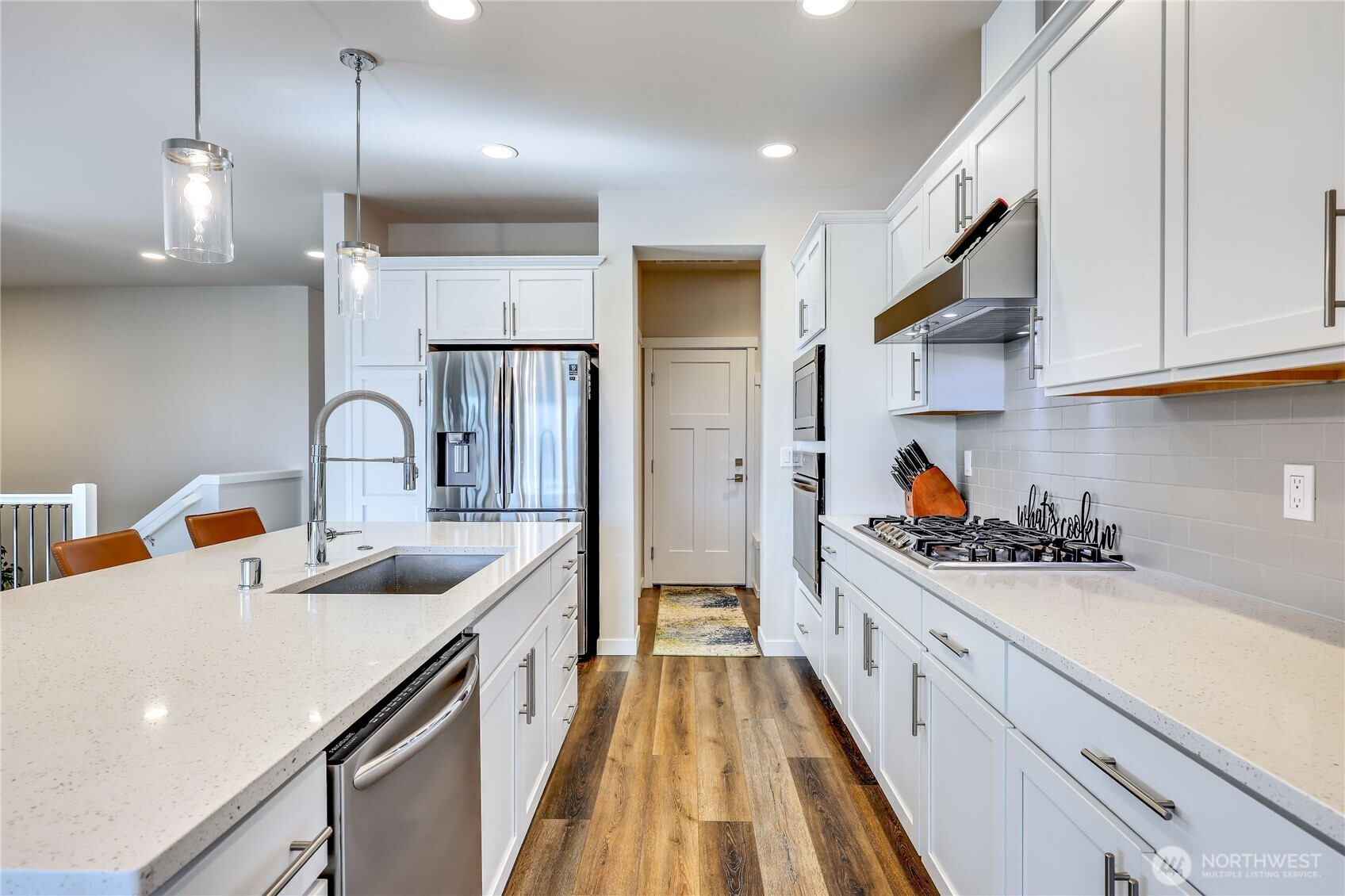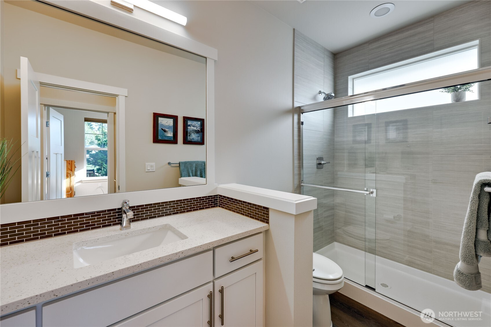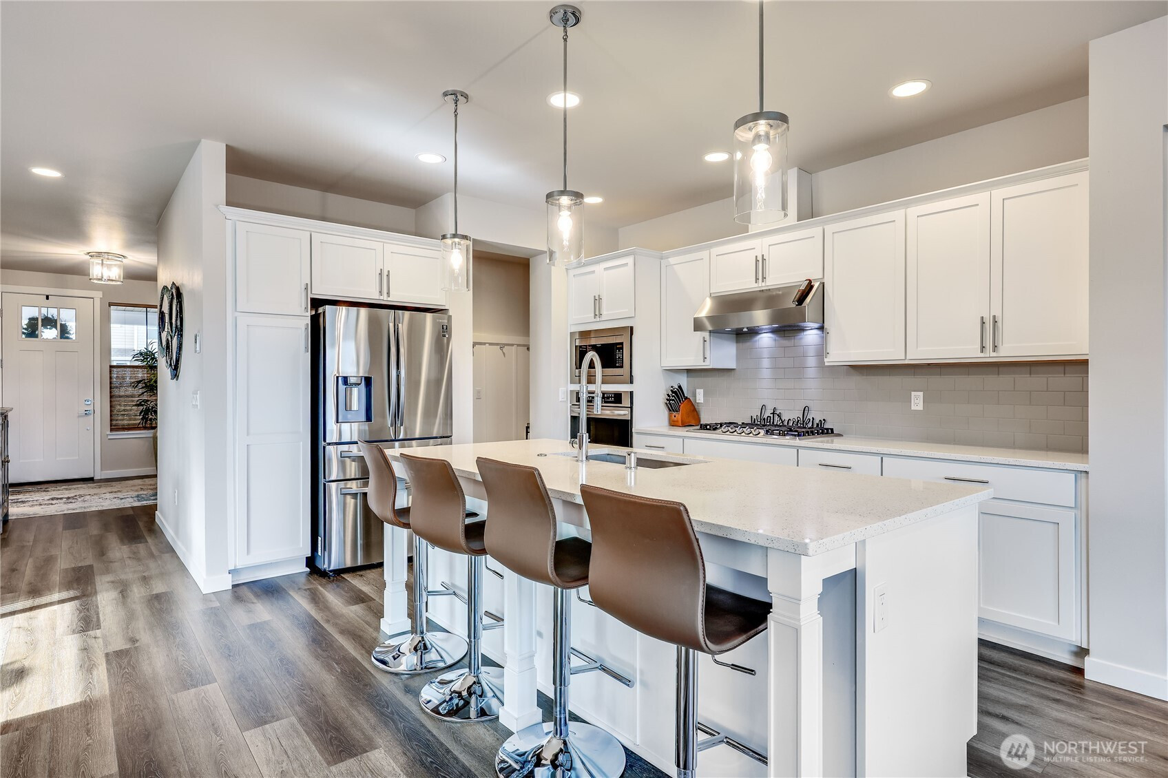 Set in the sought-after Crystal View community of Poulsbo, this immaculate home offers Puget Sound & expanding territorial views. The open-concept design highlights a gourmet kitchen w/painted soft-close shaker cabinets, quartz counters & walk-in pantry. Main floor included primary bed w/5 piece bath & walk-in closet, 2nd bed/den & 3/4 bath, dining room with covered view deck, and privacy-tinted windows add style & efficiency. Property includes additional covered patio, terraced garden spaces, retaining walls, & front yard irrigation. Added convenience of laundry w/sink on main, storage room, minutes to all grade levels in North Kitsap Schools, Frank Raab Park, downtown Poulsbo dining, and Seattle Ferry. Assumable 3% loan potential!
