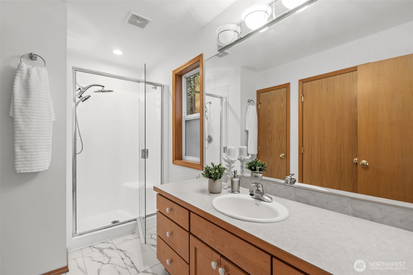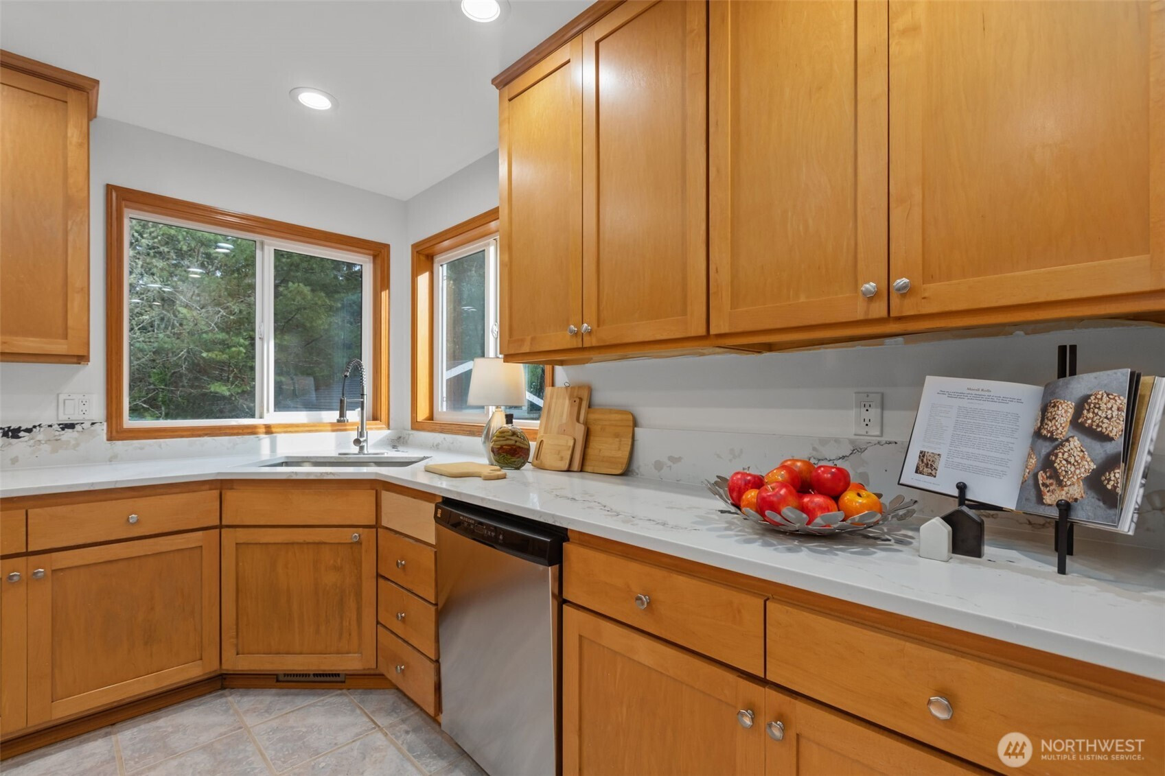 Welcome to your perfect PNW retreat on five secluded acres with hiking trails and community beach access nearby for oyster and clam digging. This refreshed home features fresh interior and exterior paint, new carpeting, new kitchen countertops and appliances, refreshed bathrooms, bonus den/office w/built-ins and much more. Beautiful maple cabinets bring warmth to the kitchen, leading into the great room with plenty of natural light and built-in storage. Primary suite includes an all-seasons west-facing solarium for your peaceful mornings and book nook evenings, walk-in closet and cozy fireplace. Located near the renowned wildlife viewing area at Big Beef Creek, this property offers rare privacy, natural beauty, and true NW living.