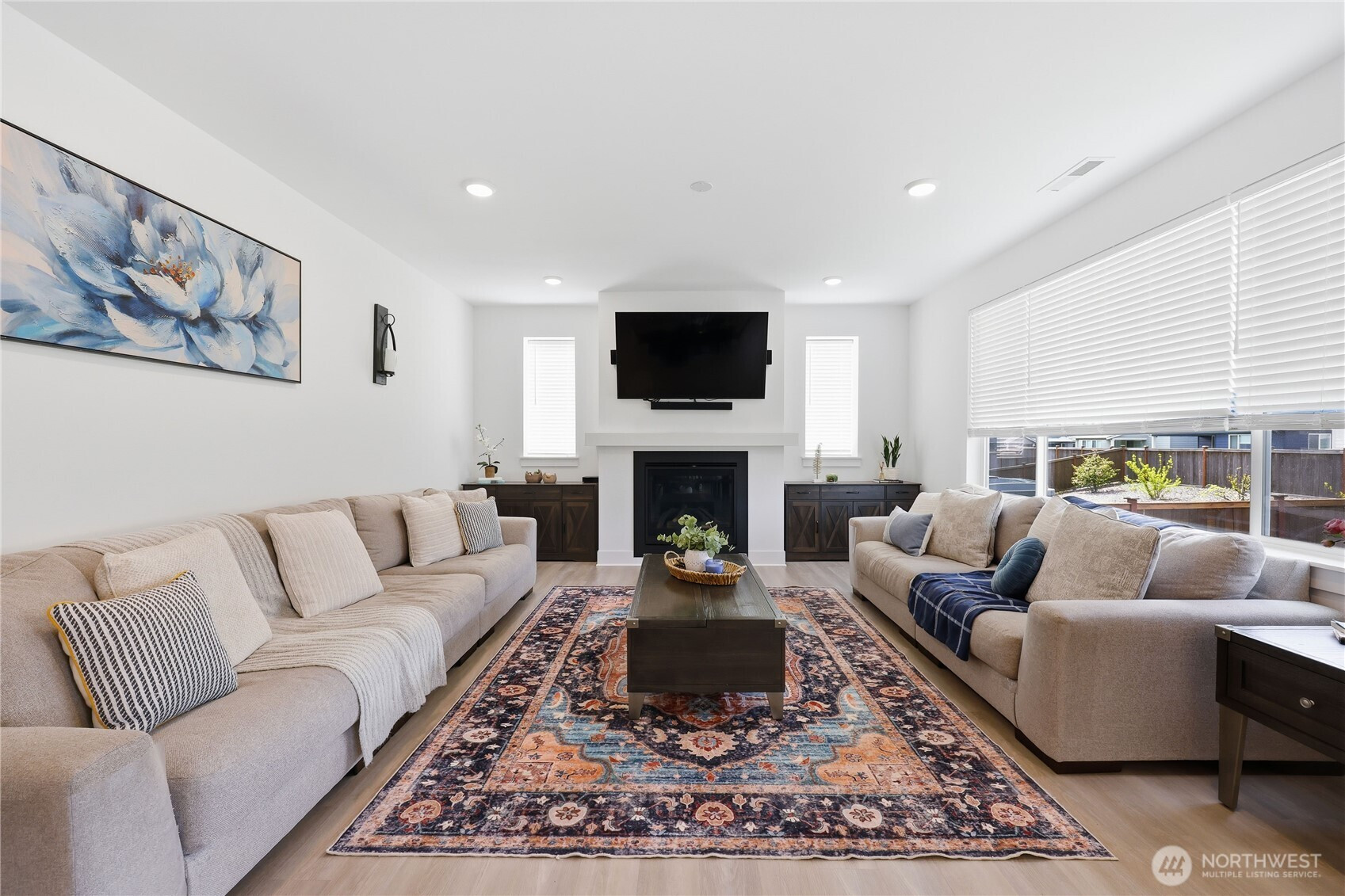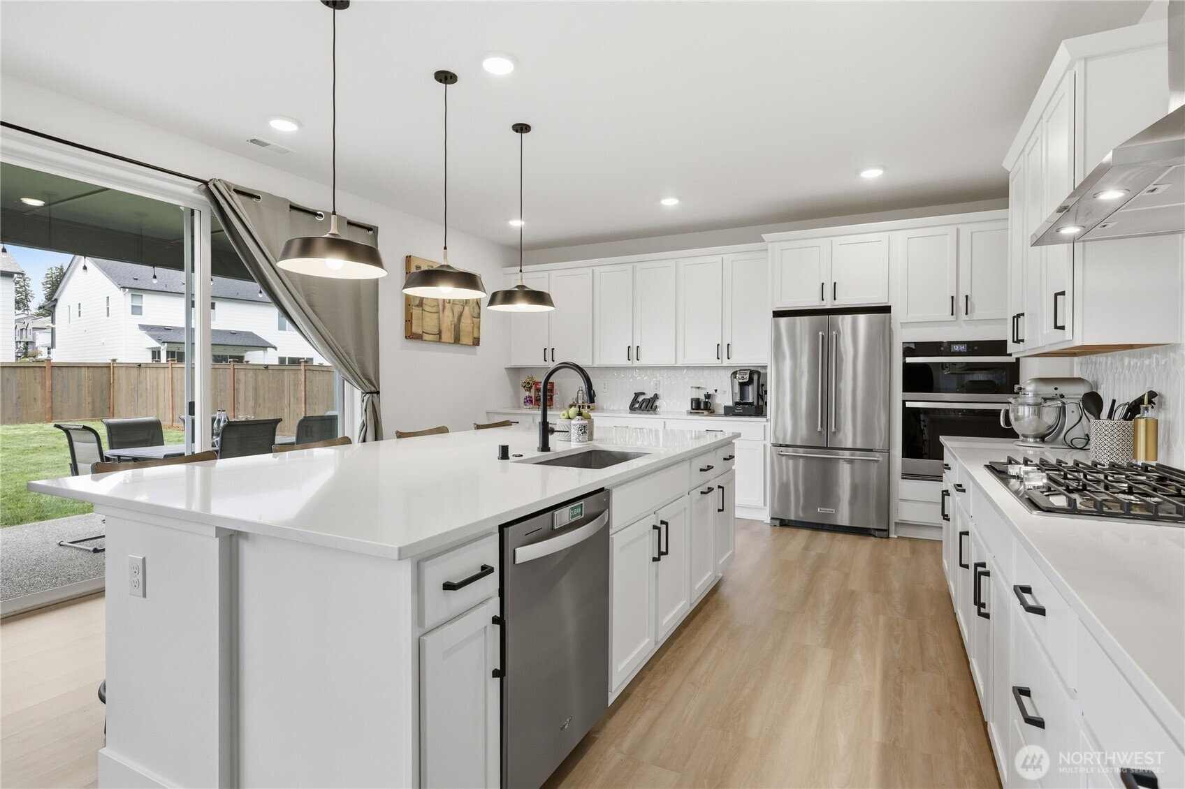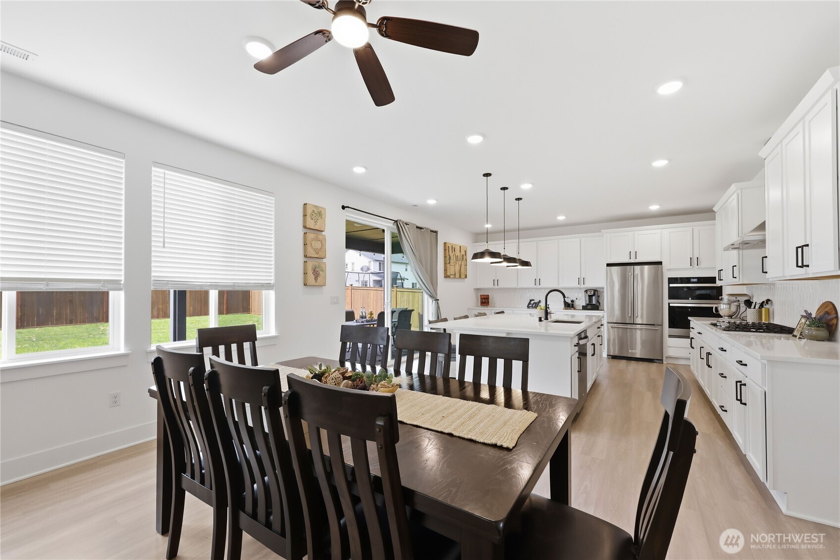 In Poulsbo’s coveted Blue Heron community, a striking designer residence pairs architectural presence with everyday livability, offering the rare combination of five bedrooms + a three-car garage in one of North Kitsap’s most desirable neighborhoods. Thoughtfully designed for modern living, a light-filled open-concept floor plan unfolds with ease. Expansive living spaces flow seamlessly into a beautifully appointed gourmet kitchen, crafted for gatherings w/ abundant prep space, custom pantry, contemporary finishes, a natural connection to the heart of the home. Just beyond, a covered patio extends the living outdoors, ideal for summer dining, morning coffee, or relaxed NW entertaining. A main-level guest suite with adjacent ¾ bth offers exceptional flexibility for visitors, multigenerational living, or a private home office.Upstairs, retreat to a luxurious primary suite featuring dual walk-in closets and a spa-inspired ensuite. Three additional bedrooms + an expansive loft create a versatile second living area, perfect for media, work, or play, while a generous upstairs laundry room adds everyday convenience. Integrated HomeSmart technology enhances comfort and efficiency throughout.Ideally located, the home is walkable to nearby schools, parks, just minutes to shopping, dining, & everyday amenities. Enjoy quick access to historic downtown Poulsbo’s waterfront charm, as well as easy commutes to Seattle ferries via Bainbridge Island and Kingston. Turnkey, move in ready Poulsbo