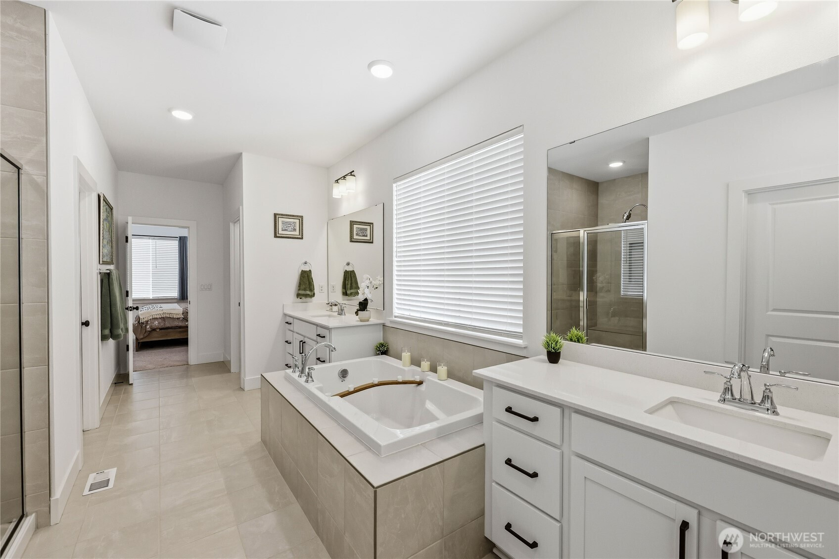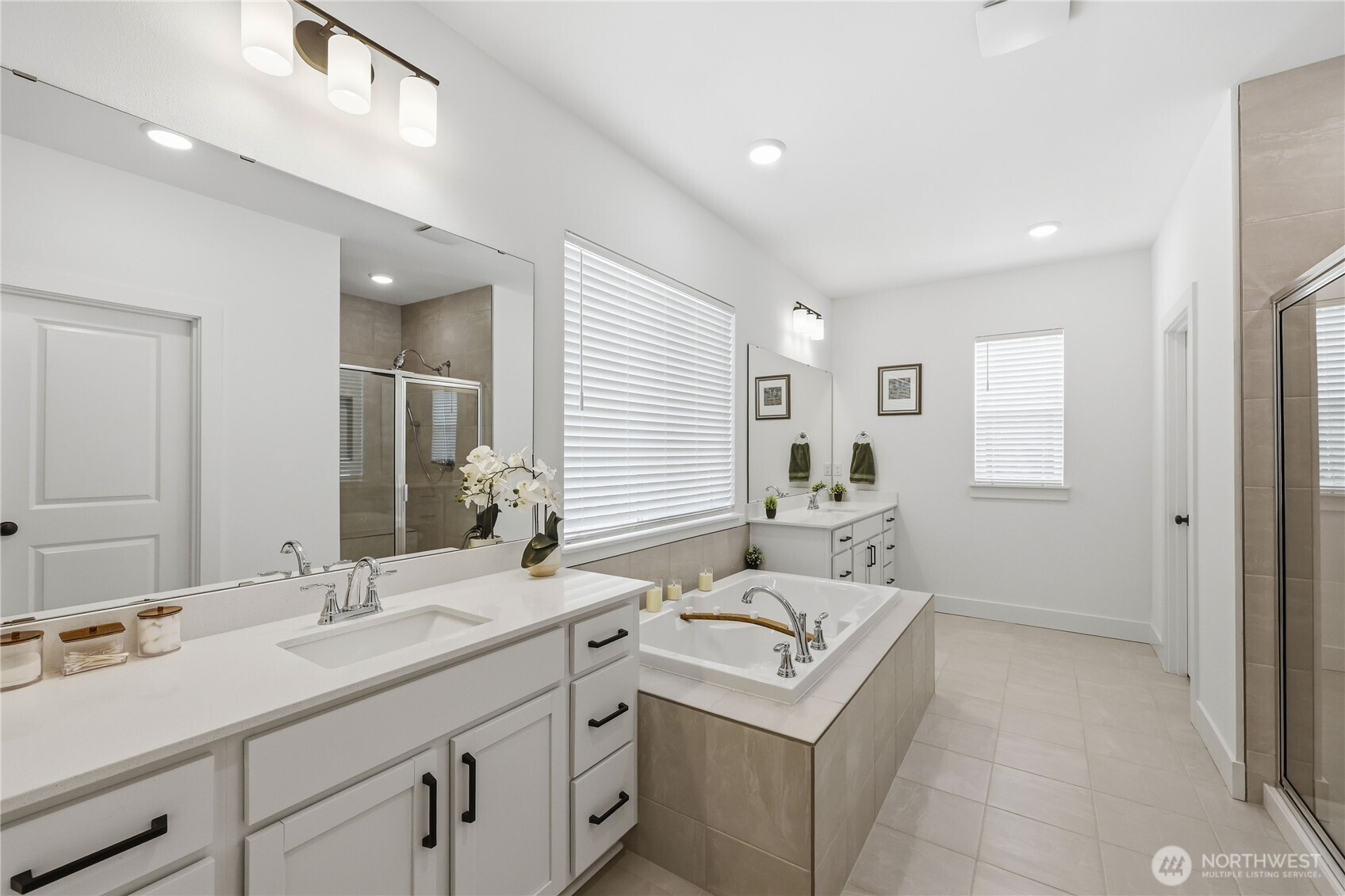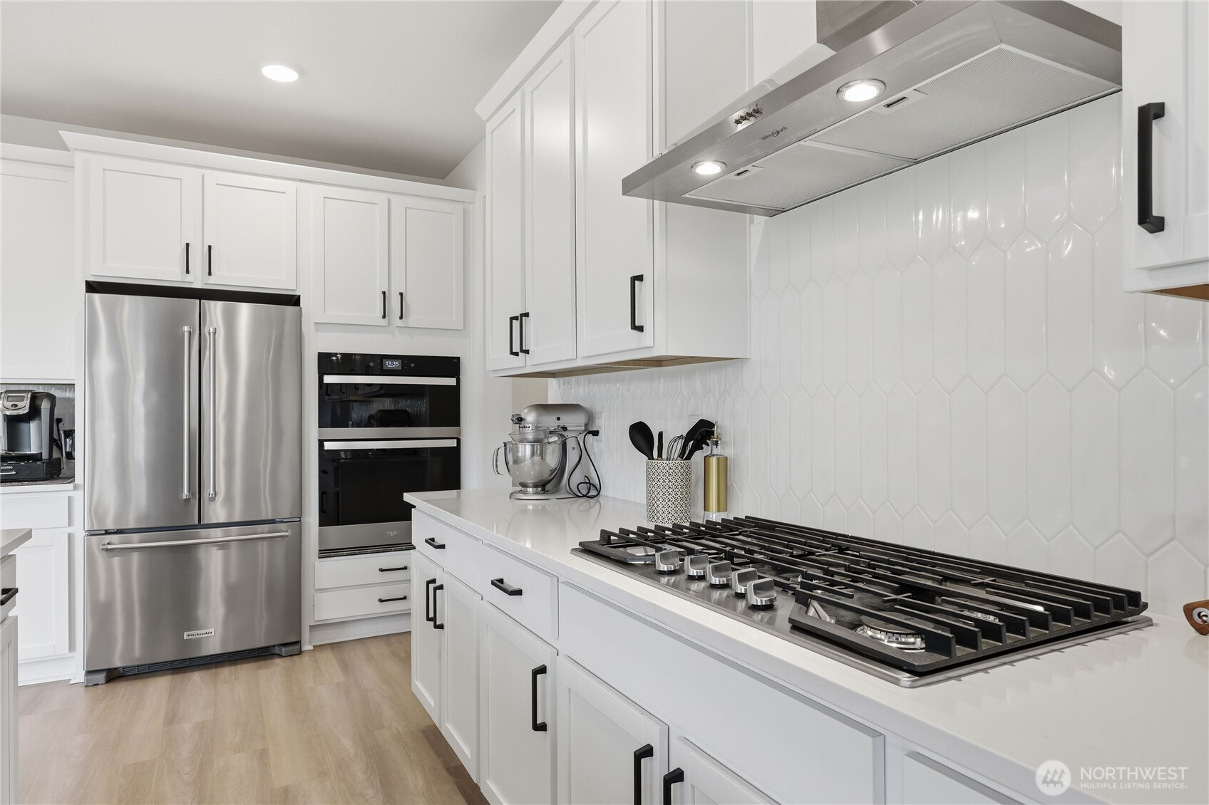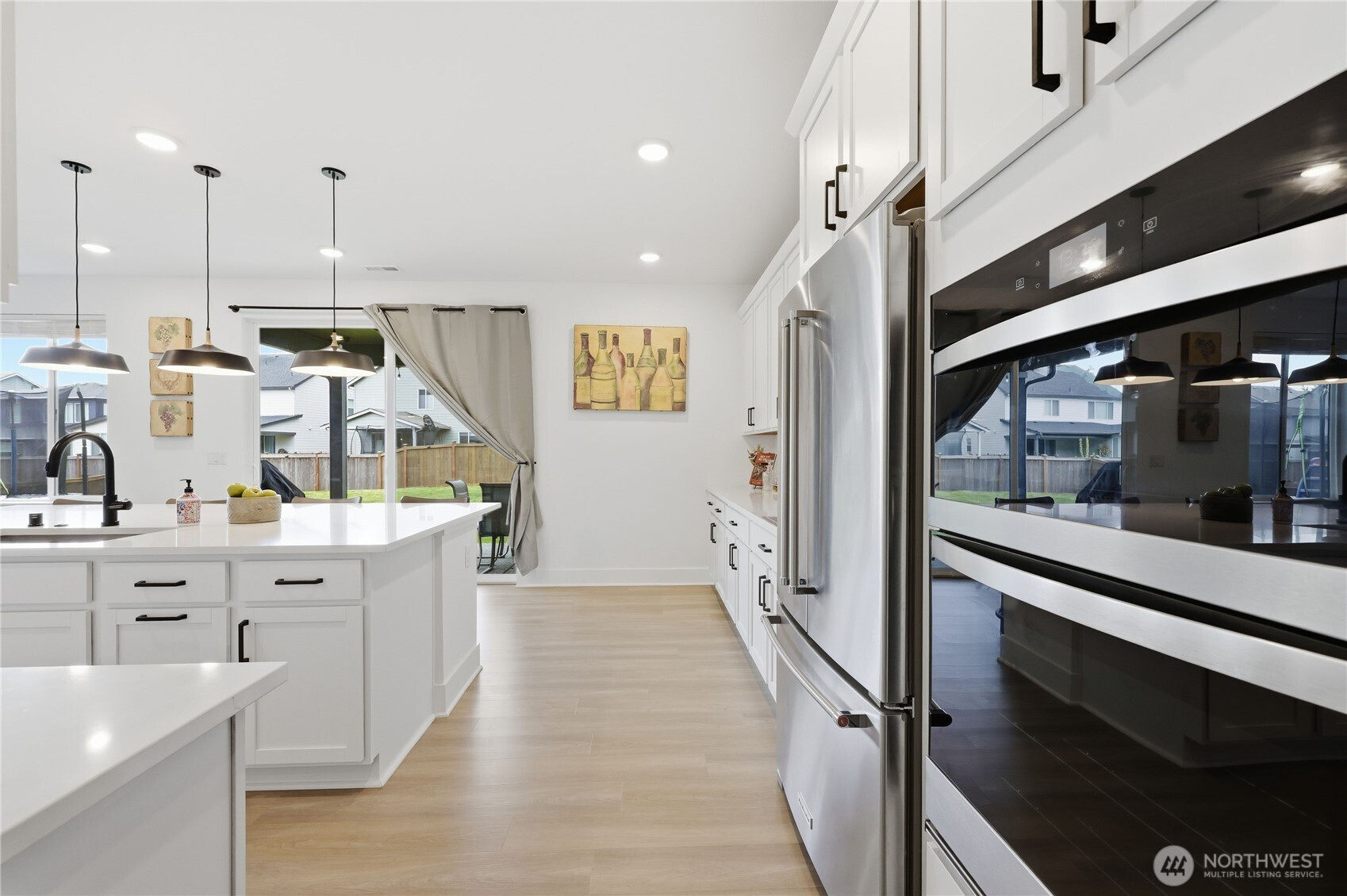 In Poulsbo’s coveted Blue Heron community, a striking designer residence pairs architectural presence with everyday livability, offering the rare combination of five bedrooms + a three-car garage in one of North Kitsap’s most desirable neighborhoods. Thoughtfully designed for modern living, a light-filled open-concept floor plan unfolds with ease. Expansive living spaces flow seamlessly into a beautifully appointed gourmet kitchen, crafted for gatherings w/ abundant prep space, custom pantry, contemporary finishes, a natural connection to the heart of the home. Just beyond, a covered patio extends the living outdoors, ideal for summer dining, morning coffee, or relaxed NW entertaining. A main-level guest suite with adjacent ¾ bth offers exceptional flexibility for visitors, multigenerational living, or a private home office.Upstairs, retreat to a luxurious primary suite featuring dual walk-in closets and a spa-inspired ensuite. Three additional bedrooms + an expansive loft create a versatile second living area, perfect for media, work, or play, while a generous upstairs laundry room adds everyday convenience. Integrated HomeSmart technology enhances comfort and efficiency throughout.Ideally located, the home is walkable to nearby schools, parks, just minutes to shopping, dining, & everyday amenities. Enjoy quick access to historic downtown Poulsbo’s waterfront charm, as well as easy commutes to Seattle ferries via Bainbridge Island and Kingston. Turnkey, move in ready Poulsbo