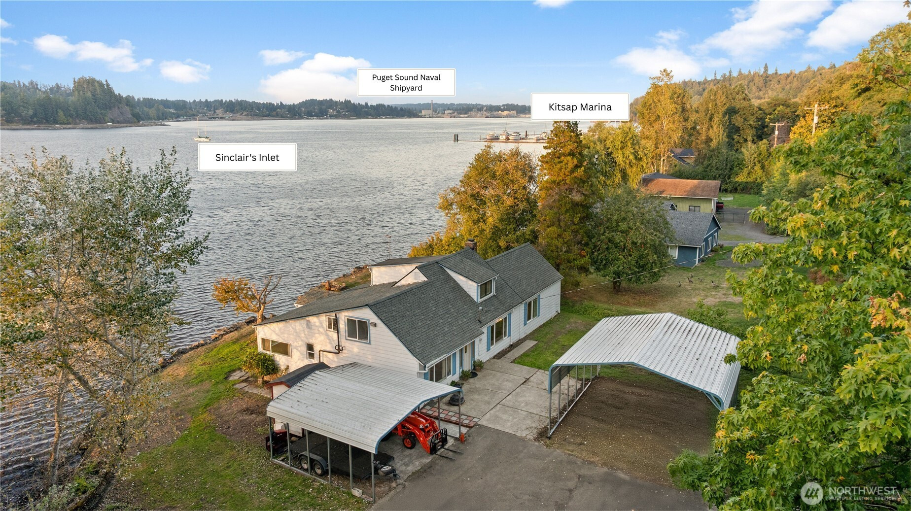 (503) 893-8874Where water meets wonder, this rare waterfront property evokes the adventurous spirit of Tom Sawyer. Boasting 165 ft of low/no bank frontage & a large boulder bulkhead extending approx. 10 ft beyond neighboring shorelines, it offers exceptional access to the water. Enjoy deep-water protected moorage, a floating dock & private boat ramp for effortless recreation. The 2,588 sq ft home frames mountains & Sinclair Inlet through picture windows, surrounded by mature landscaping with various fruit trees, including figs, plums, grapes, & blueberries & garden space. Covered RV parking, full RV hook-ups, easy access to Hwy 16, Bay St shops & PSNS make this an incomparable opportunity.