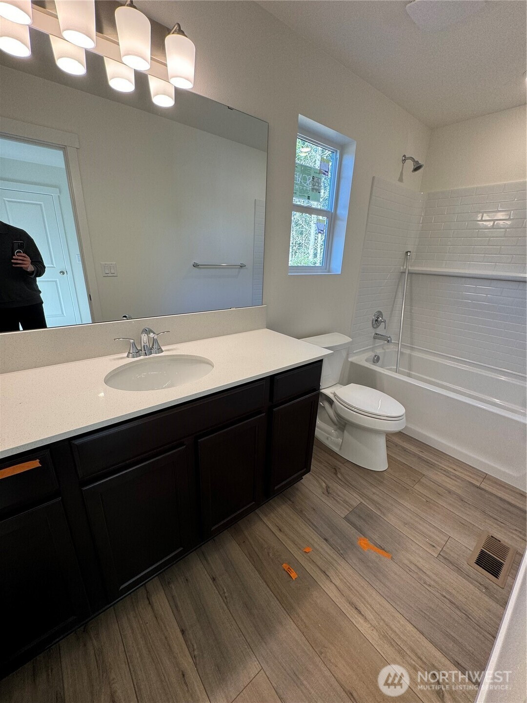 Discover the perfect blend of style and comfort in this 2,330sqft new construction home featuring a traditional exterior and thoughtfully designed interior spaces. First floor 9" ceilings flow between the kitchen, dining, and living areas. Featuring a large island with seating and a walk-in pantry, electric fireplace with the added bonus of design options already being chosen, start enjoying your new home from day one. Stained cabinets, title backsplash, 5 piece Primary bath. Versatile loft, and second-floor laundry room. Covered patio and fully fenced backyard. Full Kitchen Height tile backsplash, Frost white Quarter countertops Refrigerator included!!