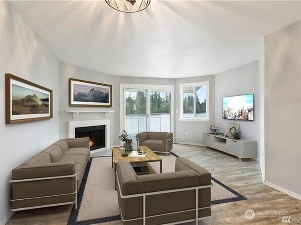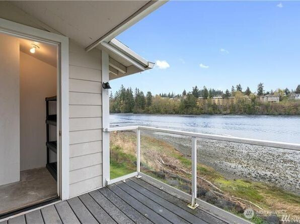Hidden Gem! Sun filled waterfront 2bd/1bth top floor condo with South East facing deck. Sliding doors from living room and primary bedroom have huge views of the bay and wildlife. Nature trails along waterfront and Nelson park next door. Enjoy the outdoor pool, club house, hot tub, sauna, kayak storage, and the entire property is Non Smoking. A must see fabulous and easy lifestyle/ downsize/ investment/ you name it just moments away from restaurants, theaters, entertainment, and downtown Poulsbo! 2 vehicles allowed per unit w 1 Assigned parking spot plus guest parking. Cats Only fyi. HOA dues include Water/Sewer/Basic Cable/Earthquake & Flood Insurance/ Landscaping.