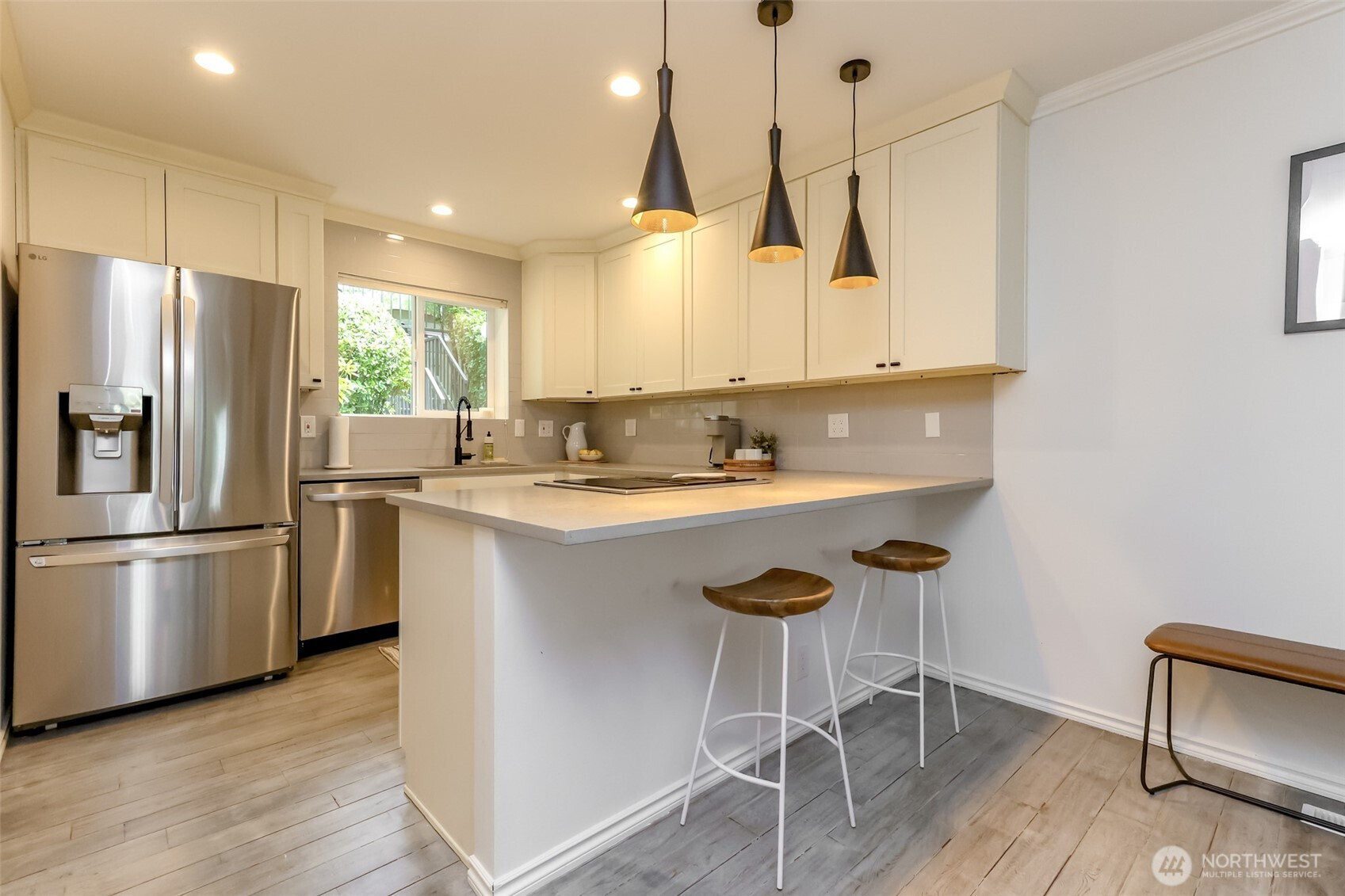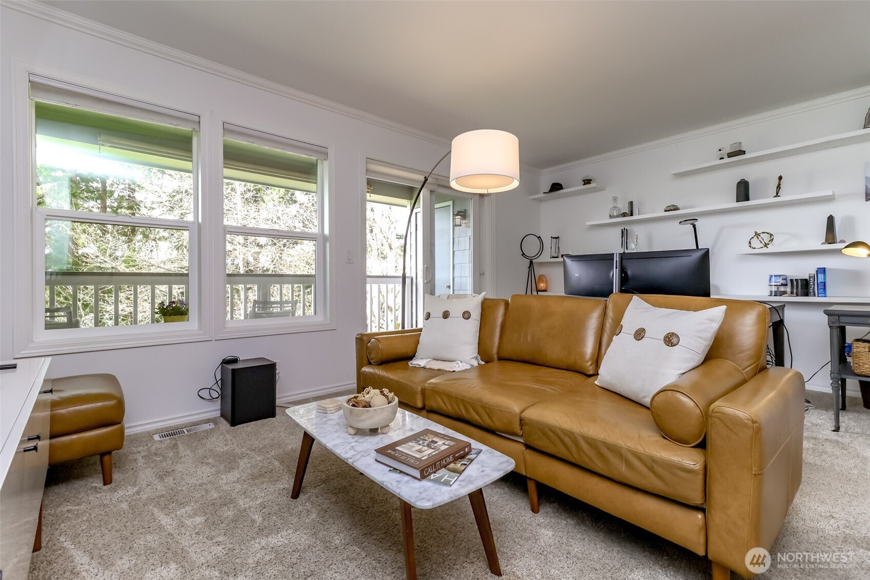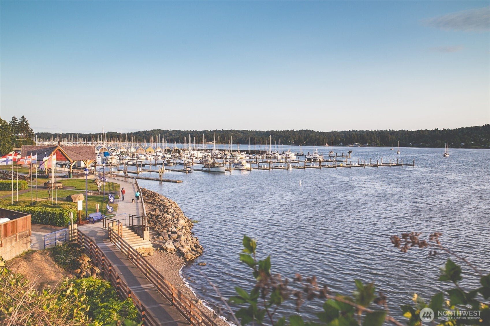 Welcome home to this beautifully maintained and thoughtfully updated townhome in the heart of Poulsbo, featuring spectacular Olympic Mountain views from your private deck. Ideally located within walking distance to charming downtown Poulsbo and the waterfront, this home offers convenience and lifestyle. Easy access to Bainbridge and Kingston ferries, Silverdale shopping, and Bangor and Keyport bases makes commuting a breeze. Inside, you’ll find fresh updates throughout, wood-plank flooring, and a fully remodeled kitchen with quartz countertops, new cabinetry, and stainless appliances. The spacious layout features two large primary suites upstairs, each with walk-in closets and beautifully updated private bathrooms. Enjoy abundant storage, including a private shed off the deck. The community also offers a shared gardening area for residents to enjoy. Select furnishings are negotiable, making this a truly move-in-ready opportunity.