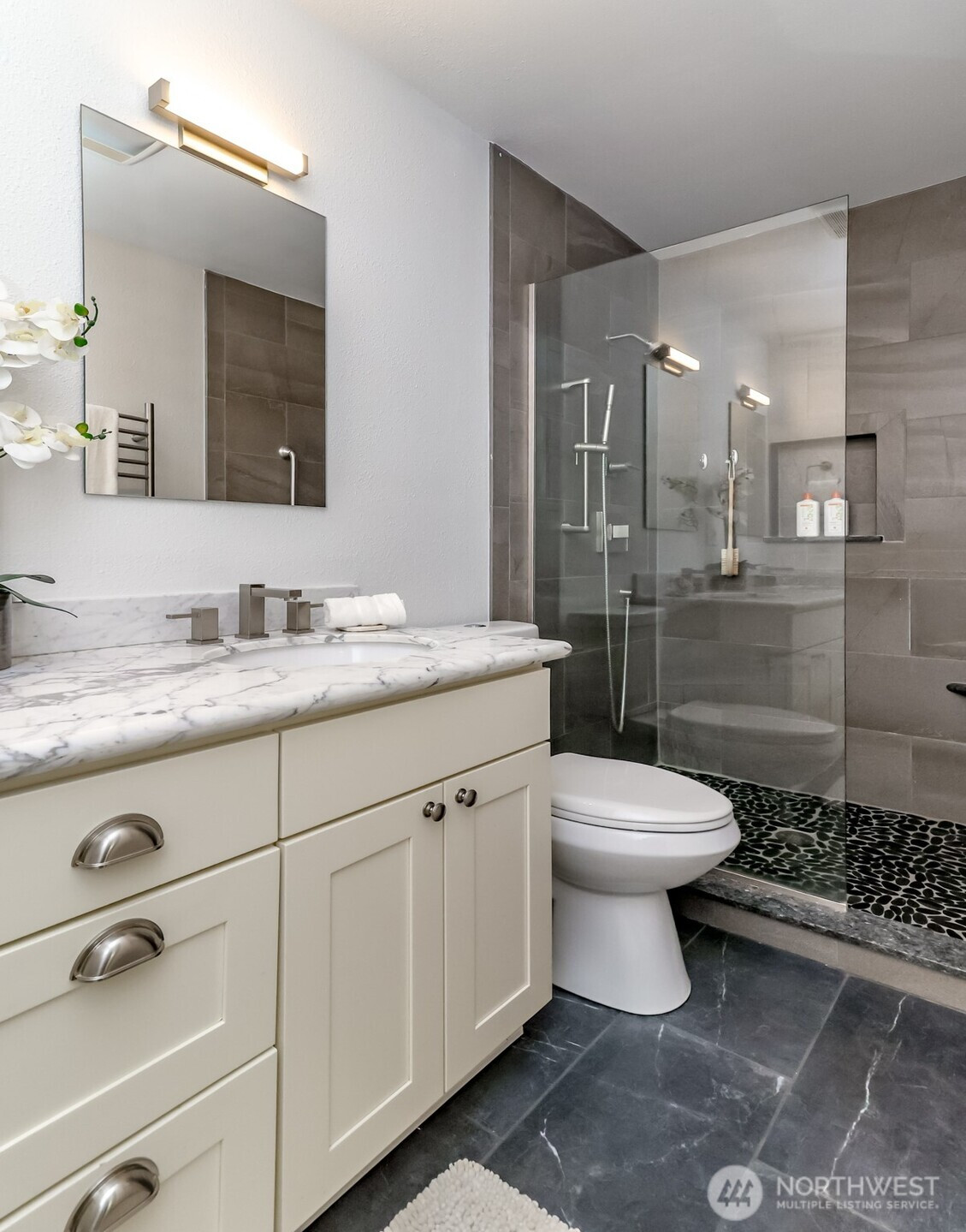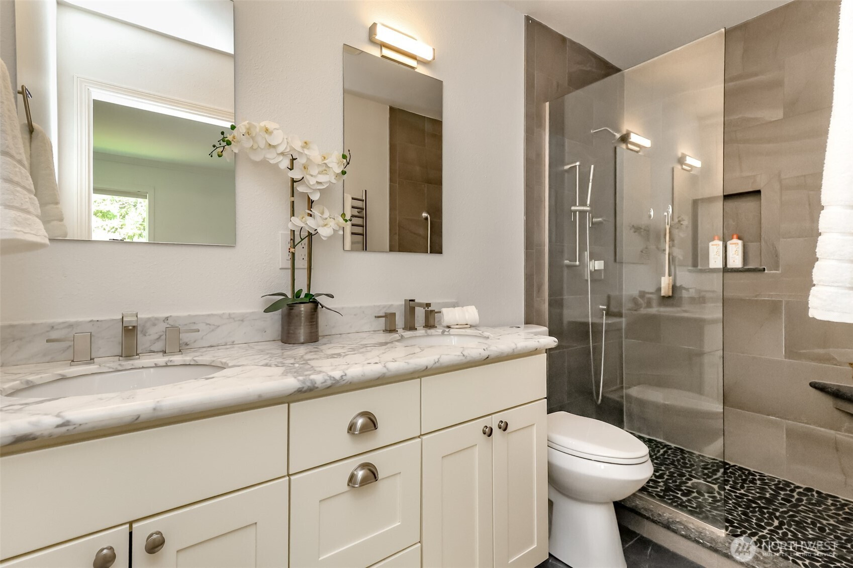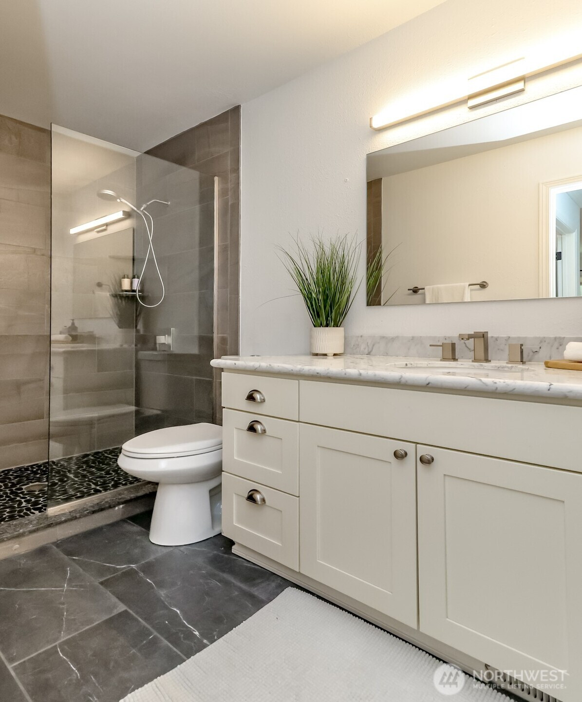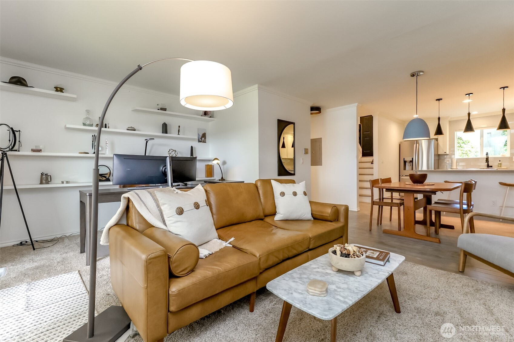 Welcome home to this beautifully maintained and thoughtfully updated townhome in the heart of Poulsbo, featuring spectacular Olympic Mountain views from your private deck. Ideally located within walking distance to charming downtown Poulsbo and the waterfront, this home offers convenience and lifestyle. Easy access to Bainbridge and Kingston ferries, Silverdale shopping, and Bangor and Keyport bases makes commuting a breeze. Inside, you’ll find fresh updates throughout, wood-plank flooring, and a fully remodeled kitchen with quartz countertops, new cabinetry, and stainless appliances. The spacious layout features two large primary suites upstairs, each with walk-in closets and beautifully updated private bathrooms. Enjoy abundant storage, including a private shed off the deck. The community also offers a shared gardening area for residents to enjoy. Select furnishings are negotiable, making this a truly move-in-ready opportunity.