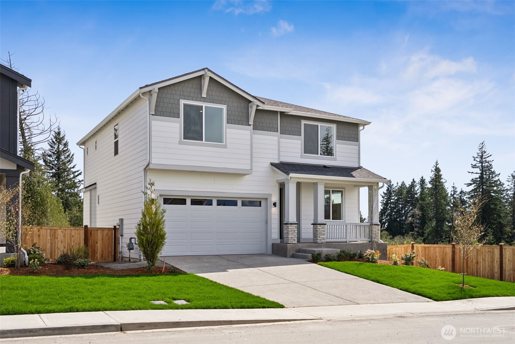 Move-in July to the new construction 3009 sf ft Bennett Daylight/Walk-Out Basement w/5BR + Loft + Rec Rm/3.75BA home@Lot 25 in Poulsbo’s Liberty Bay Vista. The light, bright & open main level w/9' ceilings showcases peek-a-boo Liberty Bay water, full territorial & sunset views. On your way in, note the 2-bay garage w/8' door, welcoming front porch, 8' entry door, foyer coat closet, under stairs storage + Main floor BR & Bath w/tiled shower. The gourmet island kitchen impresses w/42" soft-close solid-wood cabinetry, quartz counters, tile backsplash, under-cabinet lighting & GAS cooktop w/hood & wall oven/micro. The covered deck covers the lower level patio & anchors the great rm w/cozy GAS fireplace, designed to blend picture perfect PNW indoor/outdoor living. The ~700 sq ft private light & bright lower level boasts 9' ceilings, it's own mini-split, bonus rm, storage closets & private 2nd primary suite w/full bath, ideal for guests or multi-generational living. Wake up to the most impressive views from the upstairs primary suite & en-suite bath w/raised-height dual sink quartz topped vanity, walk-in tiled shower w/frameless glass, soaking tub & walk-in closet. An XL open loft splits the 2 bedrooms, sharing a full bath, laundry w/sink & linen closet. Park & Ride to Bainbridge & Kingston ferries. Walk to 3 North Kitsap schools or down the waterfront to downtown Poulsbo's shopping/dining! Buyer’s Broker must accompany and/or register Buyer at/or before 1st visit
