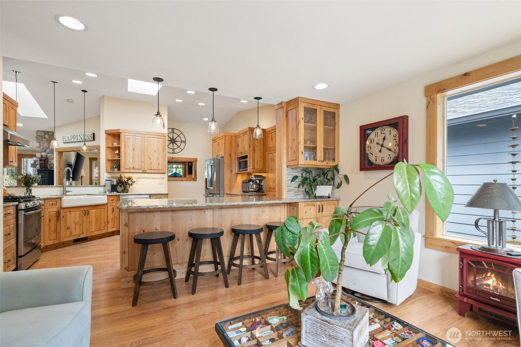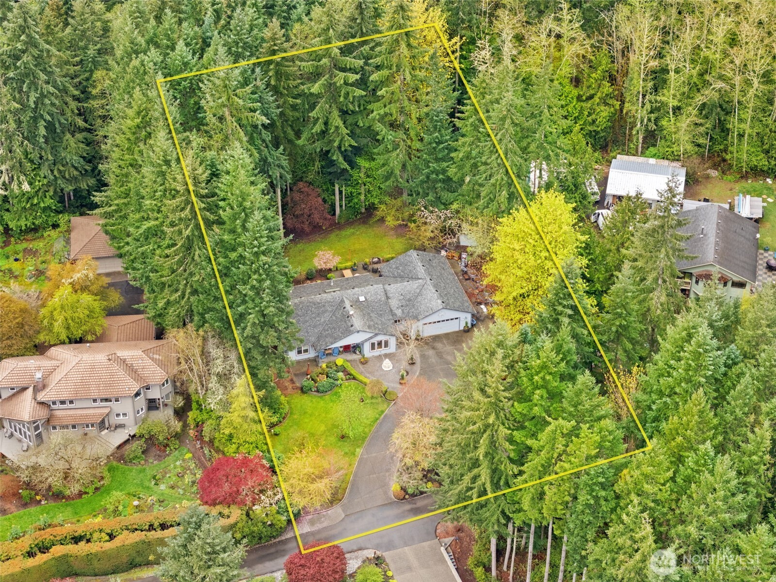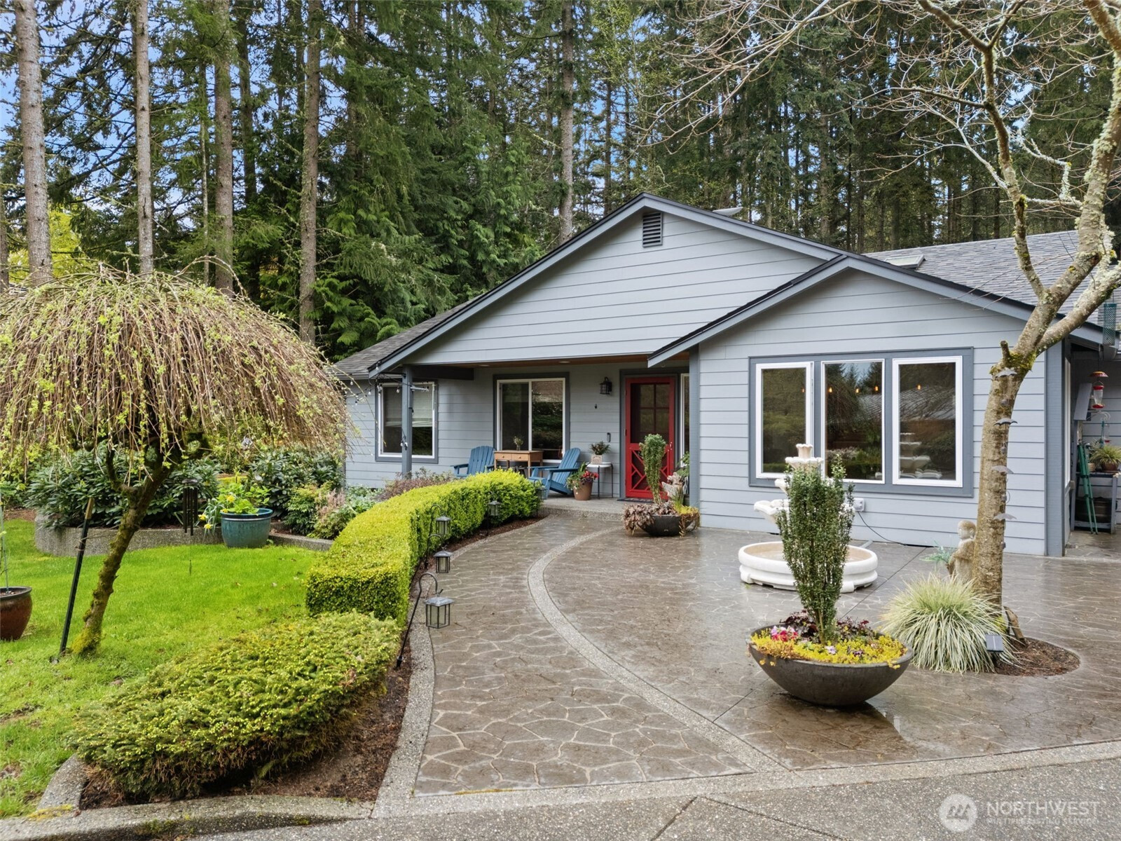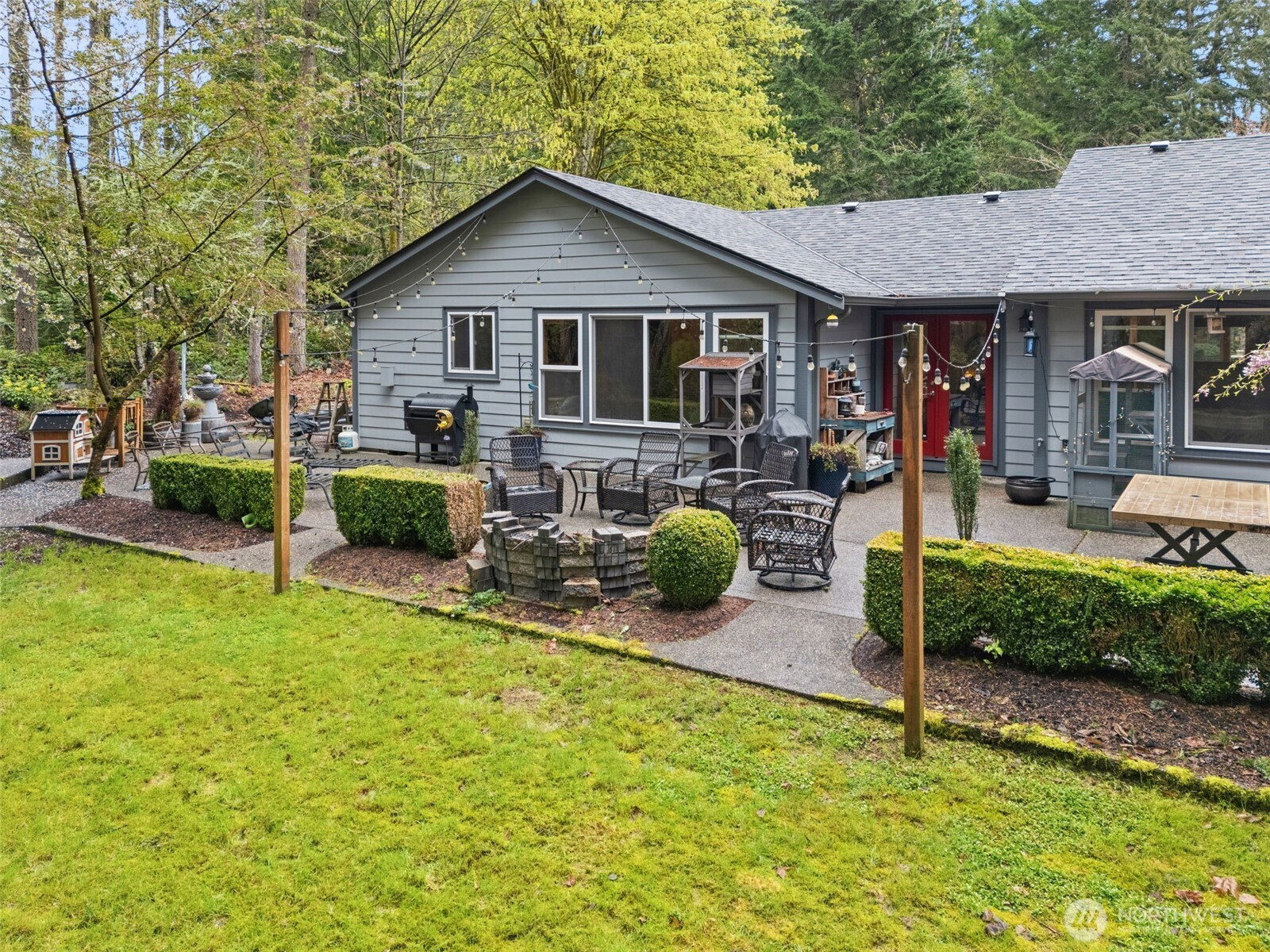 Welcome home to this rambler set at the end of a quiet road on a private 1-acre parcel, offering a rare sense of seclusion and space. This single-owner 4-bedroom home presents a turnkey opportunity with thoughtful updates throughout, including an upgraded kitchen, new windows and roof. Starlink high-speed internet provides reliable modern connectivity. This property is designed for comfort and versatility, featuring a concrete pad ready for an ADU. A covered structure offers ample space for RV, boat, or recreational storage, complemented by 30- and 50-amp RV hookups with infrastructure for EV charging capability. Other custom features include wiring for a hot tub, and a whole-home generator system for added reliability, and security system. The level lot provides usable outdoor space for a variety of needs. Enjoy a scenic commute with easy access to the Kingston Ferry (7 miles) and Bainbridge Island (11 miles). This home bridges the gap between rural beauty and high-performance living.