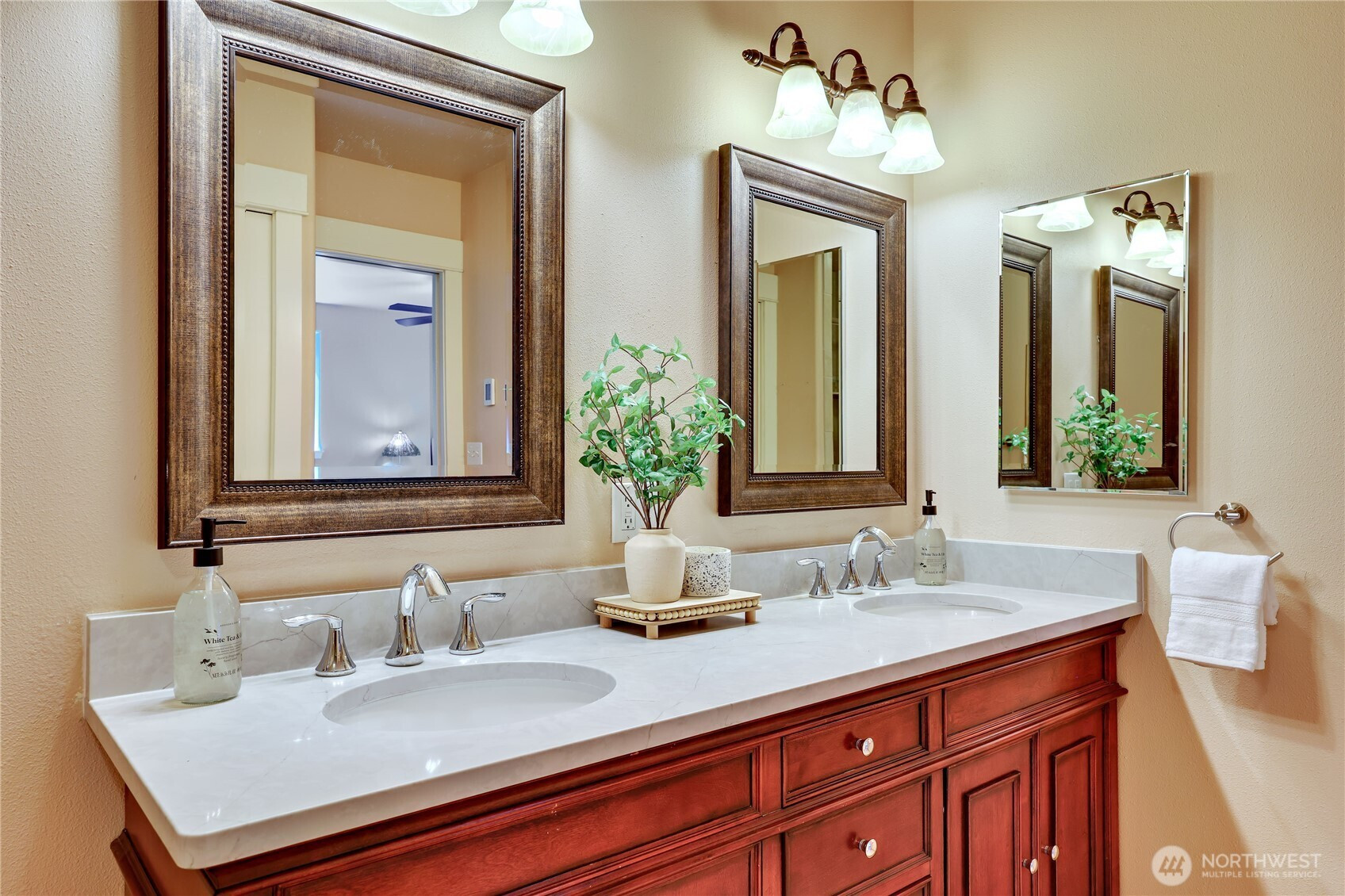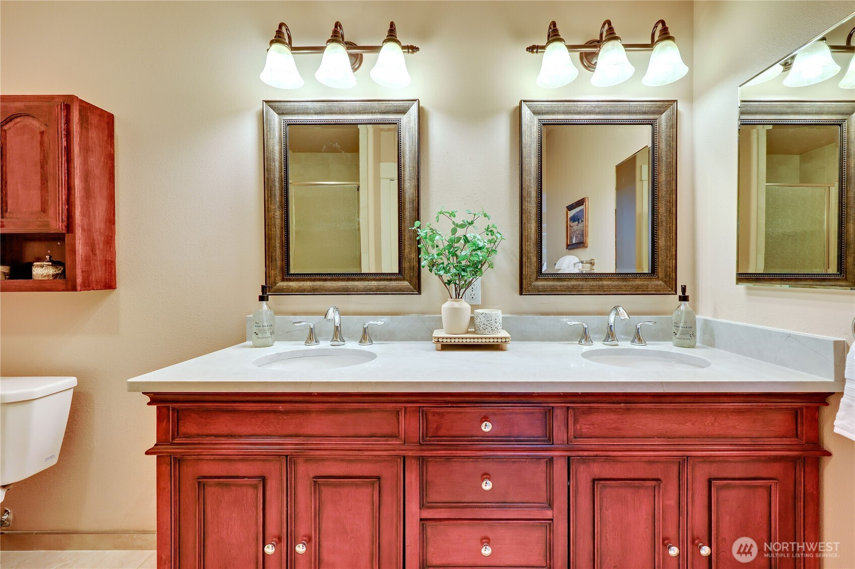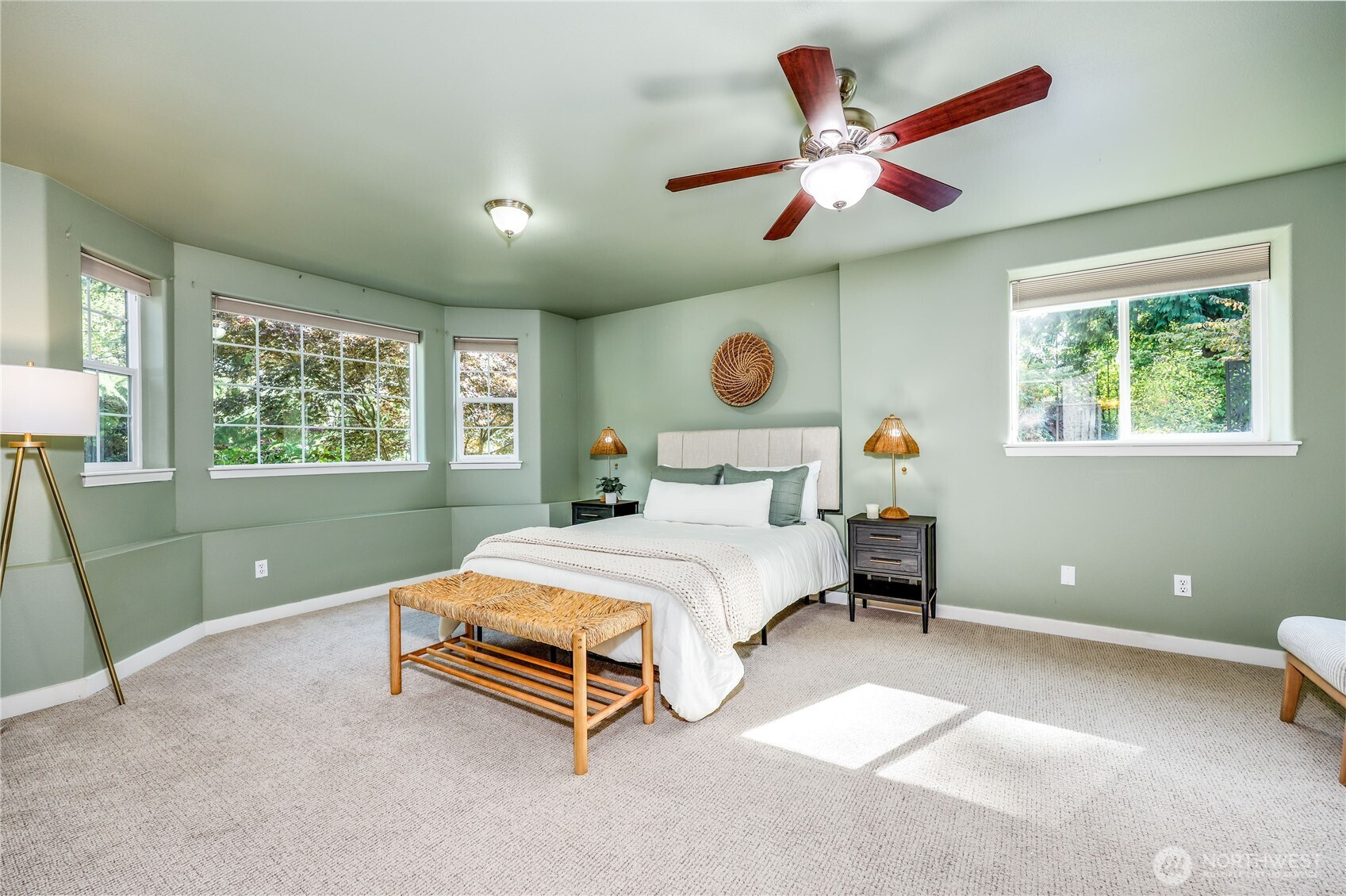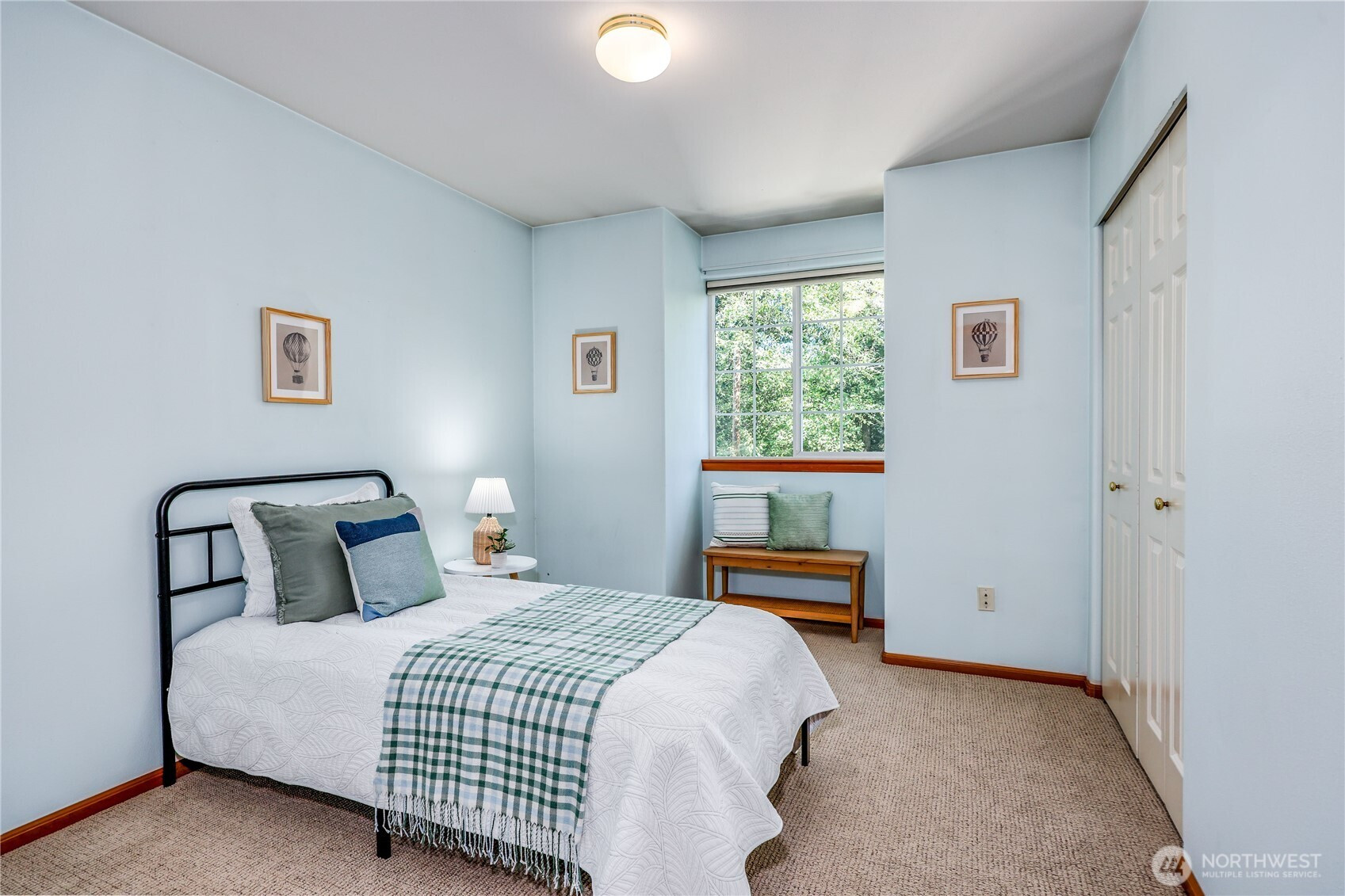 Nestled on a quiet hillside & just a short stroll to the beach, this 3-bedroom Indianola home offers the flexibility you’re looking for! You will love the window-filled living room with fireplace & the beautifully updated kitchen w/new cabinets, quartz & stylish refrigerator. Lovely hardwoods connect kitchen & dining and a slider leads to a wonderful deck overlooking the peaceful, fenced backyard. Also on Main are a primary suite with 3/4 bath, a guest bedroom, full guest bath & den/office. Downstairs, a second primary suite offers a luxuriously updated bath w/radiant heated floors, tile shower & huge walk-in closet. Rare 3+ car garage boasts tons of room for cars/storage/hobbies. Make this darling home yours & live the magic of Indianola!