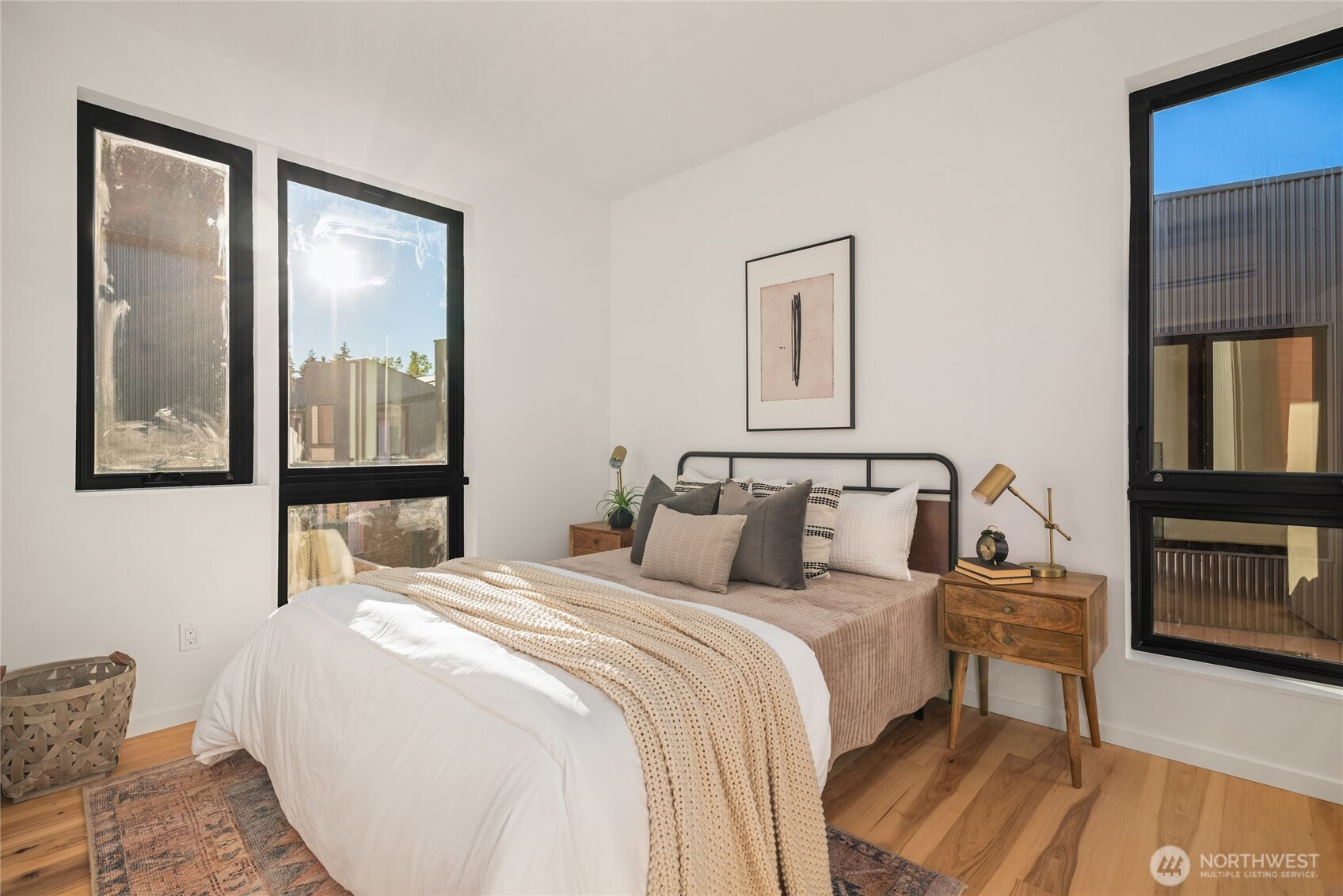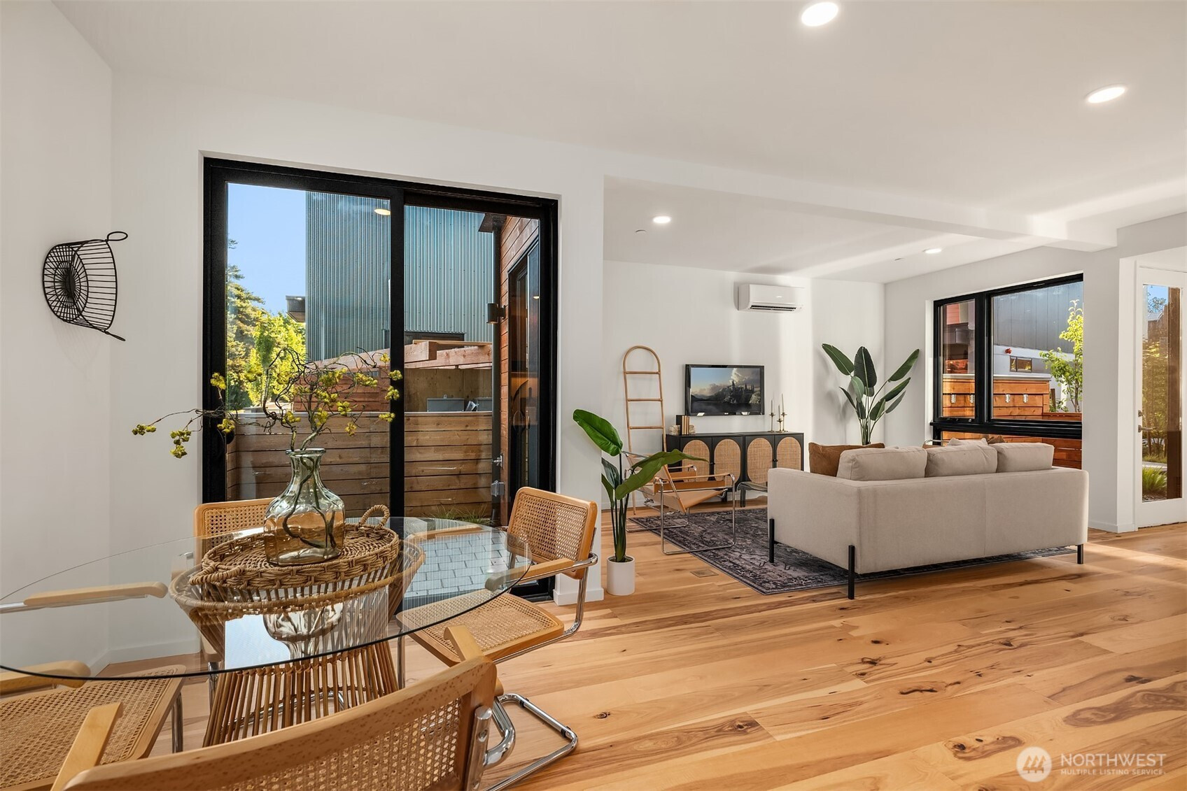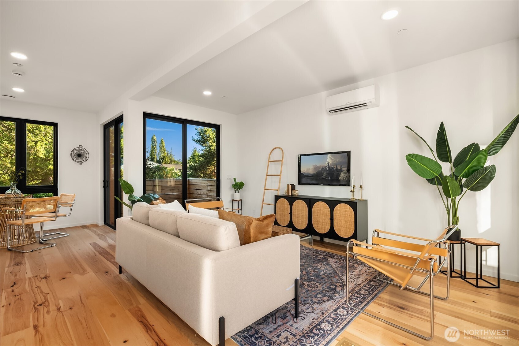 Modern luxury meets sustainable living in this 5-Star Built Green home, ideal for an intentional lifestyle. Tucked in nature yet blocks to downtown, this urban oasis blends tranquility w/ convenience. Walk to eateries, shops, galleries & cafes, or enjoy a serene ferry ride—car-free living made easy. The home pairs calm w/ contemporary design: sleek wood finishes, hdwd floors, vaulted ceilings, expansive windows & a rooftop deck. Community gardens, bonfire pit & nearby trails foster connection & a sense of belonging. Efficient, healthy systems, EV-ready parking & solar-ready features support modern living. Close to parks & top-rated schools. Own your Bainbridge retreat—use seasonally, rent ST, or live yr-round. Flexible ownership to match your lifestyle.