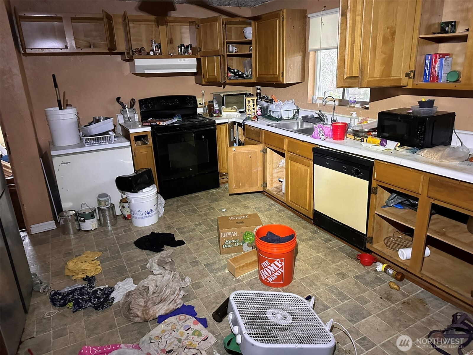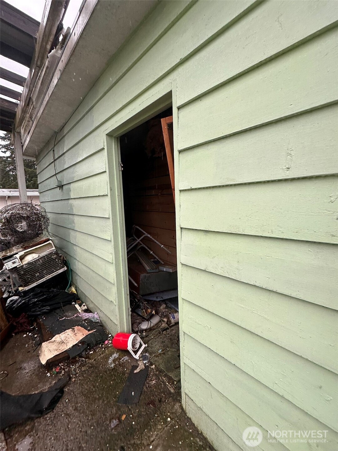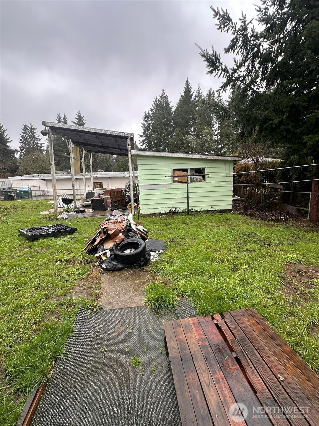 INVESTOR ALERT! Pack up your tools because this once charming rambler has fallen on hard times and is ready for a full makeover. Offering 1,274 square feet with two bedrooms, one bathroom, hardwood floors, and a former attached garage converted into additional living space, there is plenty of room to reimagine. The large lot includes a detached shop with a carport structure, also in need of repair. Convenient location with quick access to ferries, bases, shopping, and other amenities. This property needs extensive work and is priced accordingly, making it a great opportunity for those ready to bring new life back into it. Property sold As-Is.