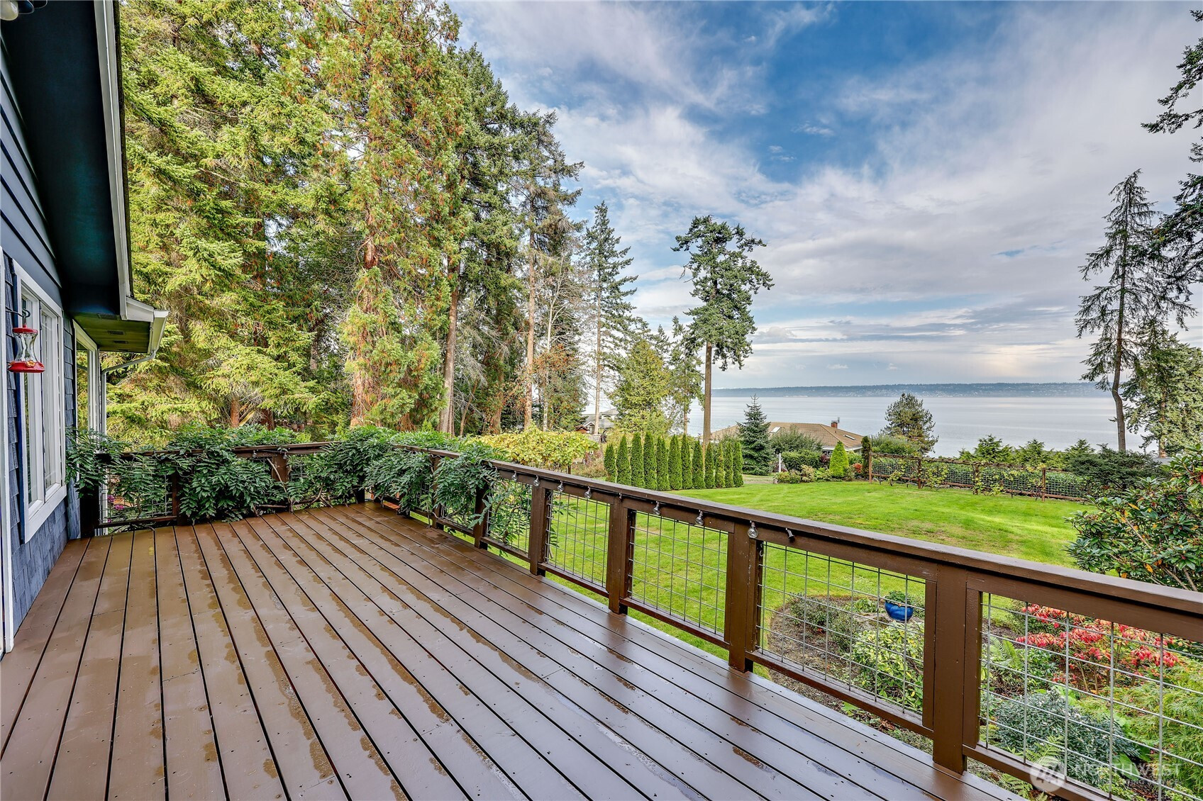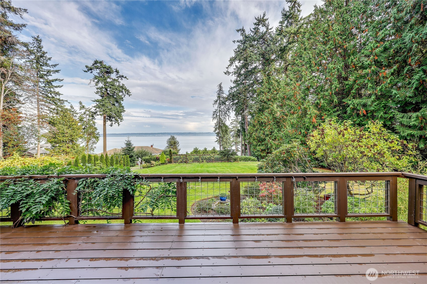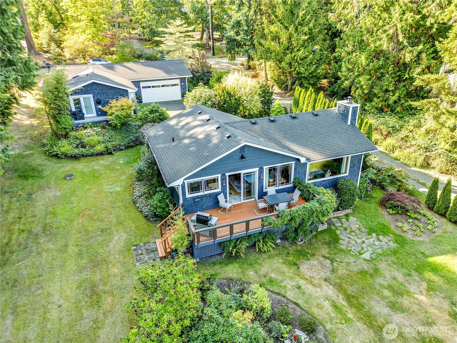 Opportunity Knocks! Enjoy sweeping views of Puget Sound & the Cascade Mountains from every room. Lg windows draw in natural light & open onto an expansive entertainment deck—perfect for gatherings or quiet evening sunsets. Gourmet kitchen features a serving bar, SS appliances, & plenty of counters. Just off the living room is a versatile study/office. The property also includes separate detached flex space for future Mother IL plans. Impressive 25' x 46' garage/shop offers abundant space for projects, storage, or creative endeavors, a hobbyist dream! The surrounding yard is filled with mature landscaping, vibrant flower gardens, creating a peaceful retreat. Minutes to adorable downtown, Edmonds & Seattle ferries, restaurants, shops, & more.