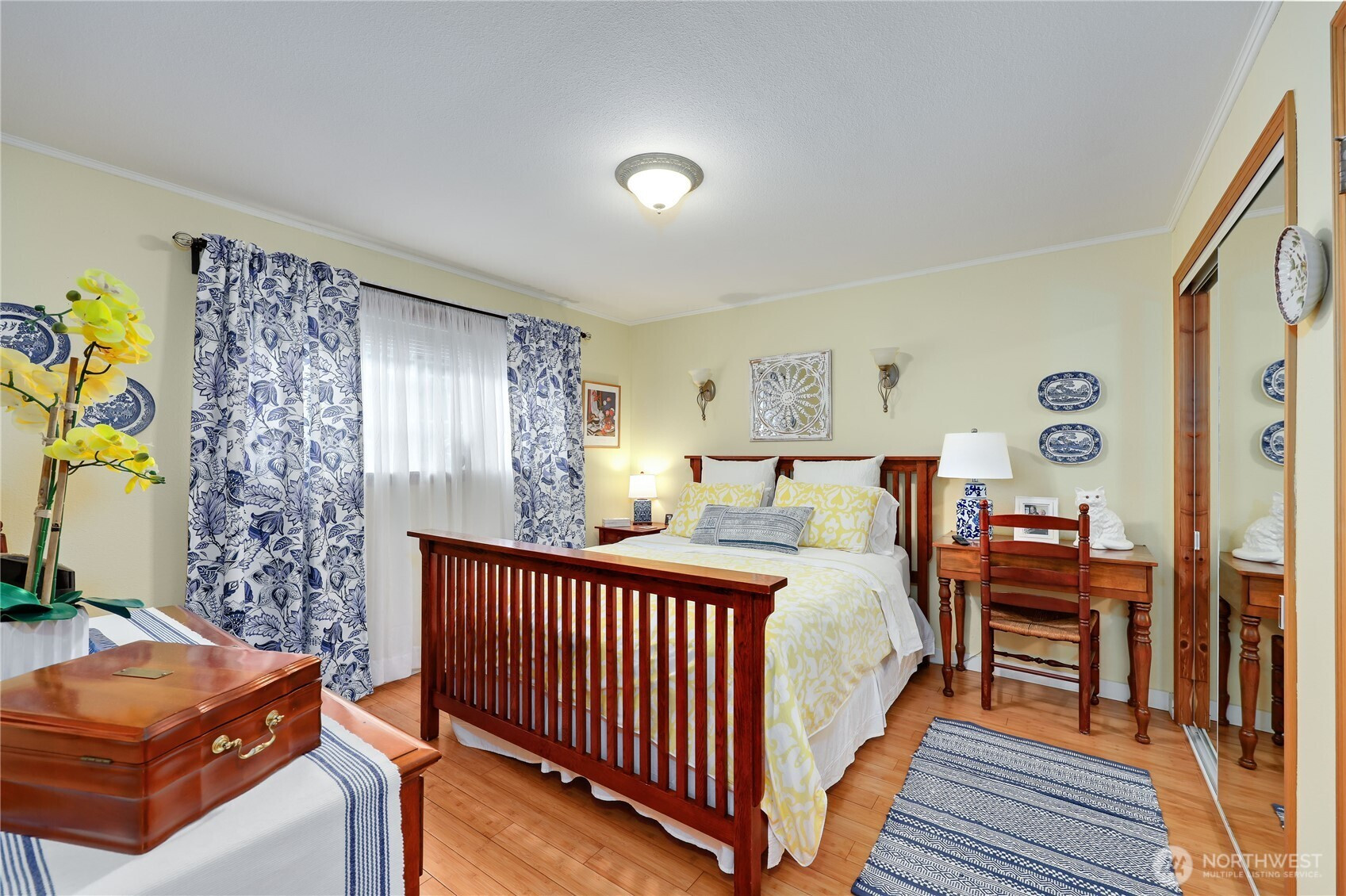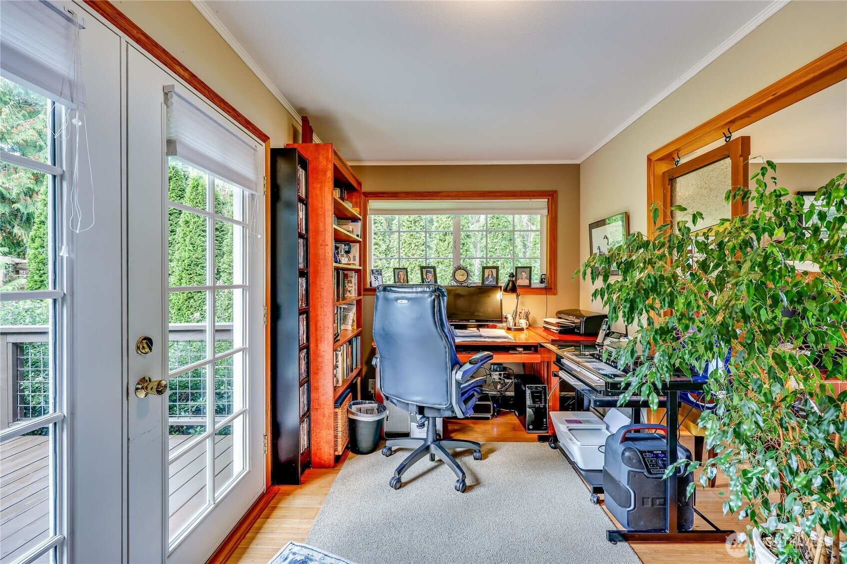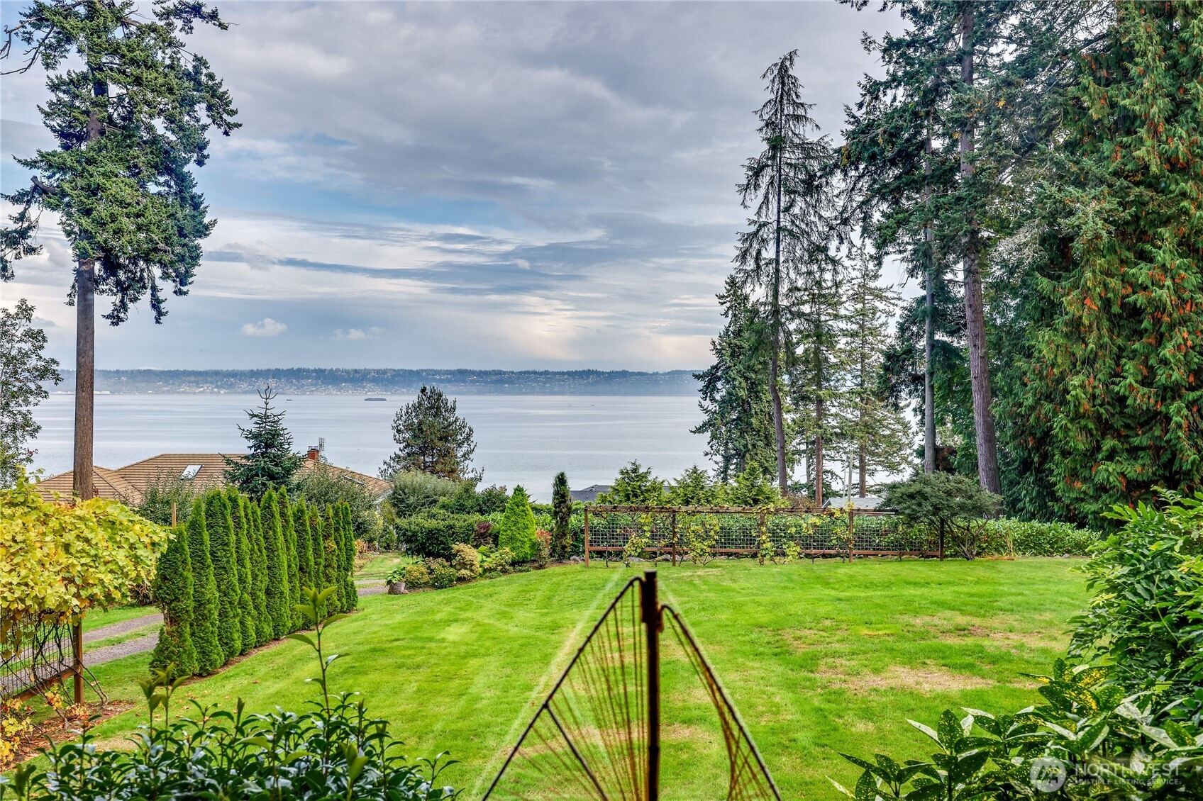Opportunity Knocks! Enjoy sweeping views of Puget Sound & the Cascade Mountains from every room. Lg windows draw in natural light & open onto an expansive entertainment deck—perfect for gatherings or quiet evening sunsets. Gourmet kitchen features a serving bar, SS appliances, & plenty of counters. Just off the living room is a versatile study/office. The property also includes separate detached flex space for future Mother IL plans. Impressive 25' x 46' garage/shop offers abundant space for projects, storage, or creative endeavors, a hobbyist dream! The surrounding yard is filled with mature landscaping, vibrant flower gardens, creating a peaceful retreat. Minutes to adorable downtown, Edmonds & Seattle ferries, restaurants, shops, & more.