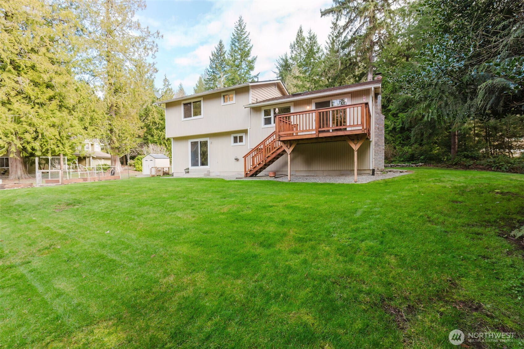 Welcome to your impeccably maintained & efficiently designed home in the heart of North Kitsap! Step inside & immediately feel the airiness of open-concept living featuring vaulted ceilings, bay window, skylight & a cozy Lopi woodstove — perfect for cozy evenings. The open, updated kitchen with quartz countertops and new cabinetry offers abundant storage & flows seamlessly to the dining area, ideal for everyday living & entertaining. With 3 bedrooms, 2.25 updated bathrooms, plus a bonus/flex room on the lower level, there’s plenty of room for everyone! Other updates include solid core wood doors, tile floors, engineered wood floors, oak stairs, motorized shades in living room & kitchen, double pane vinyl windows & newer heat pump (2023) with a smart thermostat. Step outside to a park-like yard, just shy of an acre, complete with a partially fenced sports court, fire pit, a garden shed & a fenced garden area with raised beds — the perfect yard for gardening, relaxing, hosting, or soaking in the peaceful NW surroundings. Plus, a fully wrapped & insulated walk-in crawl space with sump pump, offering dry, protected conditions and functional storage capacity. All this in a prime location near top-rated NK schools, parks, & amenities. Your exceptional opportunity awaits! Make it yours today!