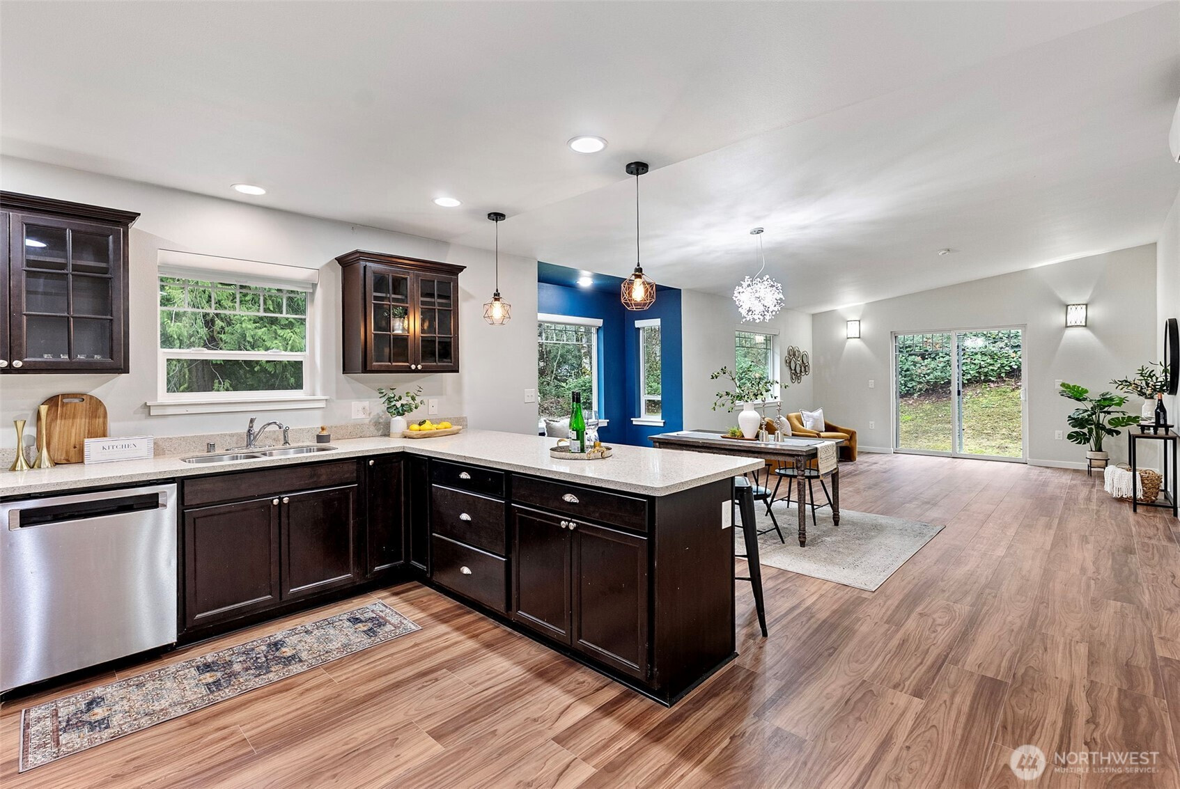 Enjoy comfort and convenience in this single-story home tucked into the heart of Manchester. This well maintained 3 bed 2 bath home offers a flexible layout with two living spaces and a bright kitchen featuring solid stone countertops, SS appliances, and a peninsula perfect for coffee mornings, casual meals, or entertaining. Brand new LVP flooring flows throughout, with fresh carpet in the second bedroom. The primary suite includes a spacious ensuite and walk-in closet. Set on a private .92-acre lot near the end of the road giving you room to breathe, garden, or just enjoy the quiet PNW vibes. Just minutes to Manchester State Park, Schools, Library, Waterfront and Shops!