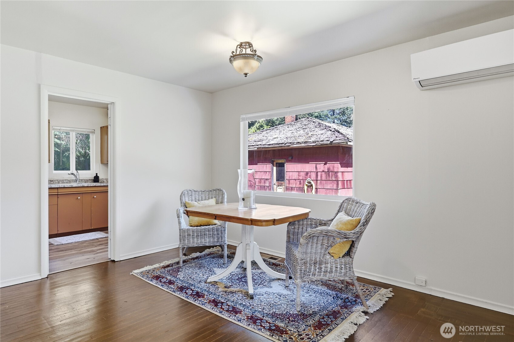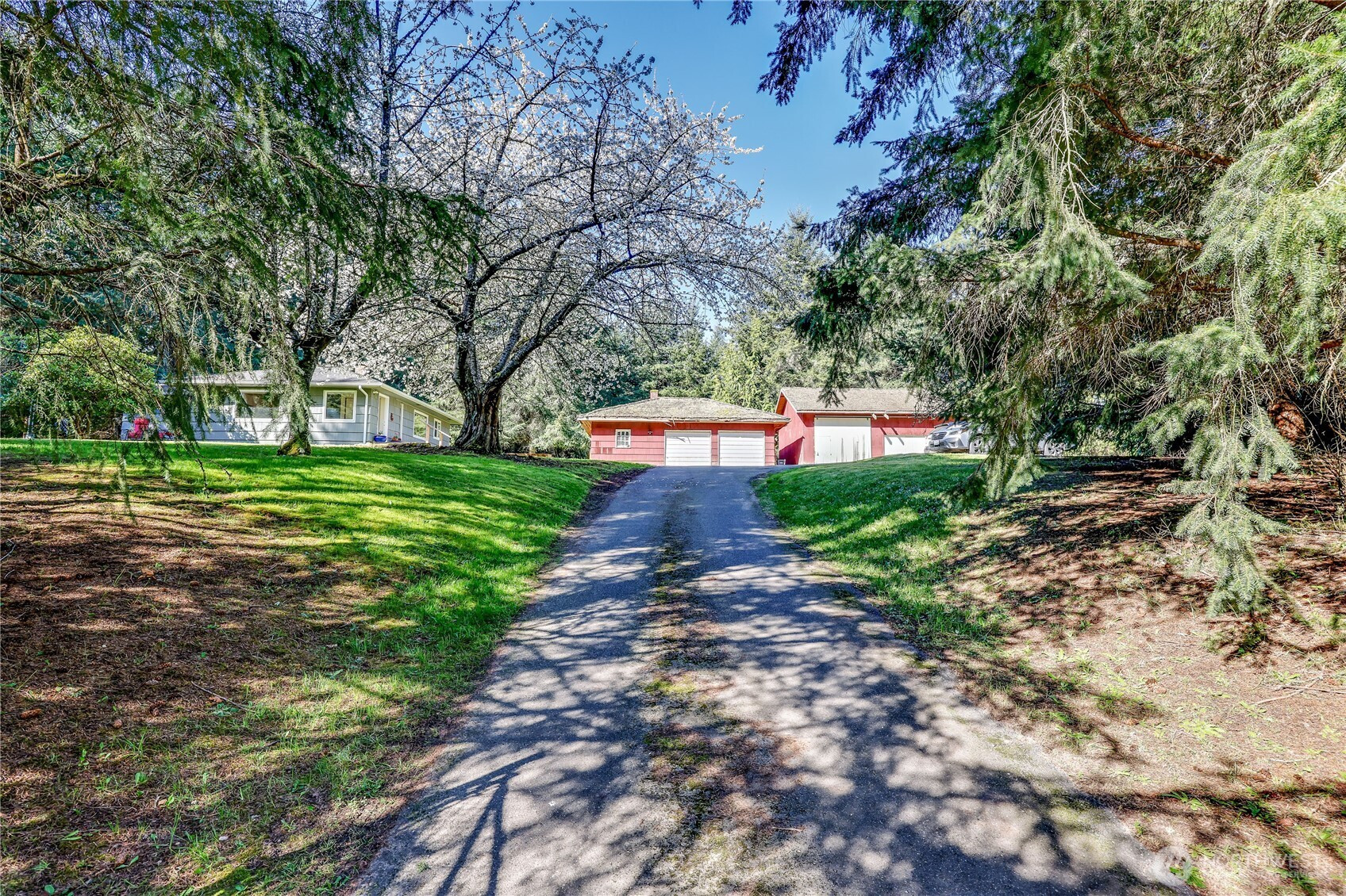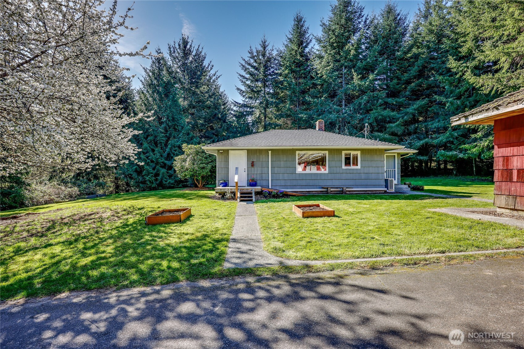 Kingston Farm house set on a peaceful and picturesque 5 acres! Located between downtown Kingston and Whitehorse Golf course! Darling 1950's rambler with wood floors, large kitchen, dining area, utility room off the kitchen and a large primary bedroom with connecting bathroom. Newer efficient heating system with AC. Solid home with remodel potential! The deck overlooks the big beautiful yard and even has a tree swing! The Detached garage and large shop/barn, have cement floors and foundation but both need new roofs. For investors, the west property line of this property is the boundary of the Urban Growth Area and has the legal right to connect to the future water and sewer system in the Arborwood project. A wetland study has been conducted and is available, however, Buyers should verify the accuracy of the report as buffer rules have change since it was prepared. Adjoining 5 acre parcel available mls#2502308. Properties like this are hard to find! Bring your vision and imagination to unlock the incredible potential of this truly special property!