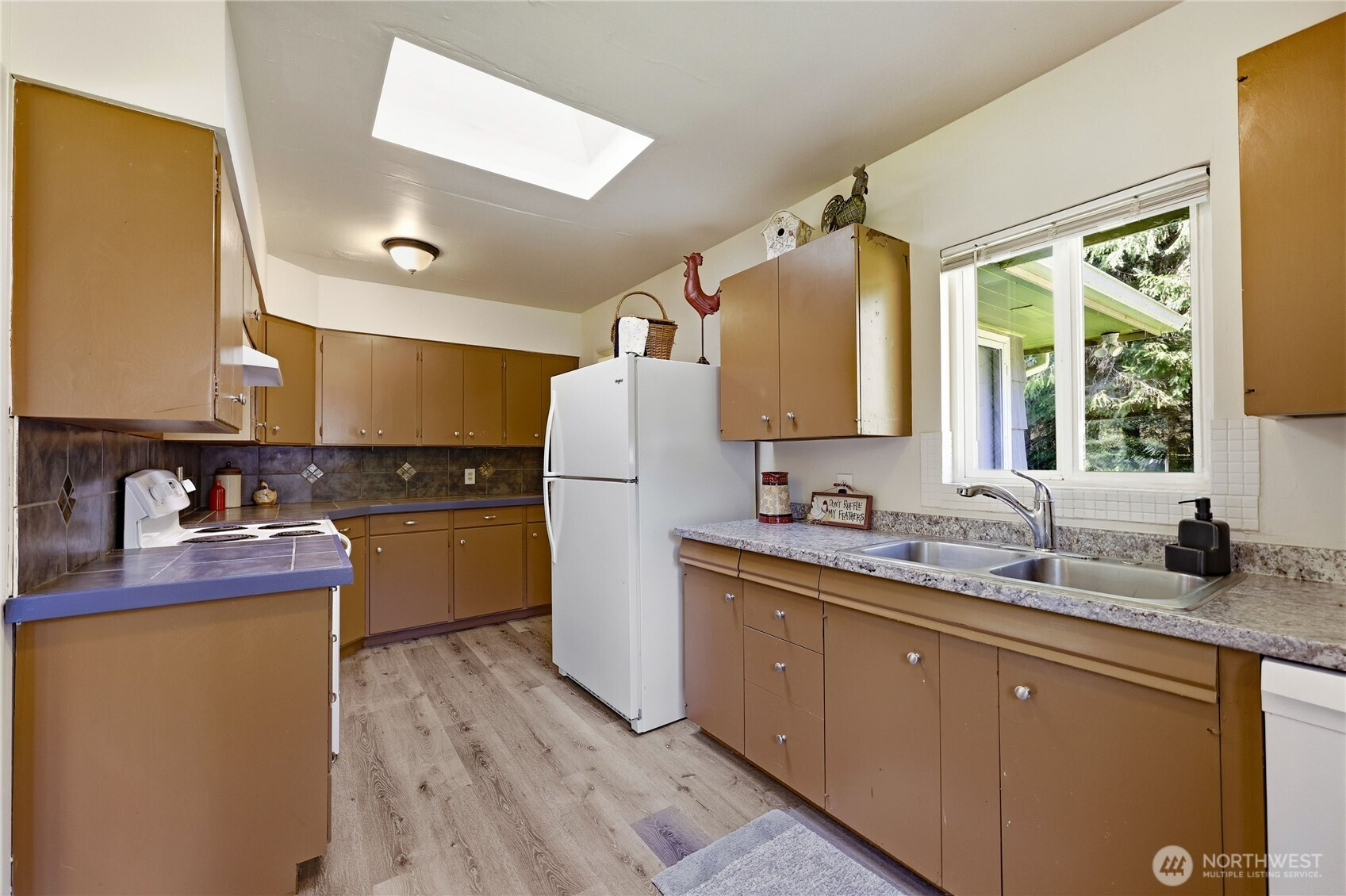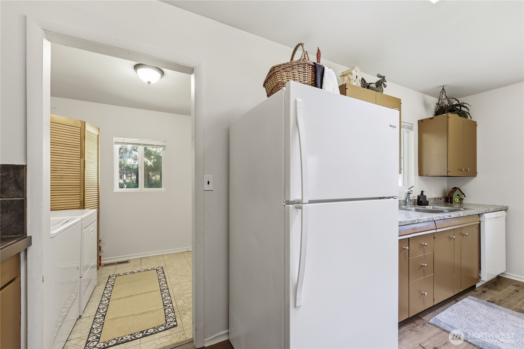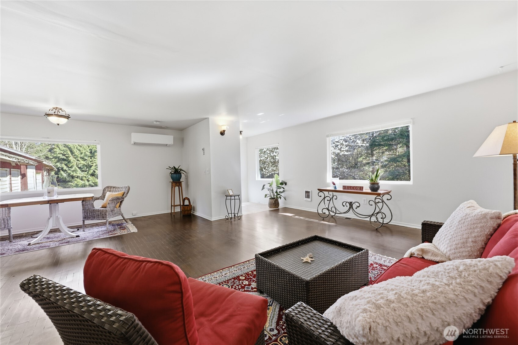 Kingston Farm house set on a peaceful and picturesque 5 acres! Located between downtown Kingston and Whitehorse Golf course! Darling 1950's rambler with wood floors, large kitchen, dining area, utility room off the kitchen and a large primary bedroom with connecting bathroom. Newer efficient heating system with AC. Solid home with remodel potential! The deck overlooks the big beautiful yard and even has a tree swing! The Detached garage and large shop/barn, have cement floors and foundation but both need new roofs. For investors, the west property line of this property is the boundary of the Urban Growth Area and has the legal right to connect to the future water and sewer system in the Arborwood project. A wetland study has been conducted and is available, however, Buyers should verify the accuracy of the report as buffer rules have change since it was prepared. Adjoining 5 acre parcel available mls#2502308. Properties like this are hard to find! Bring your vision and imagination to unlock the incredible potential of this truly special property!