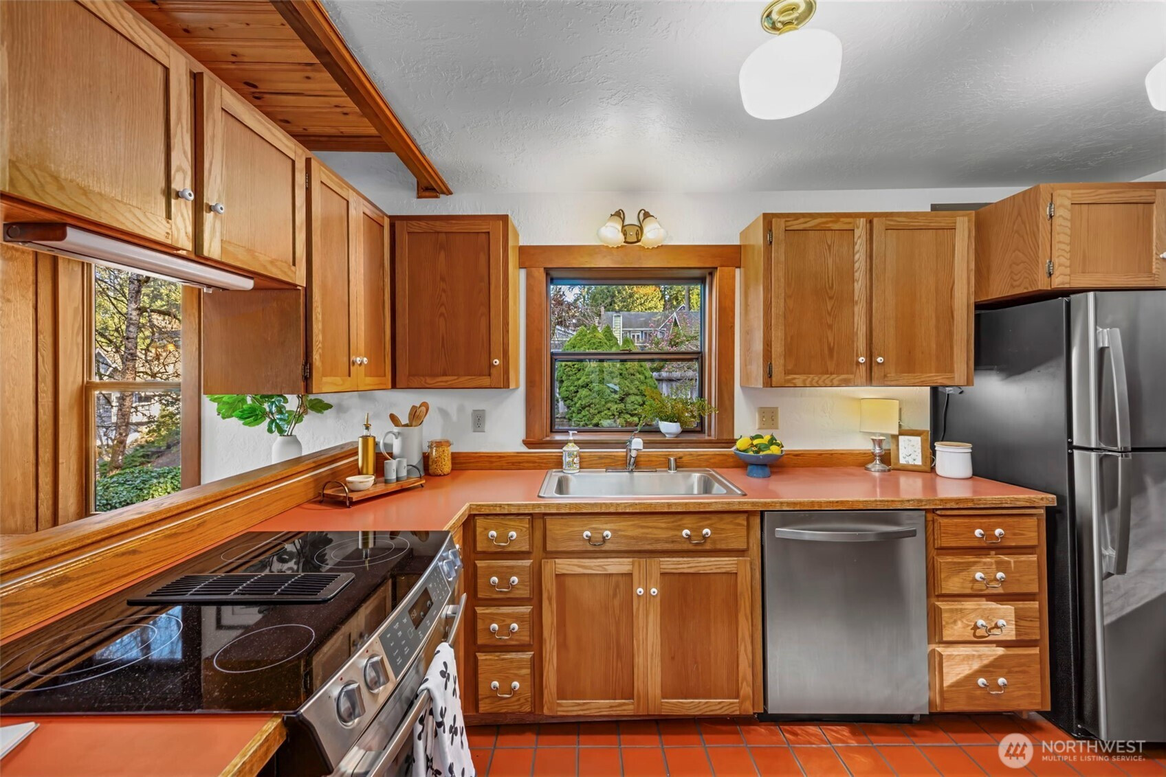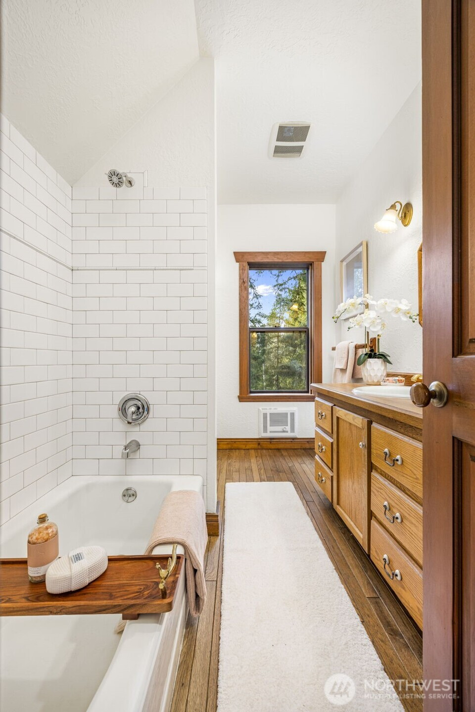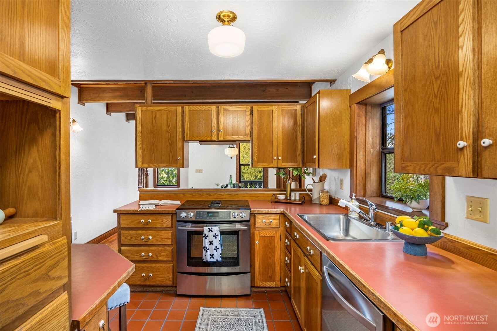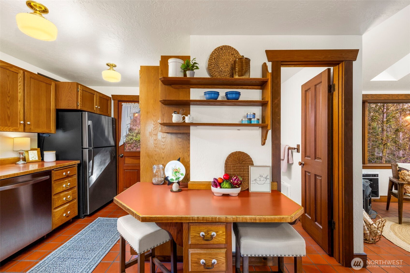 Wonderfully unique, one owner 3BR + Bonus Victorian chalet with absolutely gorgeous comfortable aesthetic. Custom built, quality construction, top to bottom. This home has all the charm, character, space and flow for enjoying special moments with loved ones inside & out. Pride of ownership shows at every turn: Pristine hardwood floors, warm tongue and groove pine ceilings & refined exposed wood beams. Spacious welcoming dining opens to kitchen, enchanting living room w/ beautiful built-ins, oversize airy sitting room off kitchen w/ vaulted ceilings, skylights & wood stove. New carpet, lvp, interior paint and recently updated bathrooms with custom tile. Light and bright 500+ SF, west-facing deck off living room + big level yard, perfect for summer fun and enjoyment. Lower level family room plus 2 additional BR's, 3/4 bath and walk out to yard. Solid wood windows with wood wrap. Efficient Mini-splits for heat and AC. RV parking. This large elevated lot is nestled in a quiet wooded Central Kitsap neighborhood. Mins to Silverdale/Bremerton shopping & bases. Award winning CK Schools.