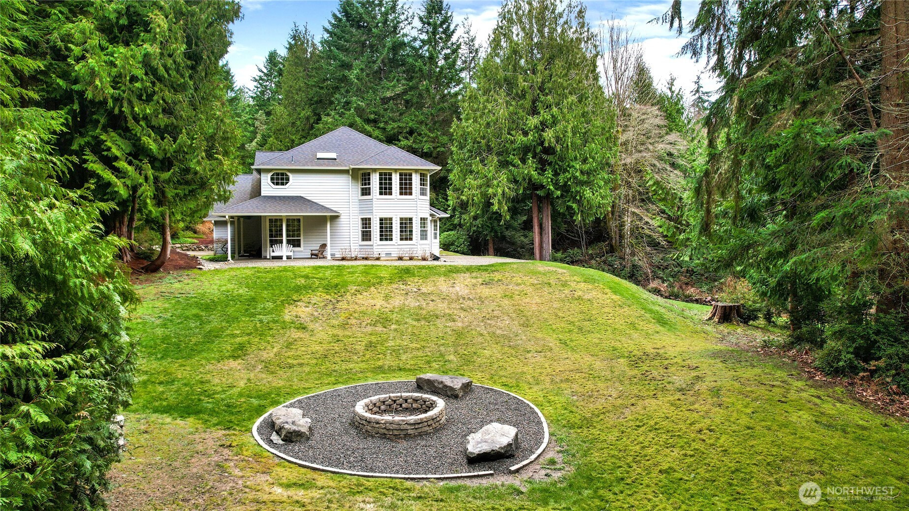 Beautiful custom-built home with only one owner, meticulously maintained and truly move-in ready. Southern exposure fills the home with natural light all day long. Recently updated kitchen and bathrooms, plus a new roof for lasting peace of mind. The upstairs bonus room offers flexible space for a home office or guest retreat. Privately nestled among the trees, the home overlooks an expansive sunlit lawn. Spend summer evenings by the outdoor fireplace and enjoy the serenity of your surroundings. The house is wired for a generator to keep you warm and your food cold during a power outage. There is abundant parking and room for an RV or boat. A spacious three-car garage with workshop completes the package.