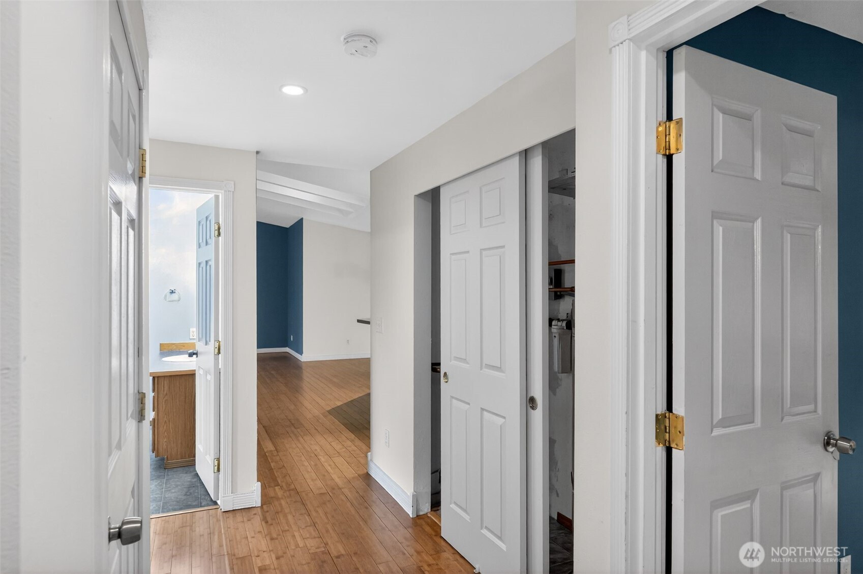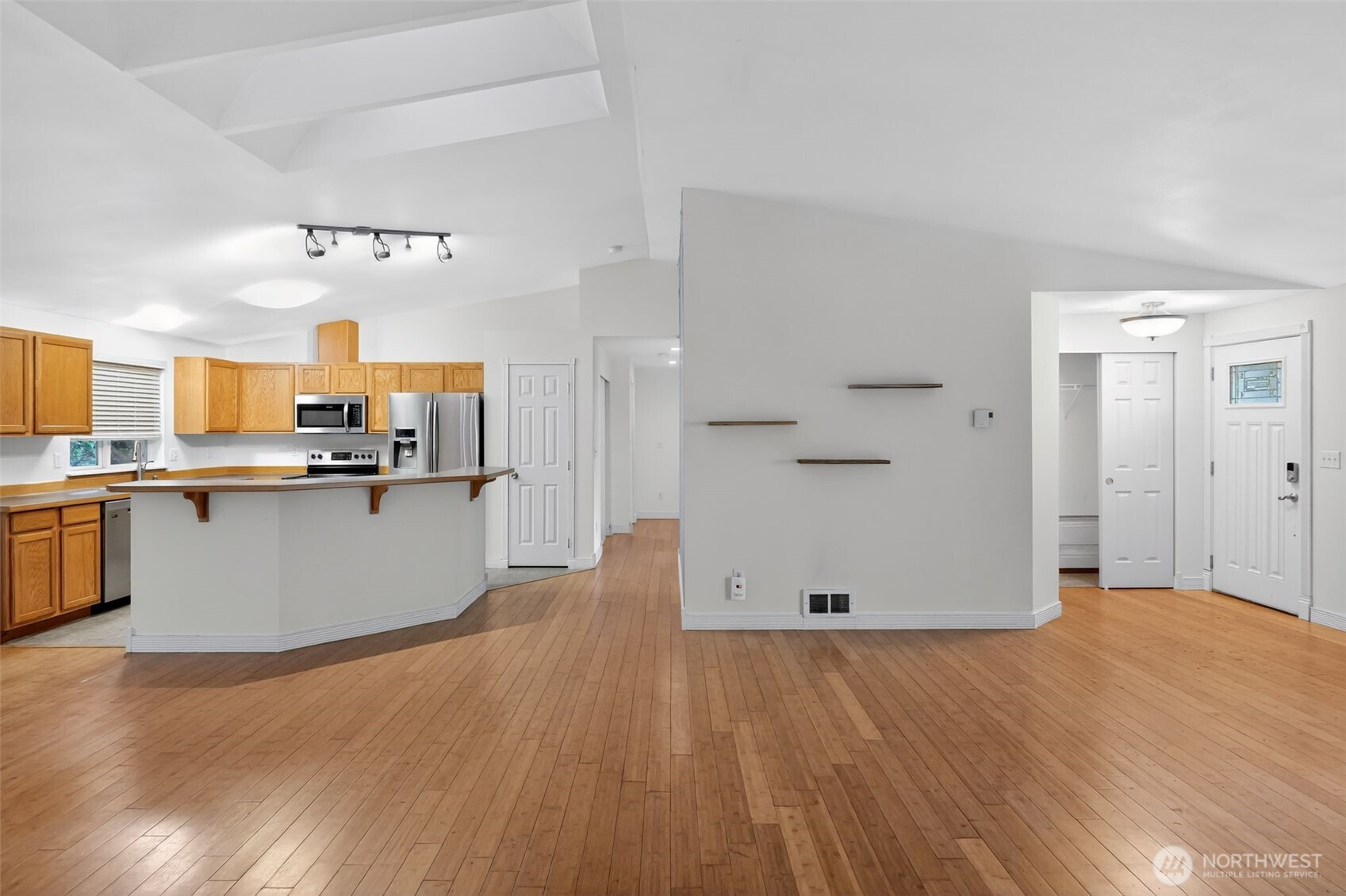 Quiet setting with convenient access to everyday services in Poulsbo. Covered entry welcomes you into a bright living space/great room featuring beautiful bamboo hardwood floors, offering durability, easy maintenance, and a warm, natural look throughout the main living area. Large windows bring in natural light, creating an open and inviting atmosphere for everyday living. Kitchen is designed for efficiency with ample cabinetry for storage, generous counter space, and direct connection to the dining area for easy meals and entertaining. Well-sized bedrooms provide private spaces with good closet storage, all with organizers, while the primary bedroom offers a full en-suite bathroom. Outside, the property provides usable yard space with room for gardening, recreation, or relaxing outdoors. Enjoy the benefit of a quiet location that remains close to shopping, dining, and local amenities, combining privacy with convenience.