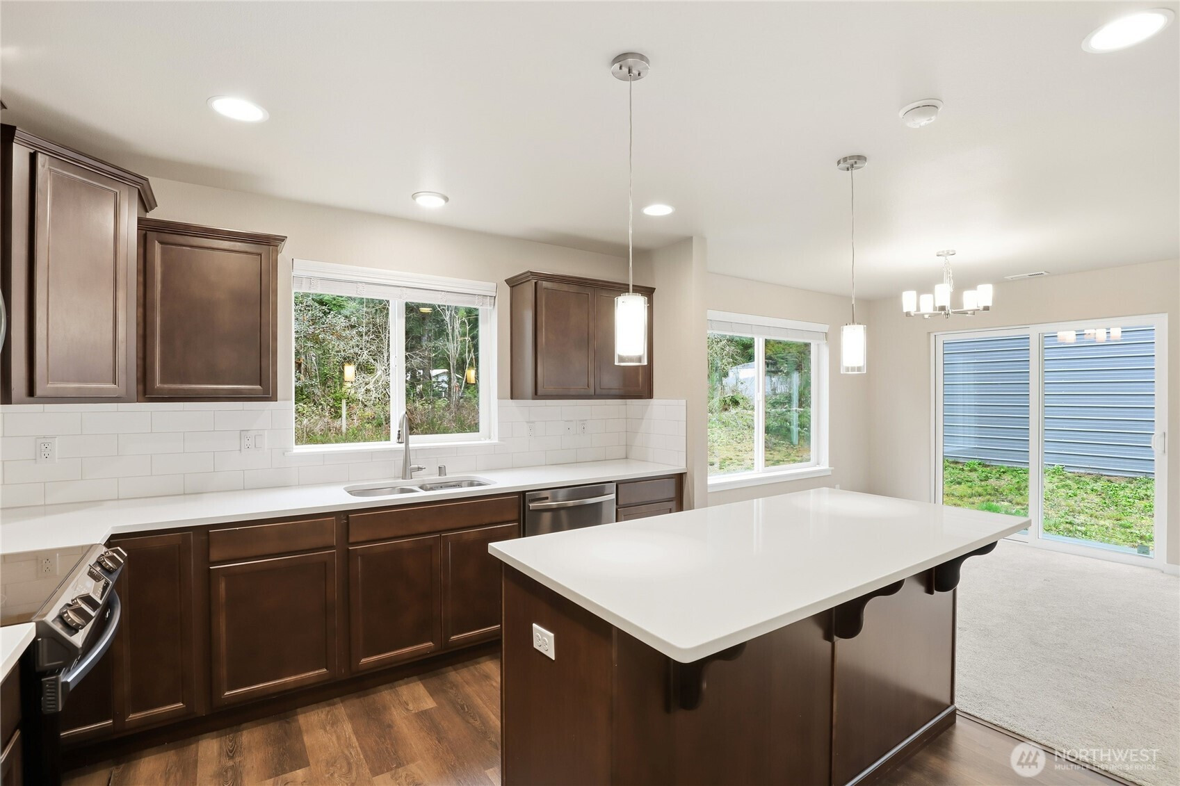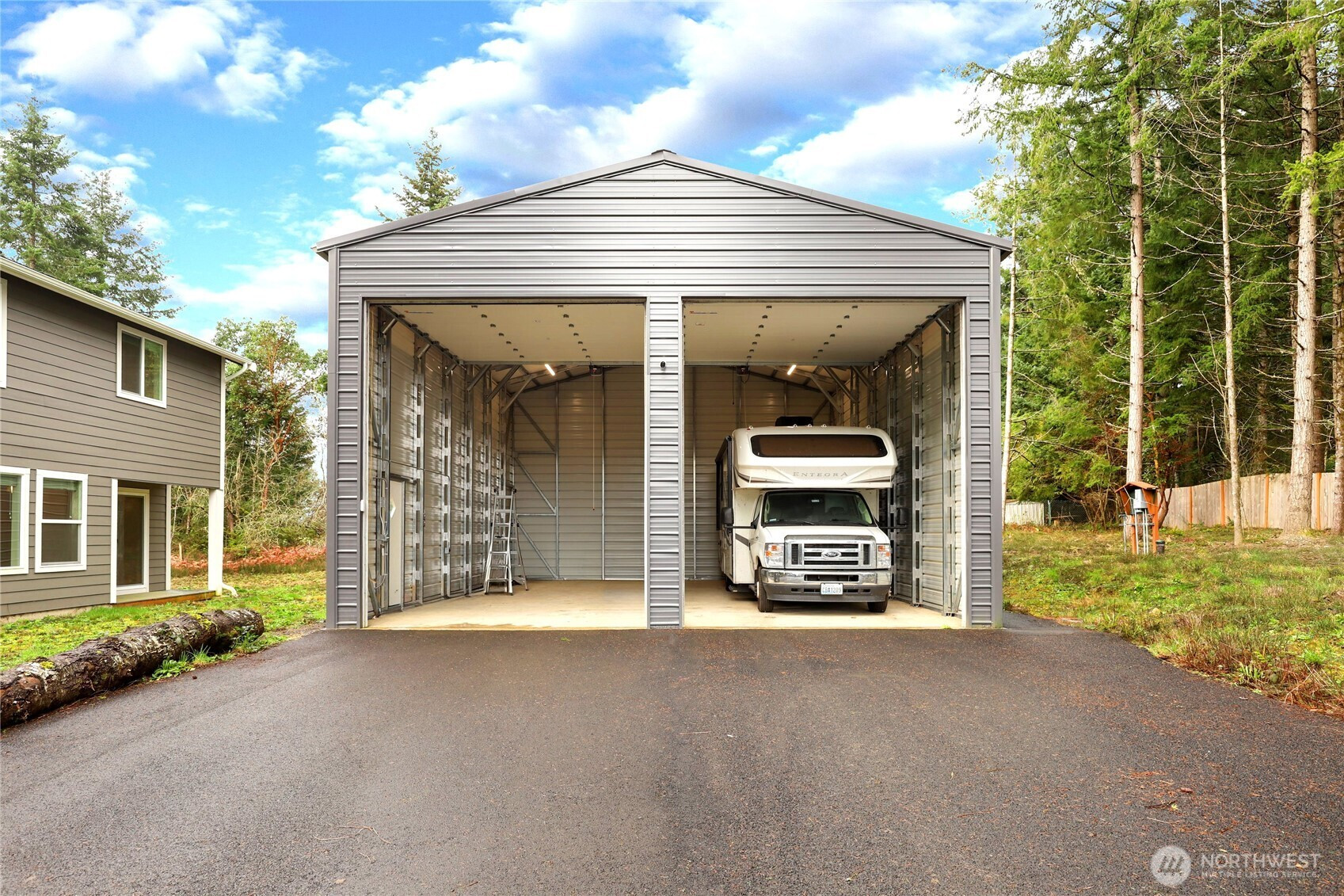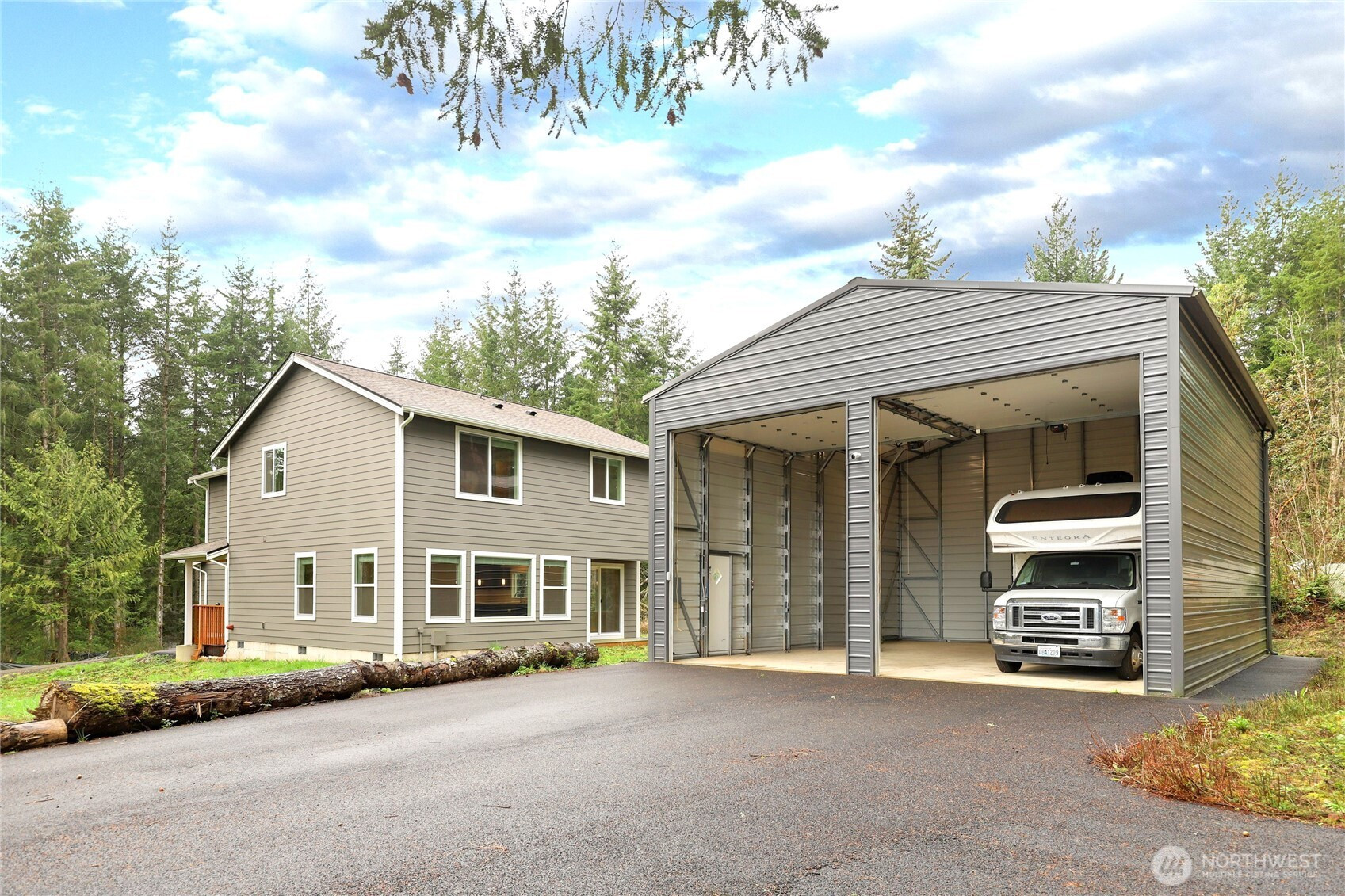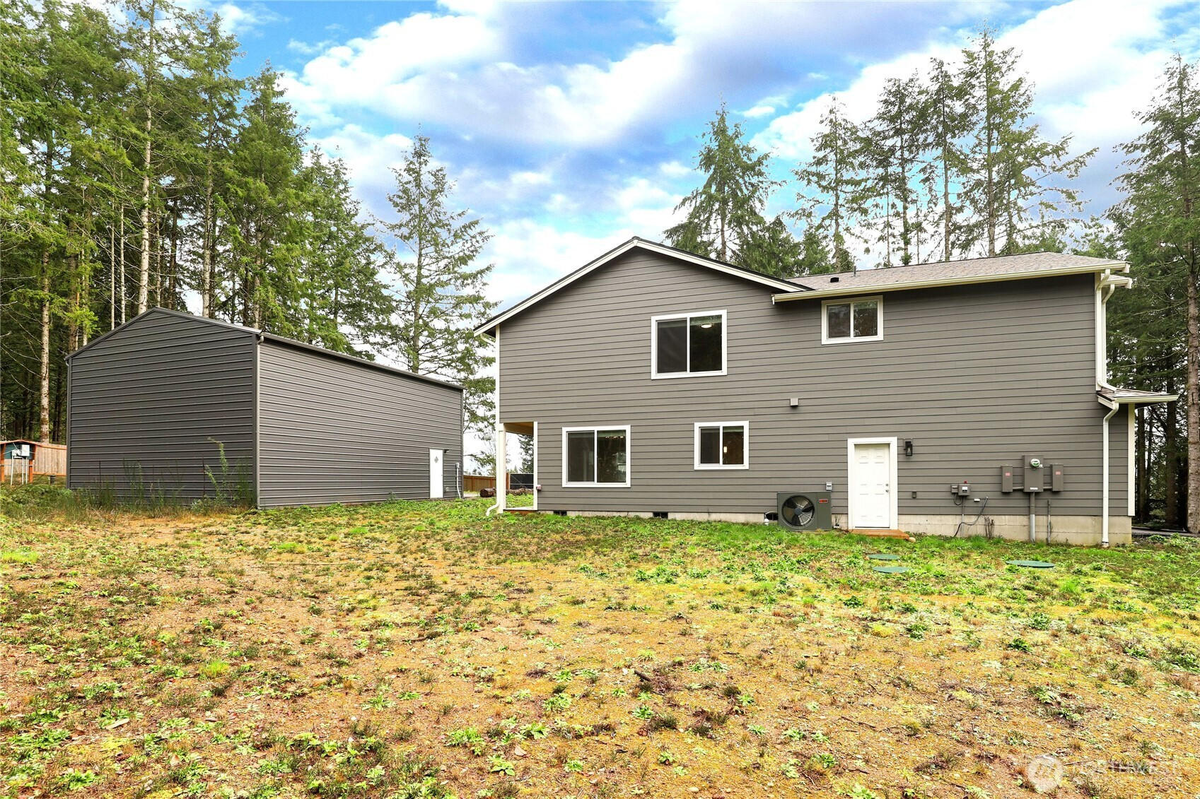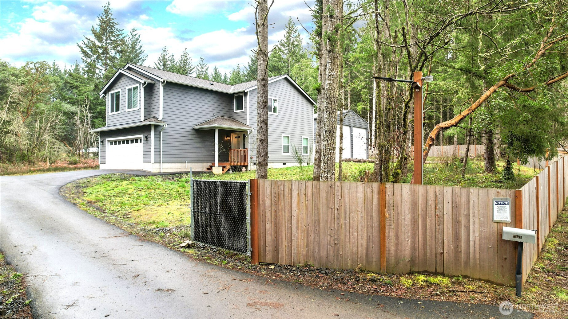 Built in 2023, this beautifully designed 3-bedroom, 2.5-bath home offers modern comfort, thoughtful upgrades, and exceptional privacy. Tucked away in a serene setting, the property features separate asphalt driveways for the home and shop, providing plenty of parking and a distinct entrance for added convenience. The open-concept main living area creates a seamless flow between the kitchen, dining, and living spaces—perfect for everyday living and entertaining. Premium hard surface countertops elevate the kitchen, while a heat pump delivers efficient heating and cooling year-round. The spacious primary suite is a true retreat, offering generous proportions and a peaceful atmosphere. A 320 AMP panel upgrade supports enhanced electrical capacity, including electric vehicle charging in the main garage and motorhome charging in the shop. The fully fenced property also includes a water filtration system installed in the garage and an exterior finished with upgraded two-tone paint for striking curb appeal. The shop is well-equipped with battery backup doors and keypad entry, adding both function and security to this impressive property.