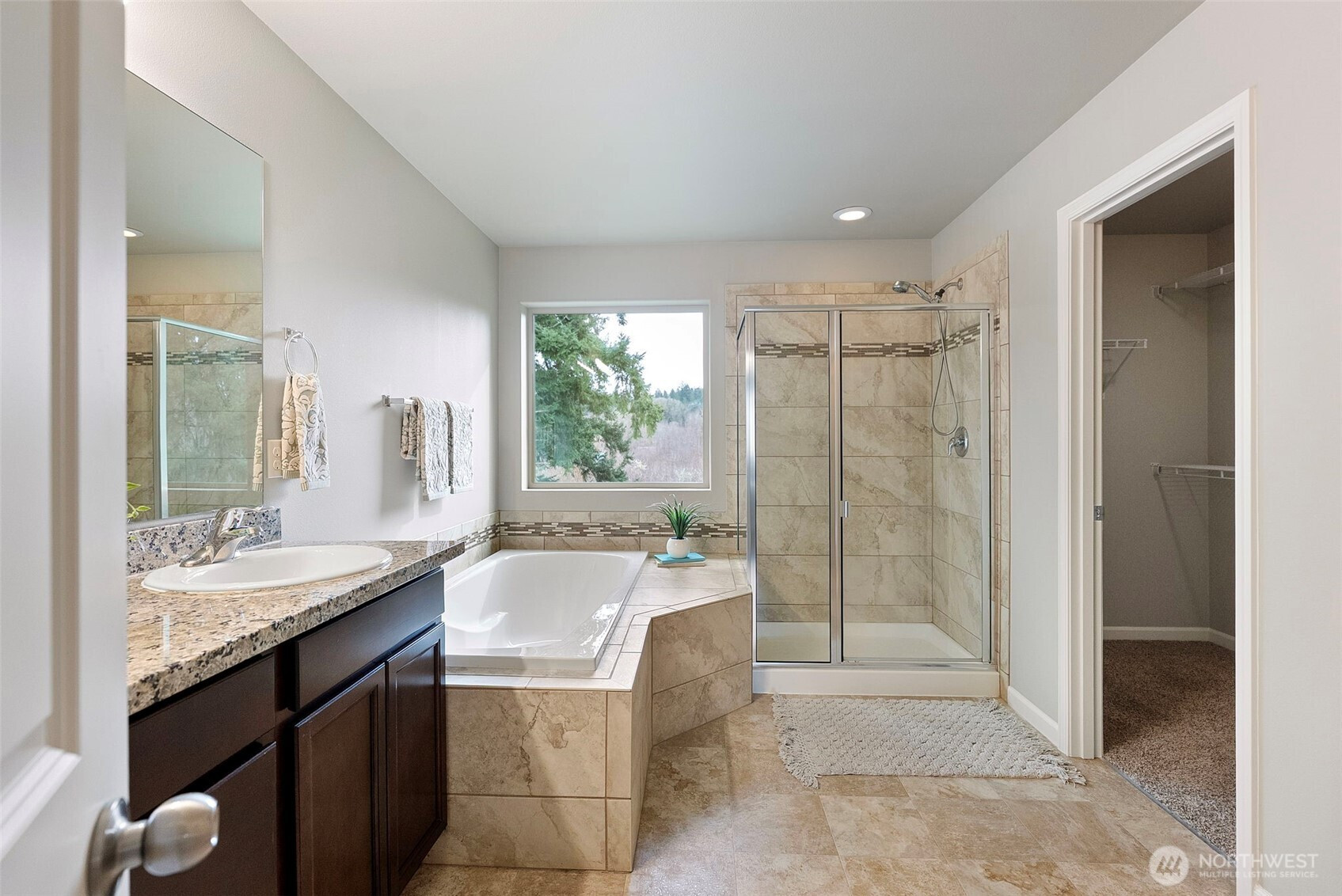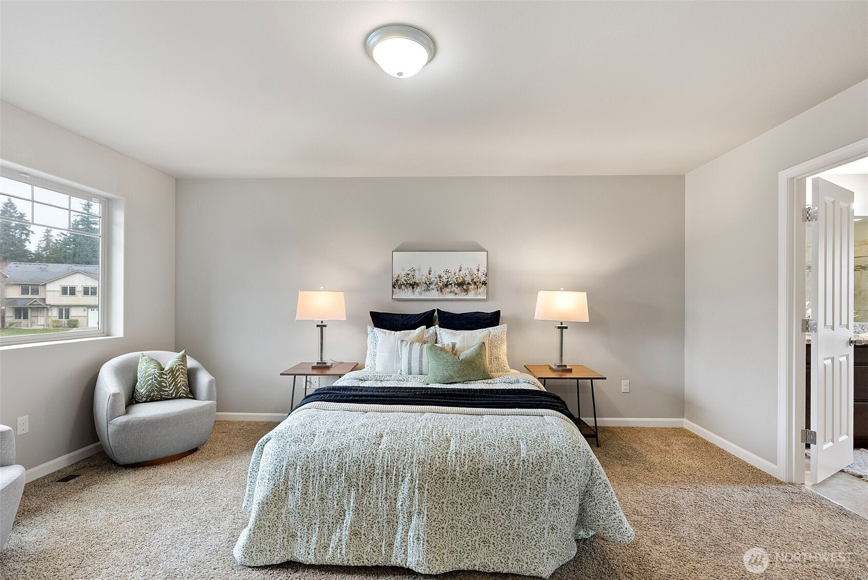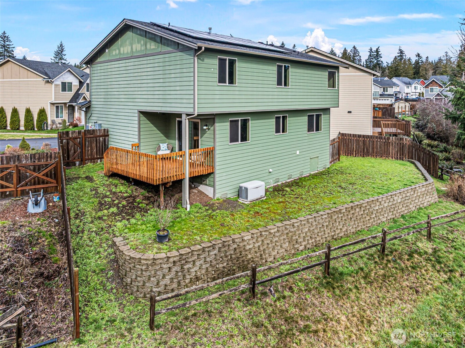 Beautifully maintained 4-bedroom home in Hidden Meadows! This spacious 2,095 sqft home features a modern kitchen with granite countertops, large island, and custom millwork. Open concept living area with cozy fireplace and dining room. Upstairs, primary suite has walk-in closet and 5-piece bathroom with large soaking tub. Plus, 3 guest bedrooms, utility room, and full bath. Enjoy the open backyard with large deck and brick retaining wall - backs up to greenbelt for added privacy! Attached garage, generator, 14 solar panels with Enphase System. Desirable location close to CK schools, highways, ferry, and Navy bases for easy commute!