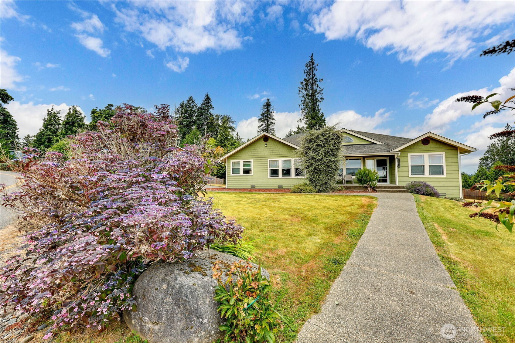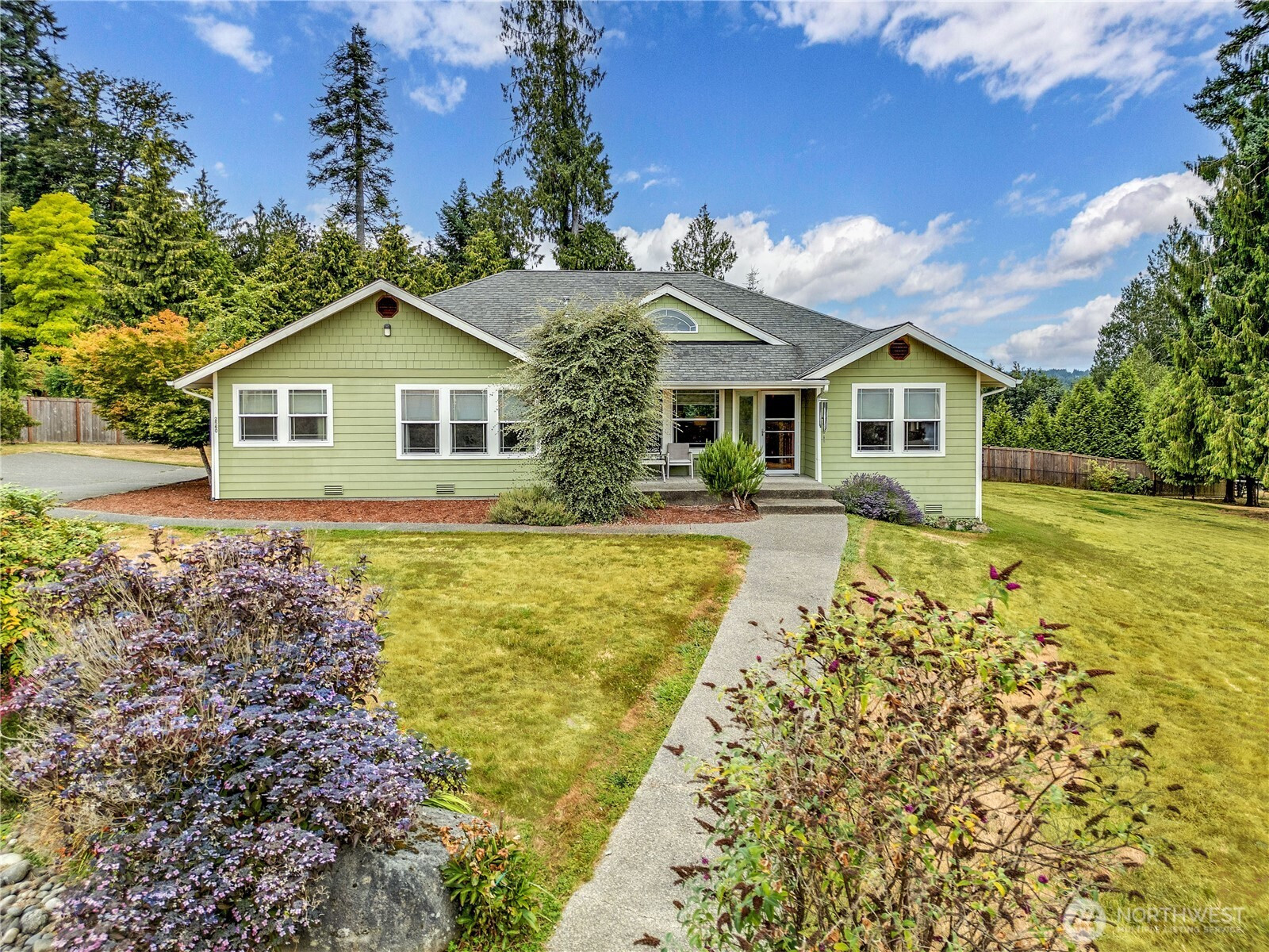 Amazing single level home located in Central Kitsap. Walk into this open floor plan concept, vaulted ceiling, ceiling fan and natural lighting from the skylights. From the large living room, propane fireplace for those cooler nights. Beautiful kitchen with convention double oven, and kitchen island. Primary bedroom with walk-in closet, 5- piece bathroom, including jetted tub and separate shower with dual shower heads. Two additional bedrooms, French doors, and full bathroom. Currently the seller is using one of the bedrooms as den. Enjoy your mornings sitting on the front porch viewing the beautiful sunrises or just enjoy the view of the bay. Seek out to the private back yard on the Yellow Cedar deck and enjoy the view of the mountains. Oversized garage, partially fenced yard with new furnace plus A/C new Honeywell thermostat. Home is Generator ready and LED lighting. Close to base, schools, freeway and ferries.