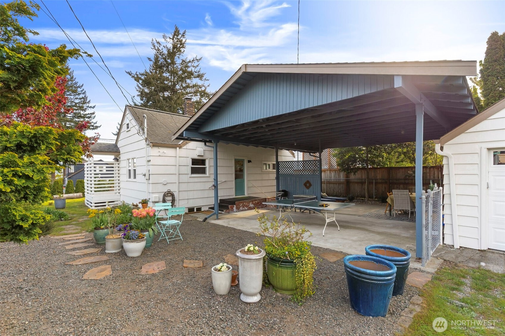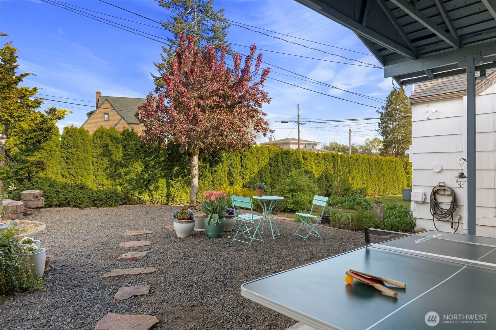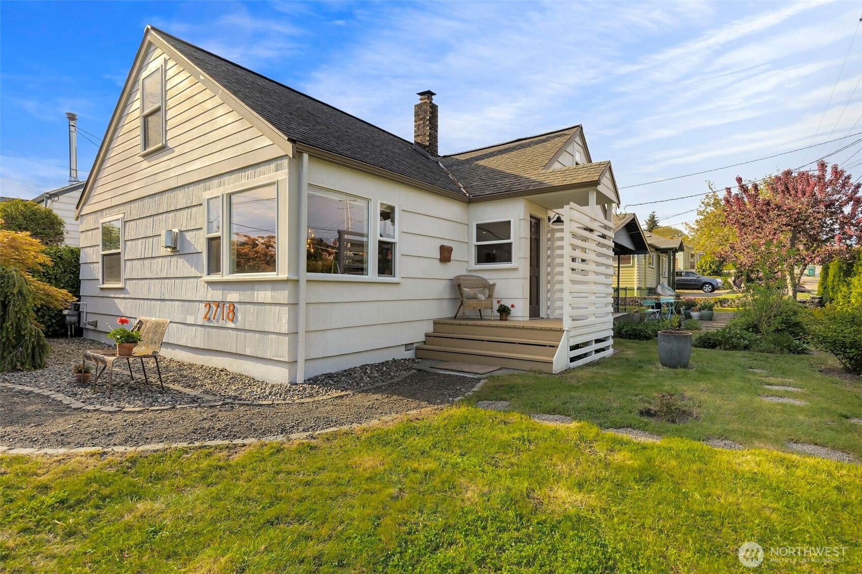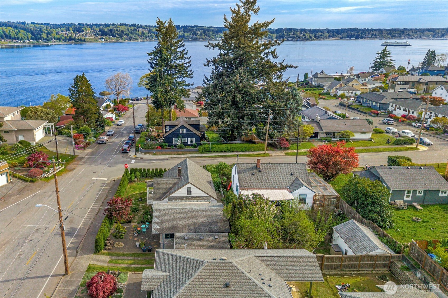 Discover the perfect blend of 1940s charm and modern flow in this stunning Manette home. Rare for a 1942 build, the interior boasts a beautifully opened-up living space featuring original hardwoods, an updated kitchen, and a cozy gas stove. Large windows frame water and ferry views, bringing the beauty of the Sound indoors. The upper level offers a versatile layout with a third bedroom and a flex space perfect for an office or ideal for a primary suite conversion. Downstairs, the basement provides a functional bonus room for relaxing, or you could use it as a gym or media space. Step outside to a large covered outdoor area and beautiful gardens, perfect for year-round entertaining, plus a detached garage. Perfectly situated, this home is an easy walk to the local shops and dining in Downtown Manette or a stroll across the bridge to Downtown Bremerton and the Seattle Ferry.
