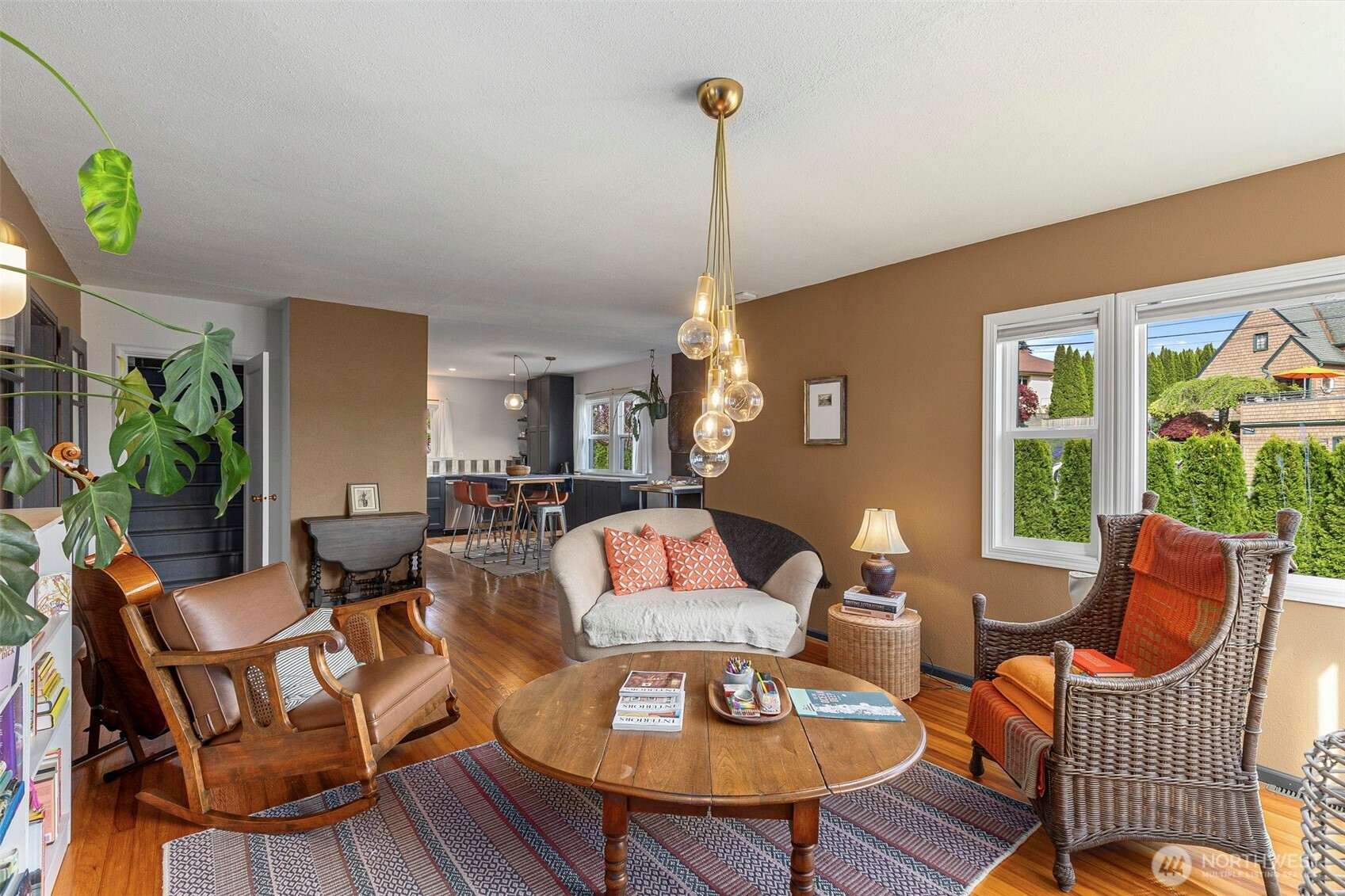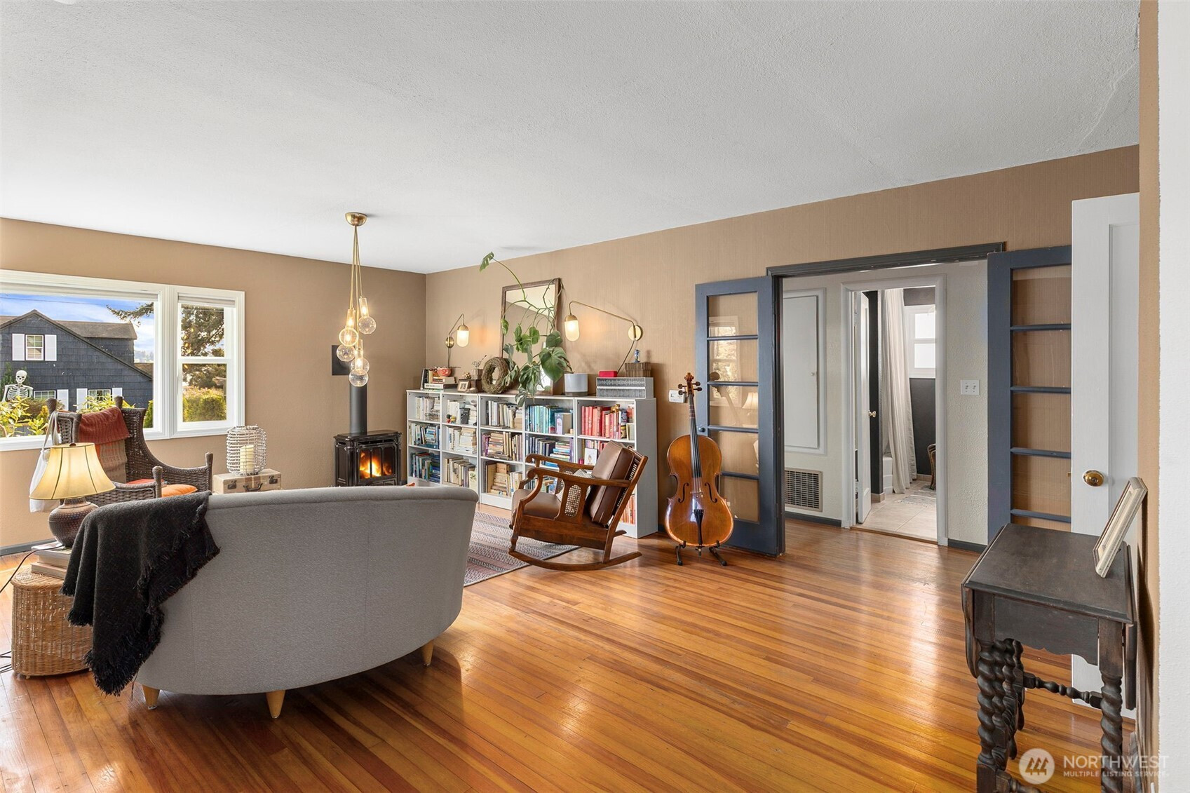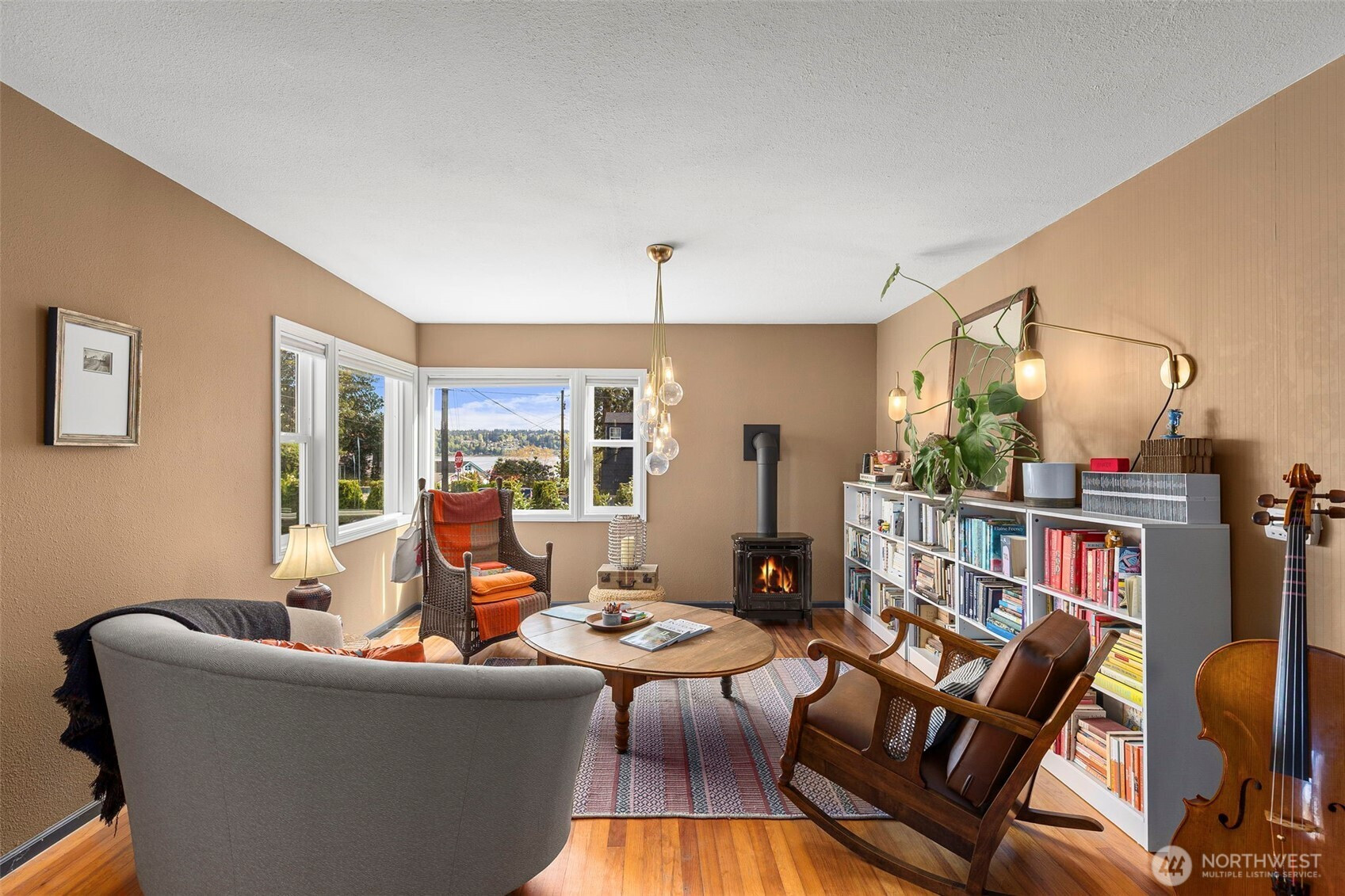 Discover the perfect blend of 1940s charm and modern flow in this stunning Manette home. Rare for a 1942 build, the interior boasts a beautifully opened-up living space featuring original hardwoods, an updated kitchen, and a cozy gas stove. Large windows frame water and ferry views, bringing the beauty of the Sound indoors. The upper level offers a versatile layout with a third bedroom and a flex space perfect for an office or ideal for a primary suite conversion. Downstairs, the basement provides a functional bonus room for relaxing, or you could use it as a gym or media space. Step outside to a large covered outdoor area and beautiful gardens, perfect for year-round entertaining, plus a detached garage. Perfectly situated, this home is an easy walk to the local shops and dining in Downtown Manette or a stroll across the bridge to Downtown Bremerton and the Seattle Ferry.