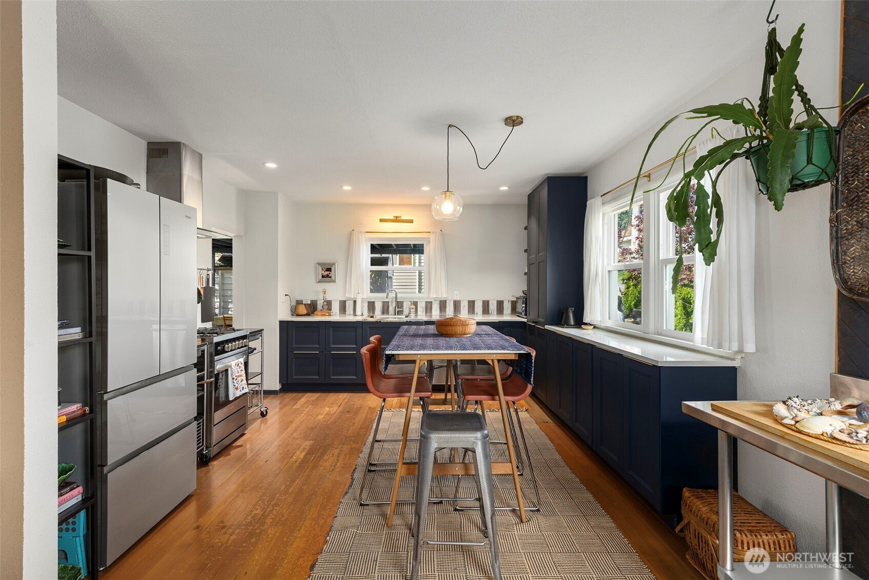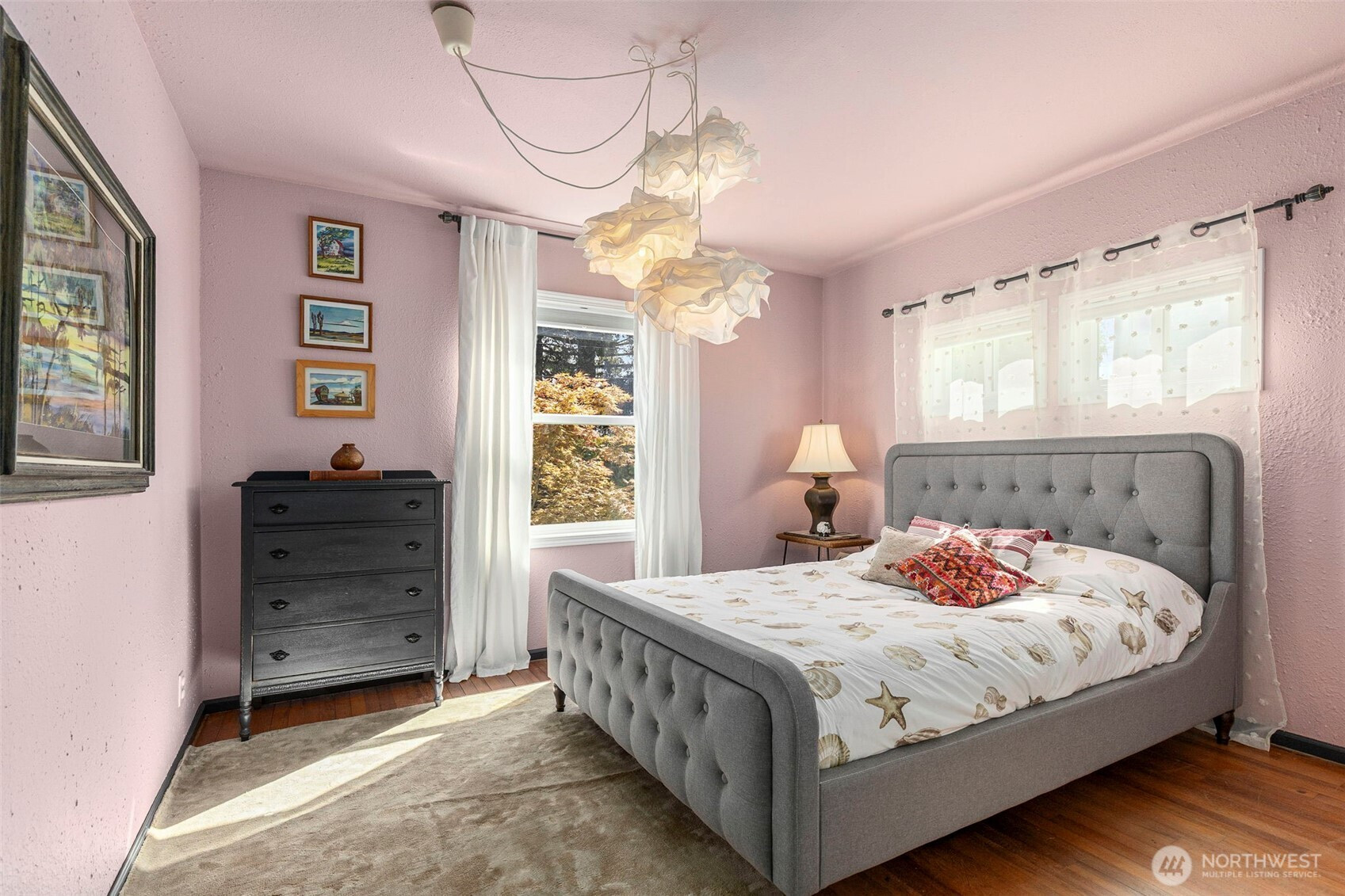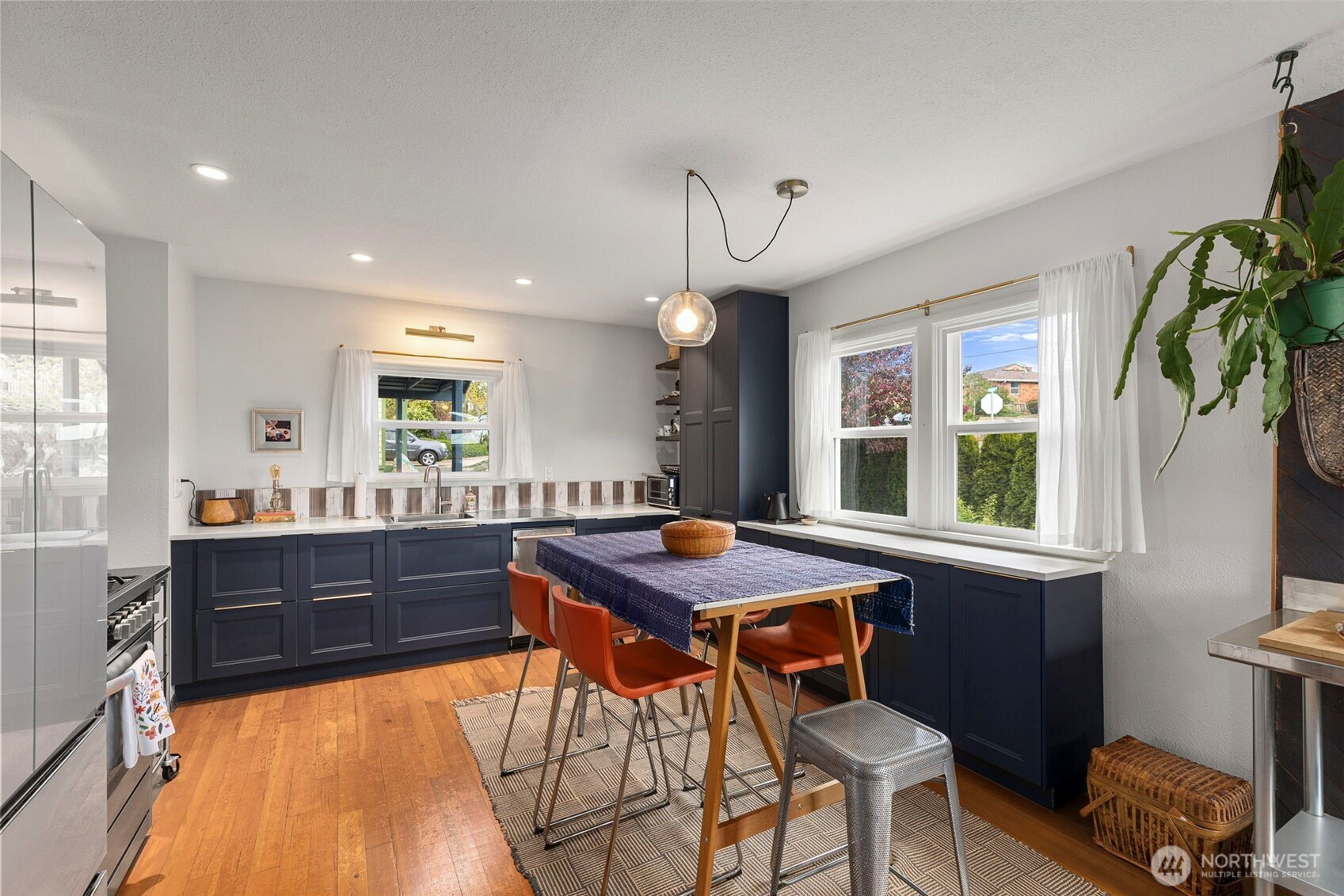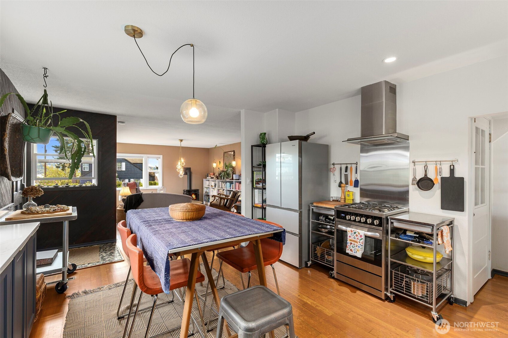 Discover the perfect blend of 1940s charm and modern flow in this stunning Manette home. Rare for a 1942 build, the interior boasts a beautifully opened-up living space featuring original hardwoods, an updated kitchen, and a cozy gas stove. Large windows frame water and ferry views, bringing the beauty of the Sound indoors. The upper level offers a versatile layout with a third bedroom and a flex space perfect for an office or ideal for a primary suite conversion. Downstairs, the basement provides a functional bonus room for relaxing, or you could use it as a gym or media space. Step outside to a large covered outdoor area and beautiful gardens, perfect for year-round entertaining, plus a detached garage. Perfectly situated, this home is an easy walk to the local shops and dining in Downtown Manette or a stroll across the bridge to Downtown Bremerton and the Seattle Ferry.