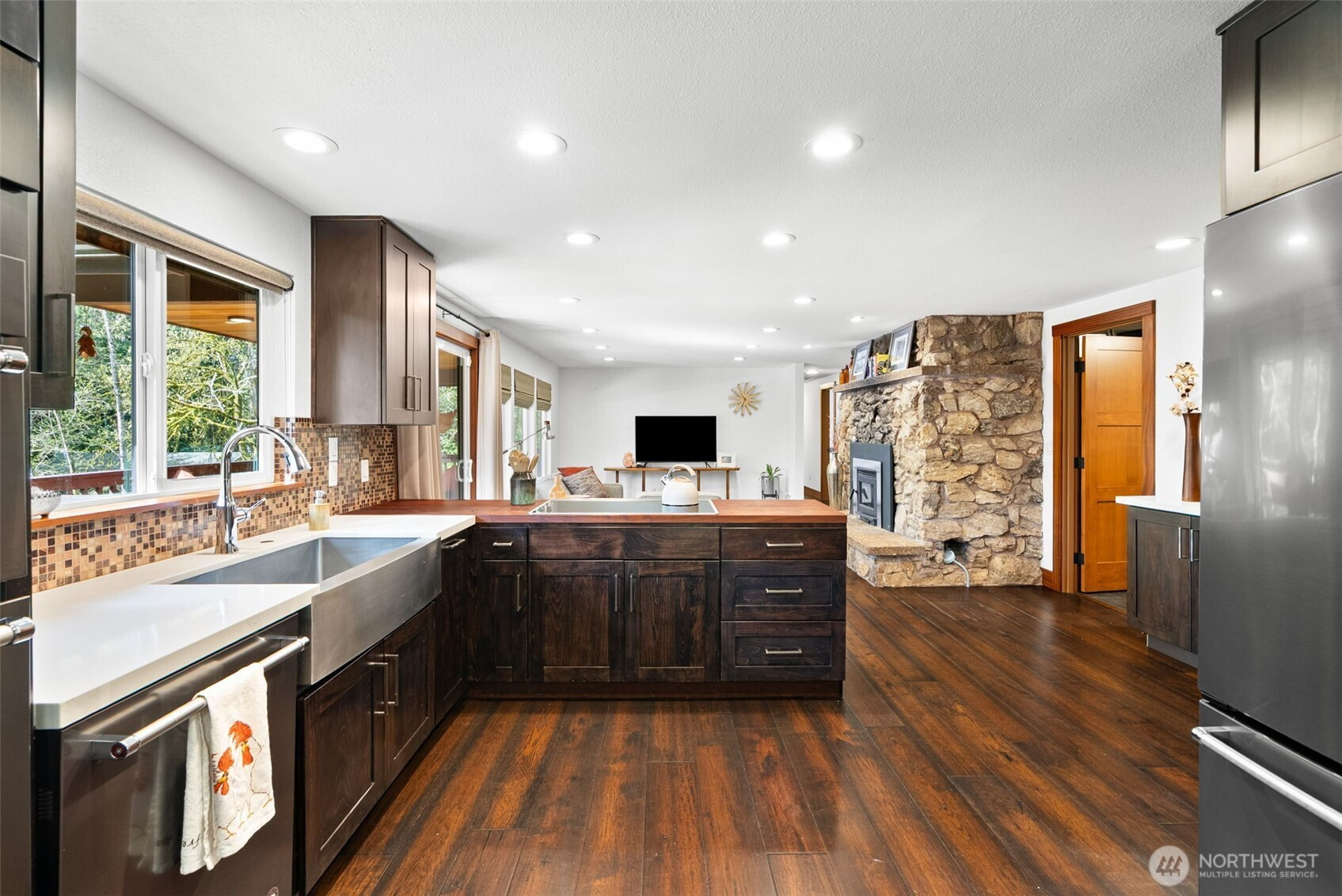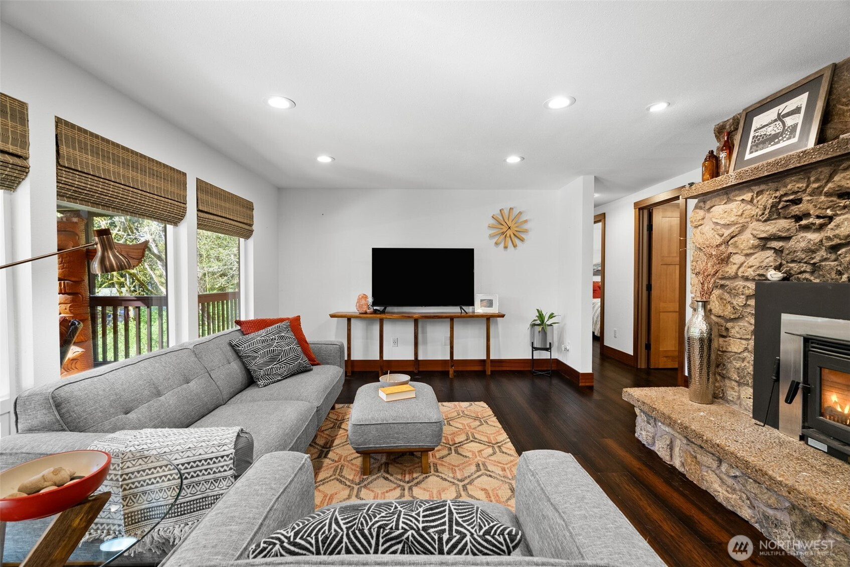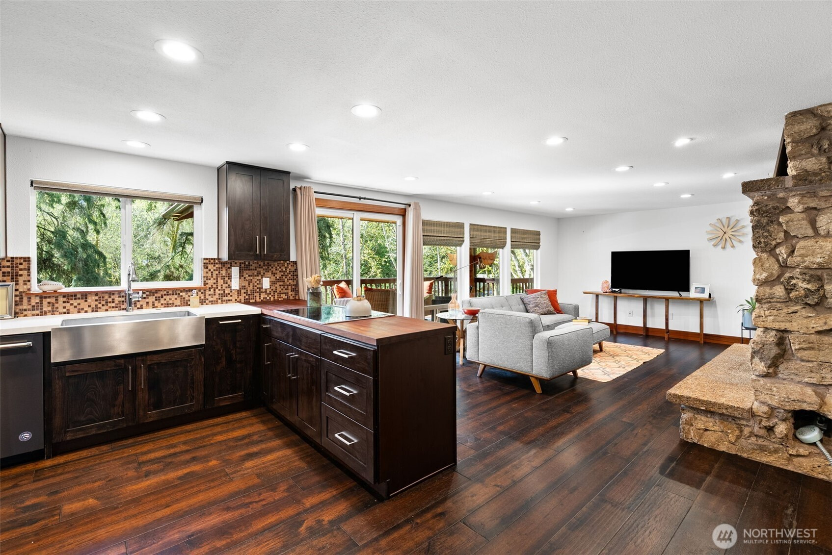 A MASTERCLASS IN DESIGN! Step inside to a freshly reimagined jewel box. Offering the highly coveted ease of true one-level living. With designer finish work rarely seen, the interior features the warmth and substance of dramatic sculpted hardwood floors, solid hardwood doors and custom millwork that speaks to the home's enduring quality. Every surface has been curated to balance timeless elegance with contemporary Northwest comfort. Experience the best of both worlds: a serene, park-like retreat that feels worlds away, yet is located just minutes from the Kingston ferry.