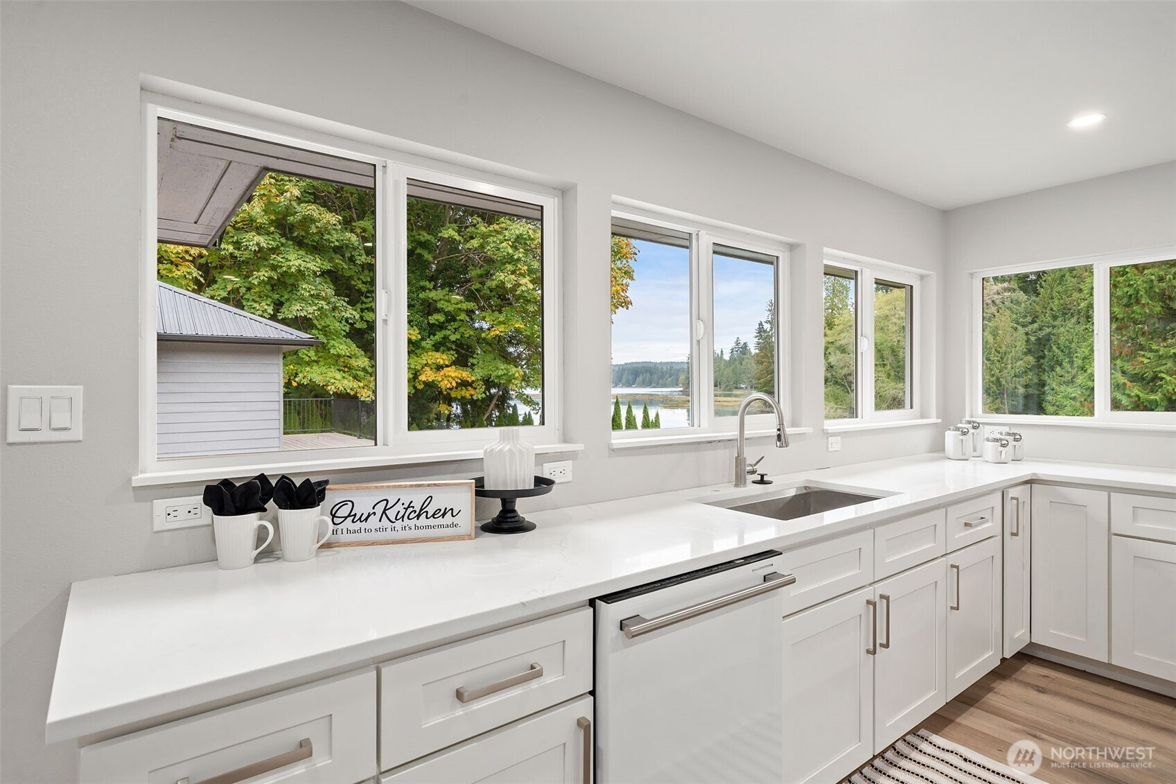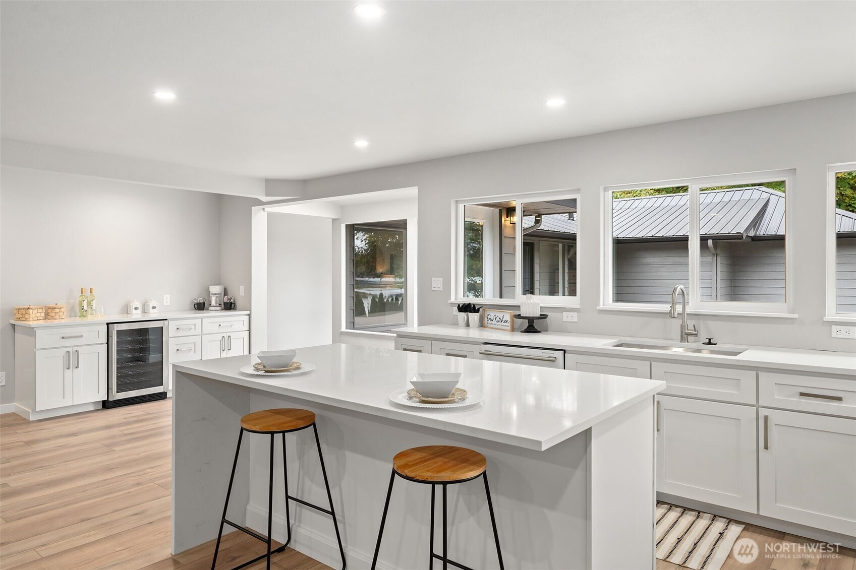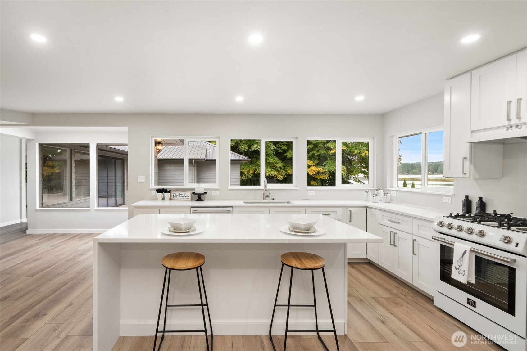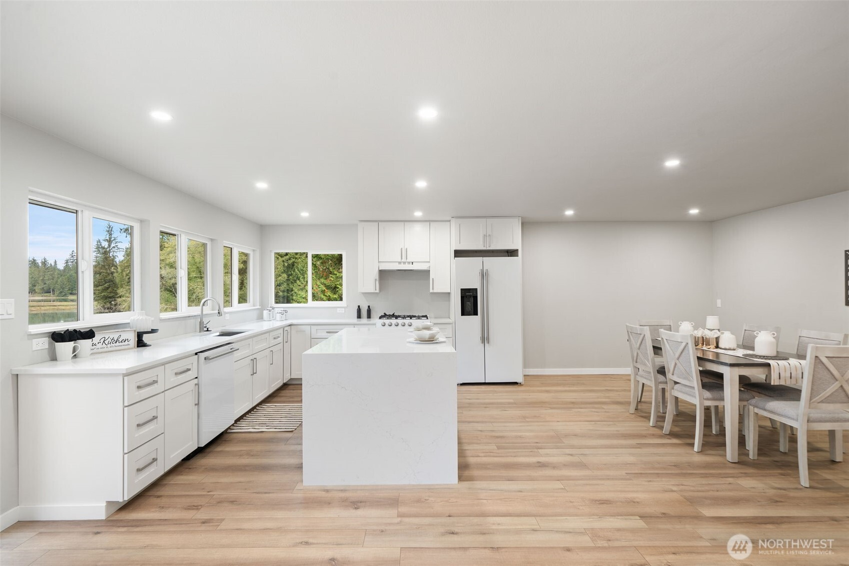 Kingston, WA WATERFRONT on over 2 acres: 3 bed, 3 bath, 2,300 sq ft, folding glass wall to a view deck, 1000+ sf oversized detached shop with loft, attached 2 car garage, minutes to the Kingston/Edmonds ferry. Updated single level layout with a generous great room and a bath off the primary. Quiet Kitsap County setting between Port Gamble and Kingston keeps trails, beaches, and small town amenities close. Buyer to verify all information to their satisfaction.
