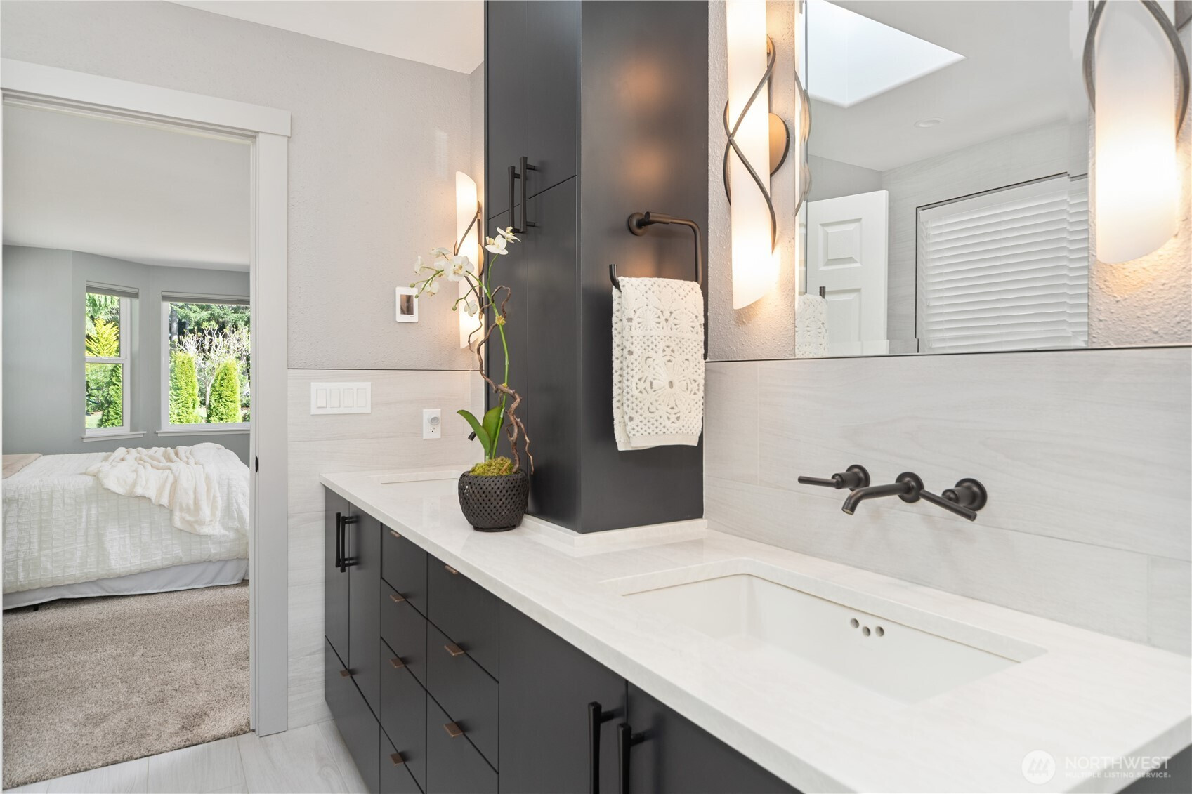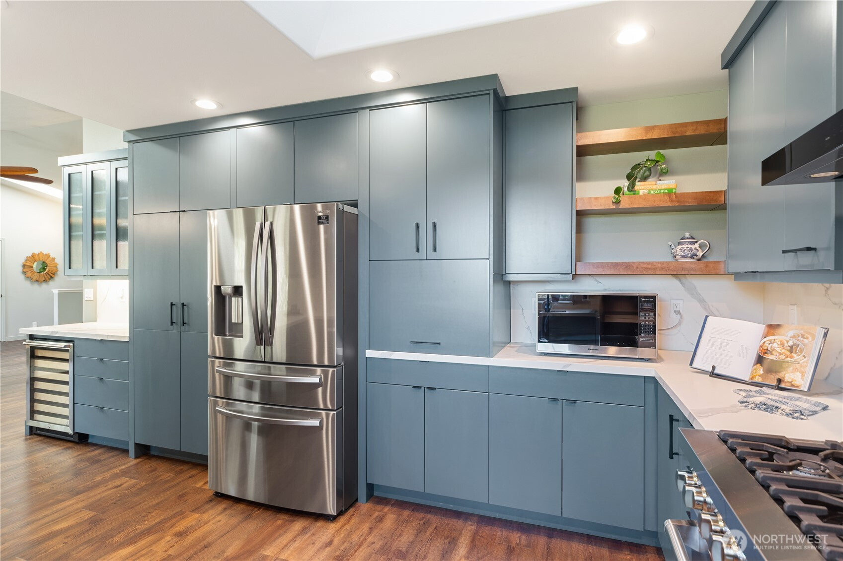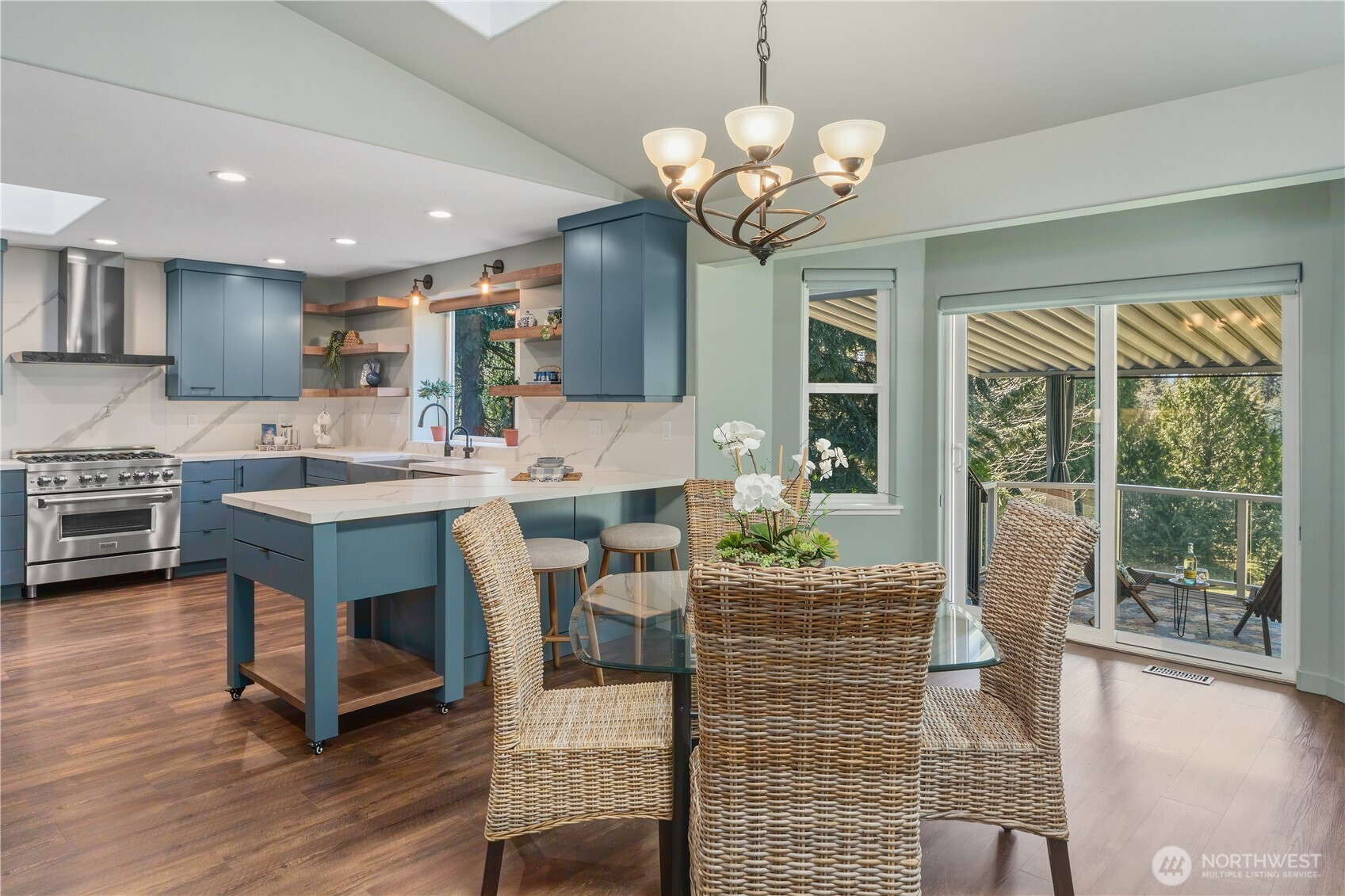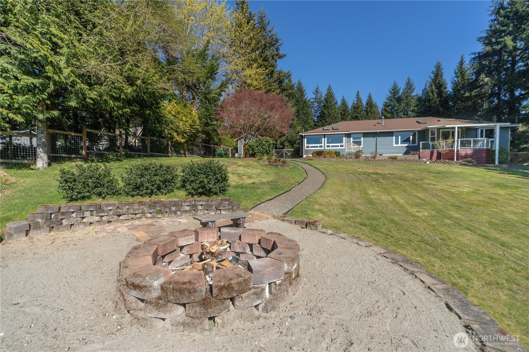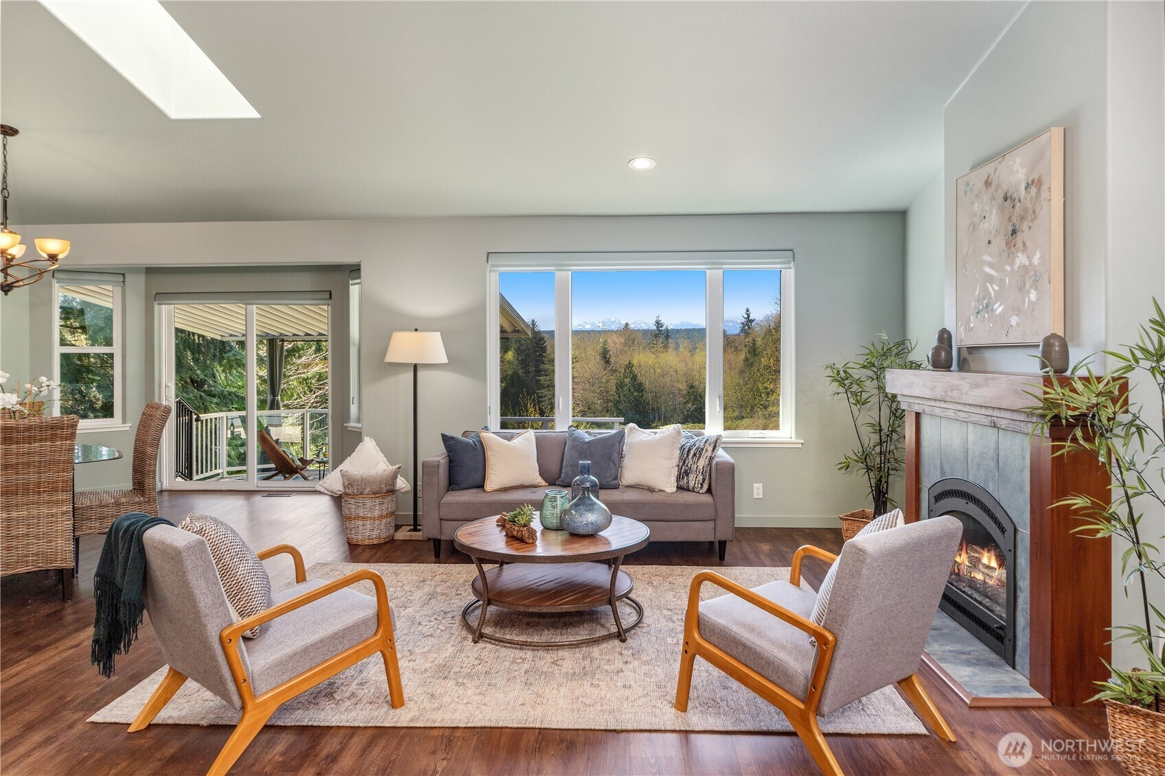 Enjoy Olympic views on Heavenly Place with this gorgeously updated single level home. The thoughtfully designed kitchen is sure to impress, featuring pull-out shelves, corner optimizers, porcelain countertops, instant hot water, a movable island, and high-end appliances. The living room offers a warm and inviting space with a propane fireplace—perfect for cozy winter days while taking in views of the snow-capped Olympic range. Down the hall, you’ll find a spacious primary suite with a walk-in closet and a luxurious five-piece ensuite bath, complete with heated floors, a standalone soaking tub, Kohler fixtures, and a dedicated tankless hot water heater. Just off the primary bath is a versatile flex room, ideal for an office, workout space, or retreat. Step outside to enjoy summer evenings on the covered IPE deck. The property is partially fenced for your pets with beautiful mature landscape and a 10x20 shed for your tools. Conveniently located just five miles from the Kingston ferry, George's Corner park & ride and close to shopping and everyday amenities, this home offers the perfect blend of comfort, style, and location.