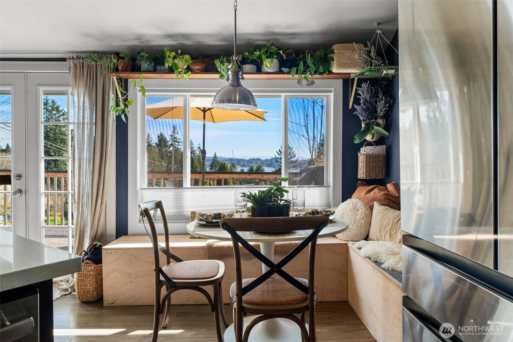 Perched high above Sinclair Inlet, this beautifully updated home offers a front-row seat to the best of the Pacific Northwest. Take in sweeping views of the Cascade Mountain Range and the rhythmic passing of ferries from your own private sanctuary. Step inside to an open floor plan bathed in natural light, where large windows perfectly frame the water and mountain vistas. The living space and dining nook flow seamlessly into the updated cook’s kitchen, featuring a custom backsplash, breakfast bar, and large deep sink. French doors lead from the main living area to an expansive deck, perfect for morning coffee or sunset dinners with a view. The primary bedroom is conveniently located off the main area and includes an attached 3/4 bath, 2nd bedroom and 3rd finished room/office with closet. Outdoors, the large Pergola is an ideal spot for shaded outdoor lounging or hosting summer gatherings. Embrace your green thumb with established raised beds and extend your growing season and nurture delicate starts in the dedicated greenhouse, ensuring fresh produce and blooms year-round. Situated just blocks from the vibrant shops and restaurants of Manette, as well as Manette Park’s fields and playgrounds, this home offers the ultimate lifestyle. Commuters will appreciate the easy access to PSNS, Bangor, and the Bremerton/Seattle ferry. Be sure to check out the video and then come see this one today!