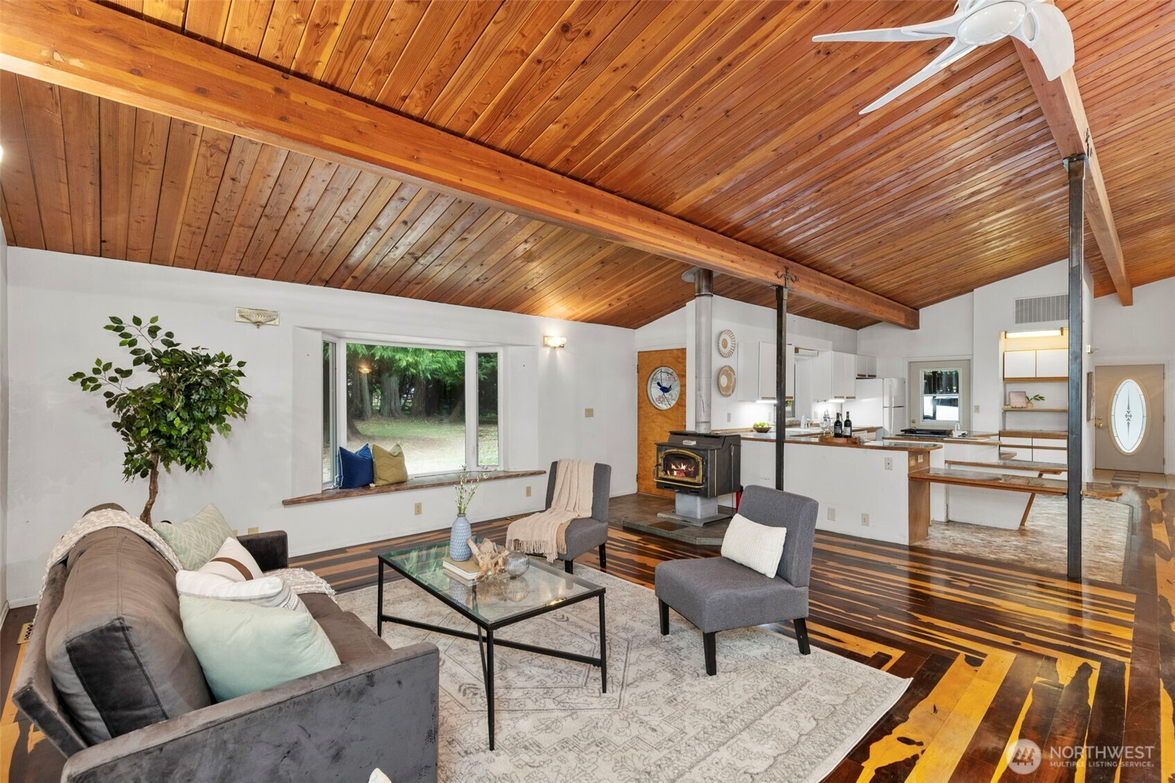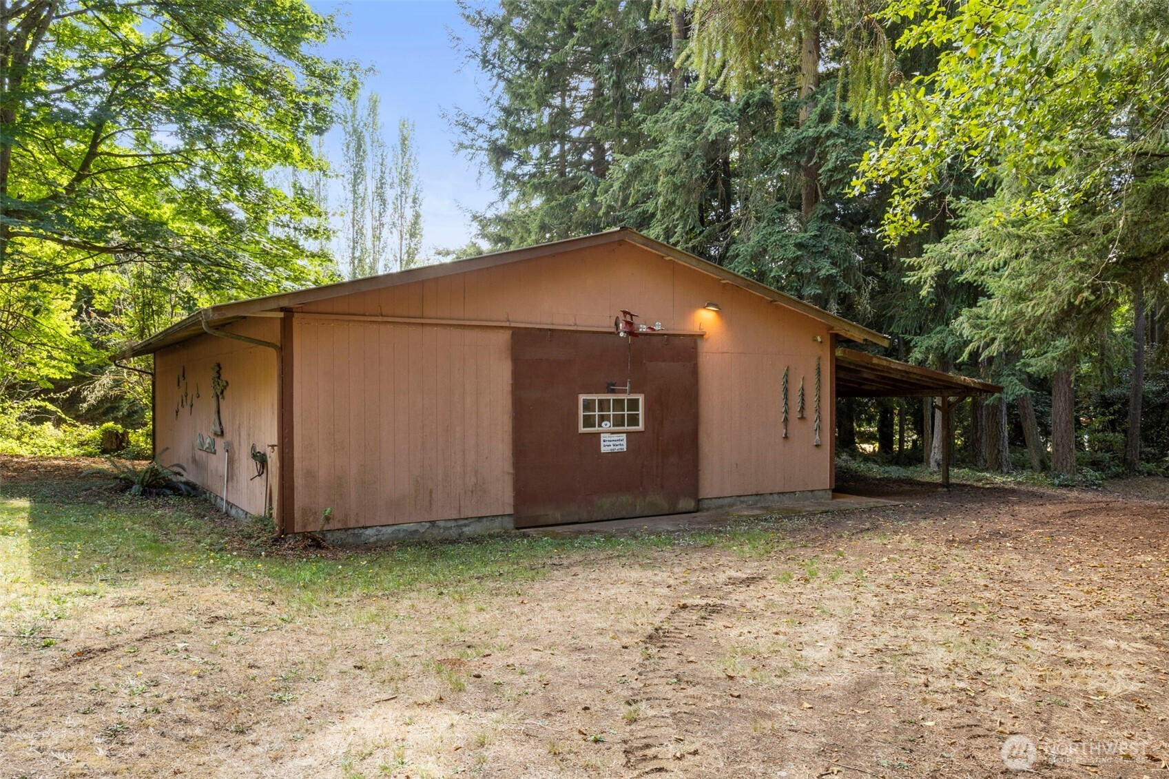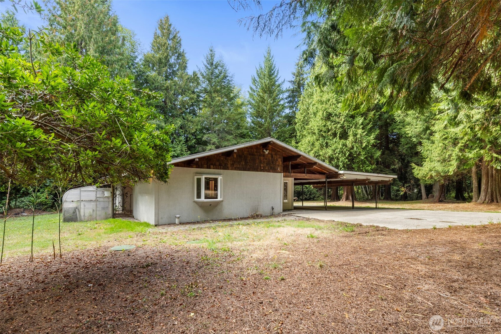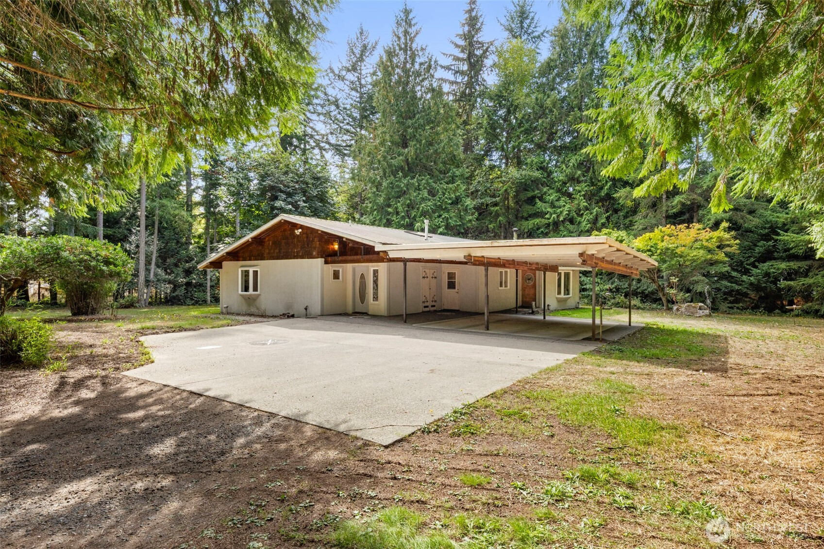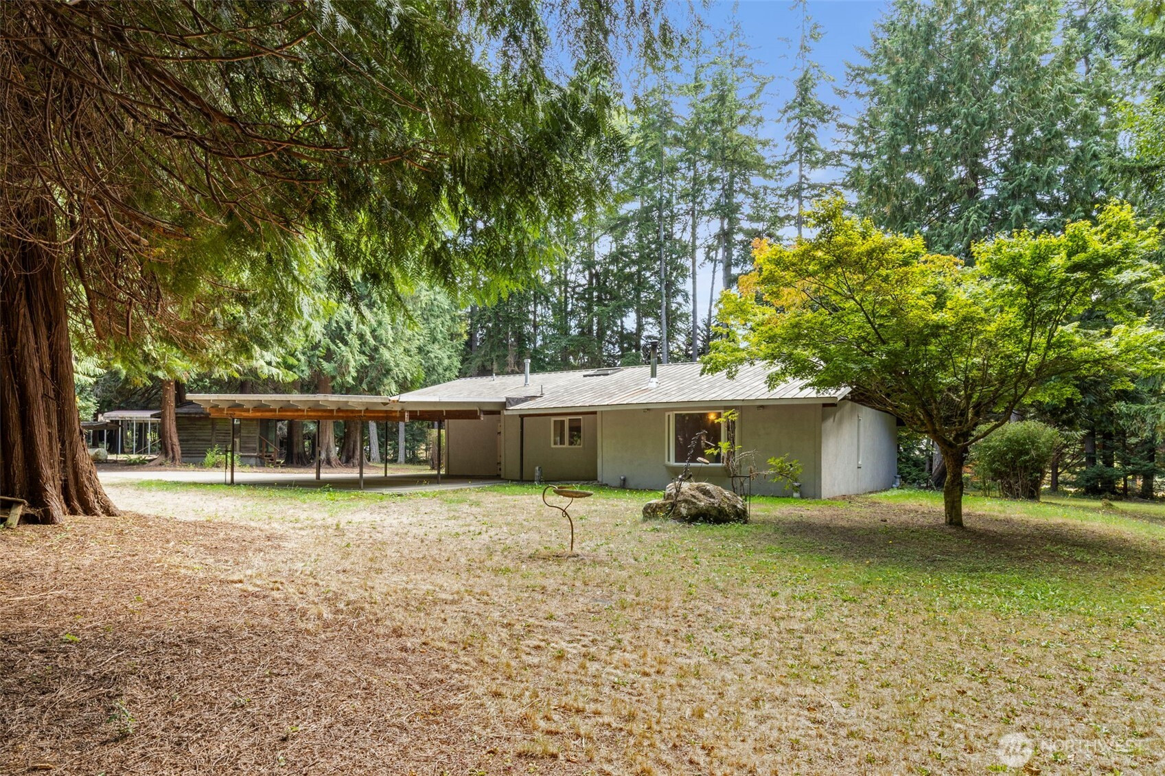 Amazing Poulsbo property with PLENTY of room to grow. Custom home is situated on just over 2 acres level land with mature trees with onsite septic and two party well and no HOA! Enjoy the security of a gated entry to your home. The home has an open manageable floorplan, custom iron work and floors and soaring tongue & groove vaulted ceilings. From the front door step into the great room area with dining looking out onto a covered patio area, living area with cozy wood burning stove and a window seat to enjoy the forest views, and a spacious and open kitchen with custom built island. Huge primary bedroom with access to patio area. Property has a huge shop and several outbuildings. Adjacent 2+ acres is also listed for sale. See MLS #2433611