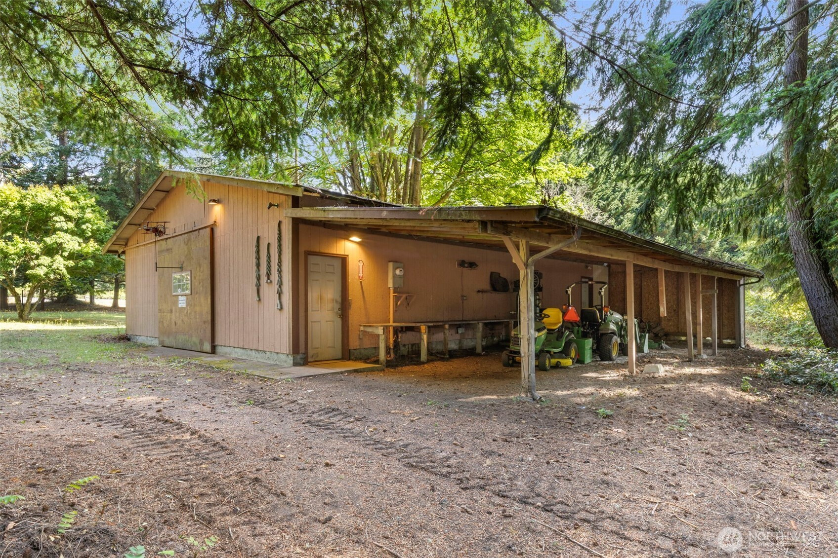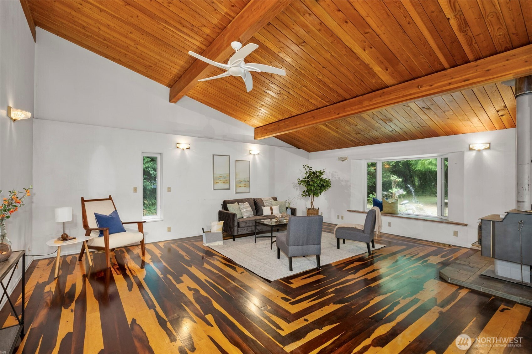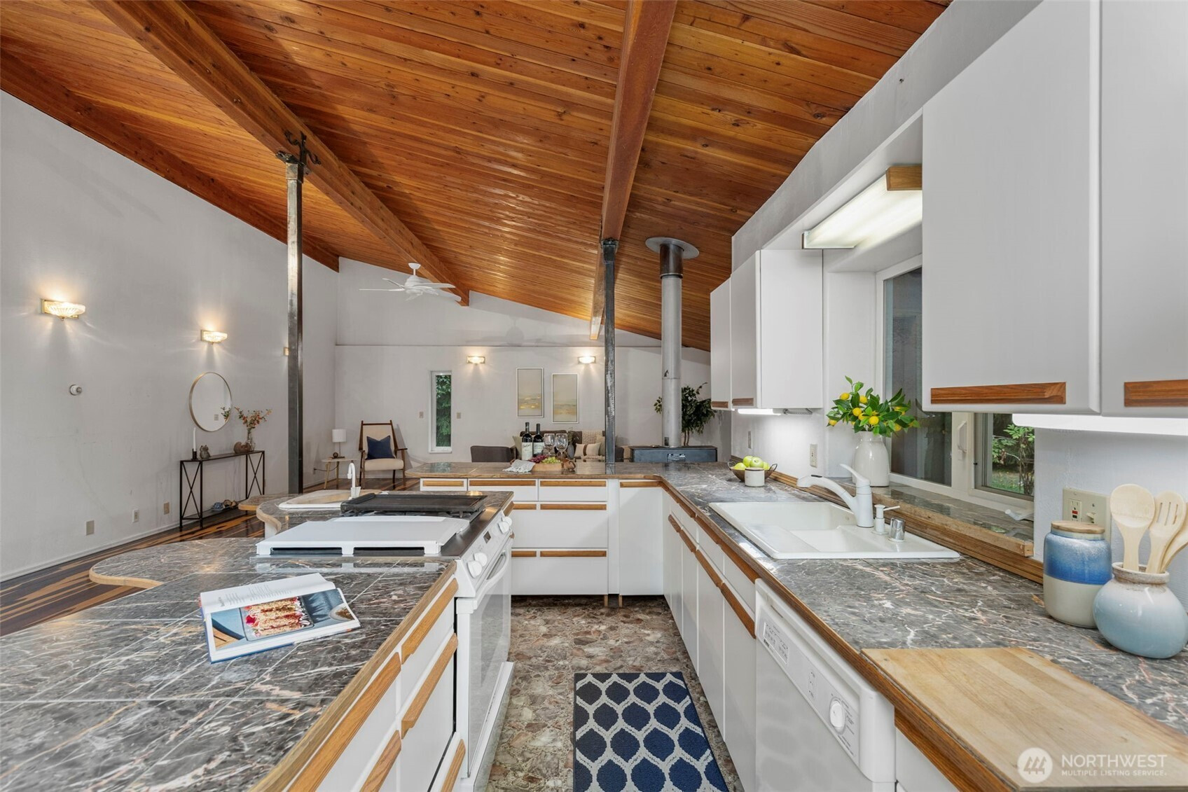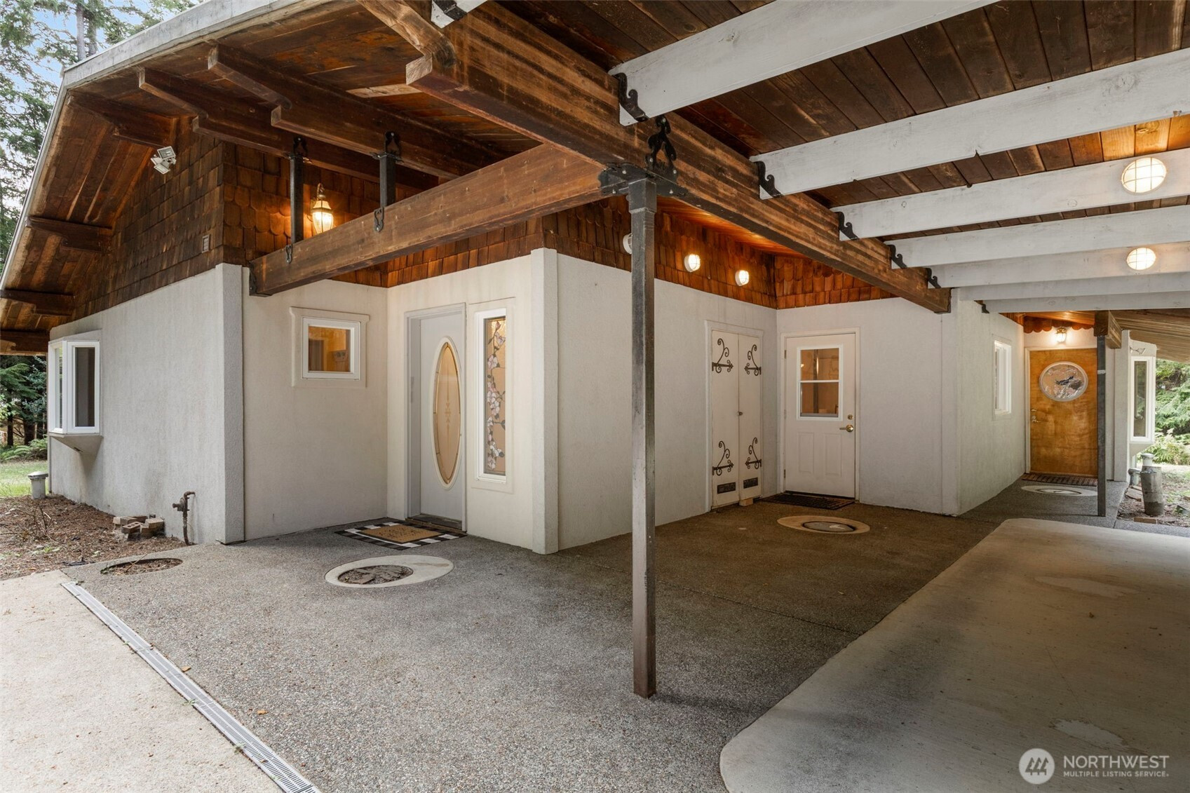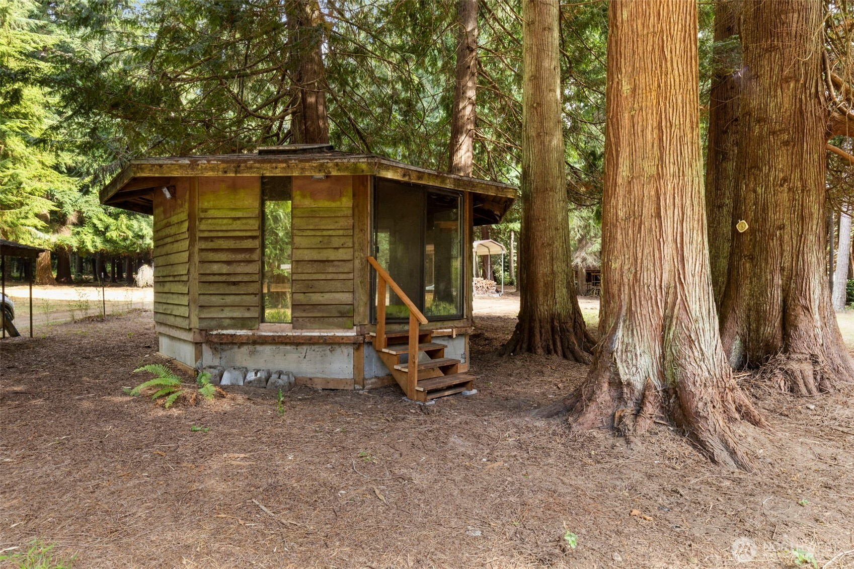 Amazing Poulsbo property with PLENTY of room to grow. Custom home is situated on just over 2 acres level land with mature trees with onsite septic and two party well and no HOA! Enjoy the security of a gated entry to your home. The home has an open manageable floorplan, custom iron work and floors and soaring tongue & groove vaulted ceilings. From the front door step into the great room area with dining looking out onto a covered patio area, living area with cozy wood burning stove and a window seat to enjoy the forest views, and a spacious and open kitchen with custom built island. Huge primary bedroom with access to patio area. Property has a huge shop and several outbuildings. Adjacent 2+ acres is also listed for sale. See MLS #2433611