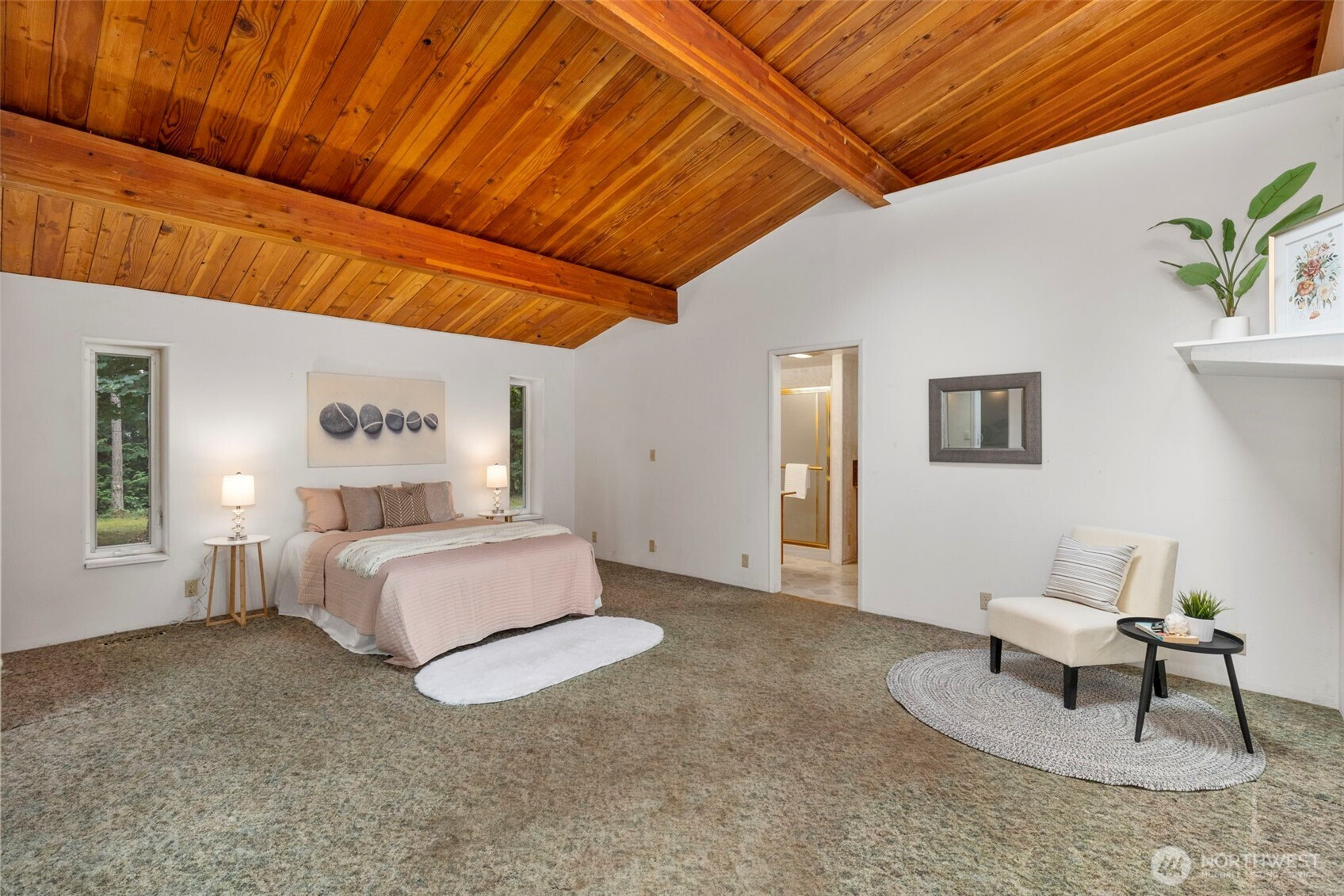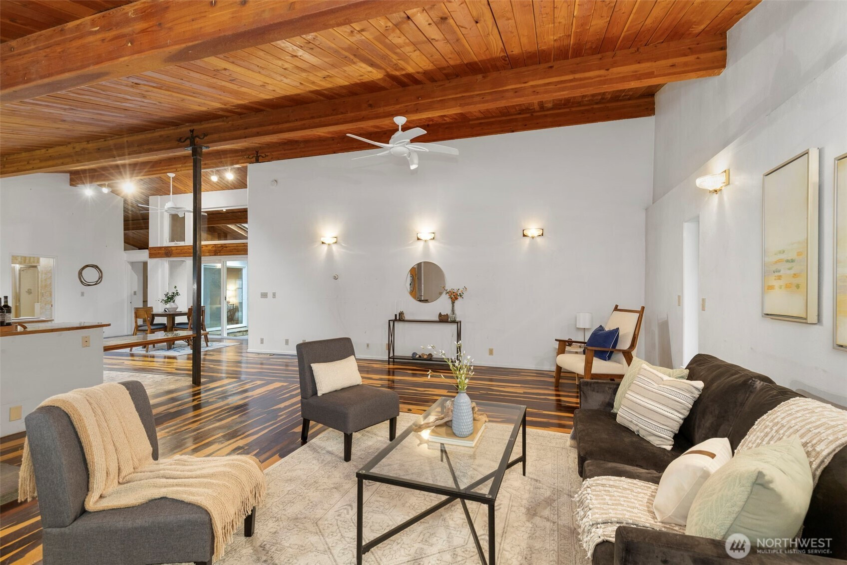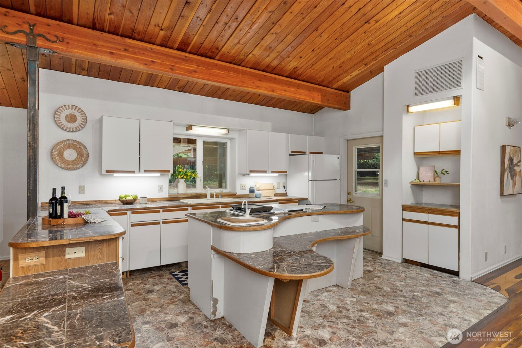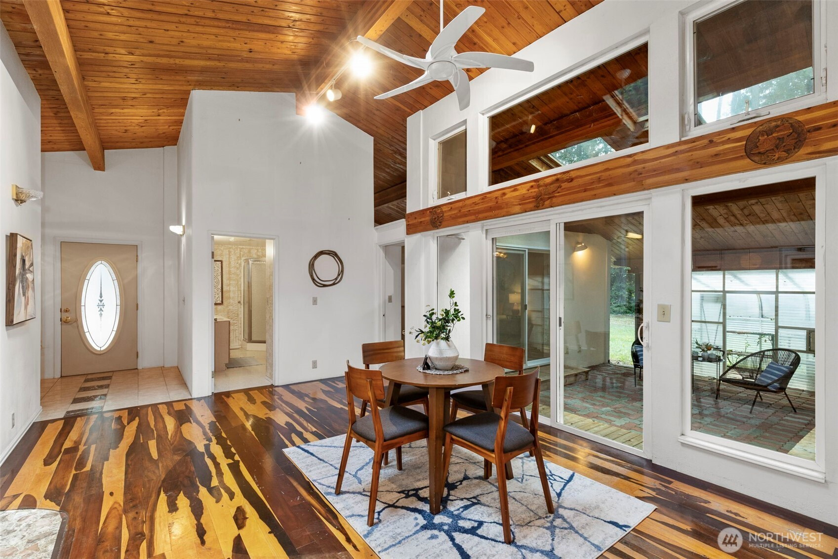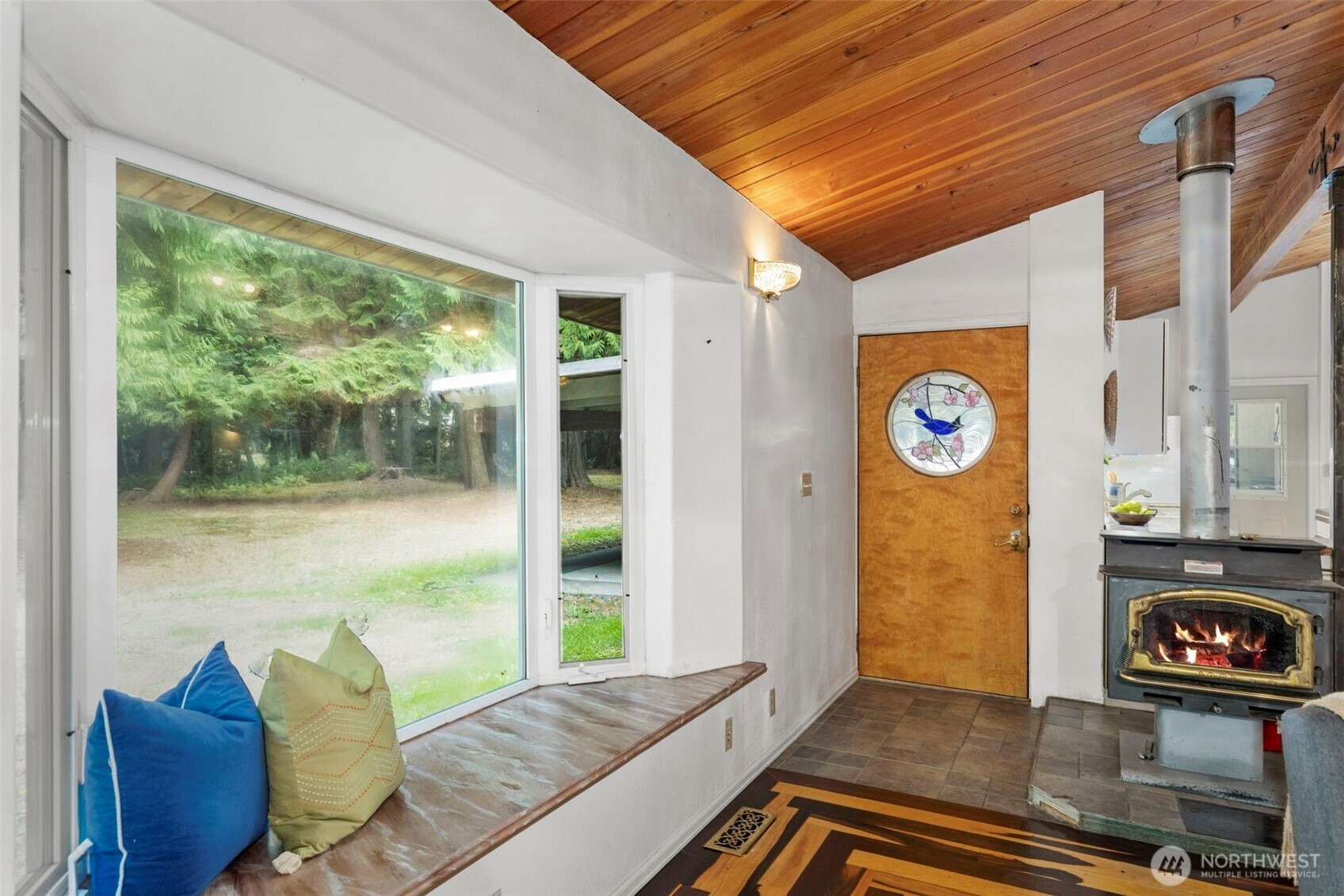 Amazing Poulsbo property with PLENTY of room to grow. Custom home is situated on just over 2 acres level land with mature trees with onsite septic and two party well and no HOA! Enjoy the security of a gated entry to your home. The home has an open manageable floorplan, custom iron work and floors and soaring tongue & groove vaulted ceilings. From the front door step into the great room area with dining looking out onto a covered patio area, living area with cozy wood burning stove and a window seat to enjoy the forest views, and a spacious and open kitchen with custom built island. Huge primary bedroom with access to patio area. Property has a huge shop and several outbuildings. Adjacent 2+ acres is also listed for sale. See MLS #2433611