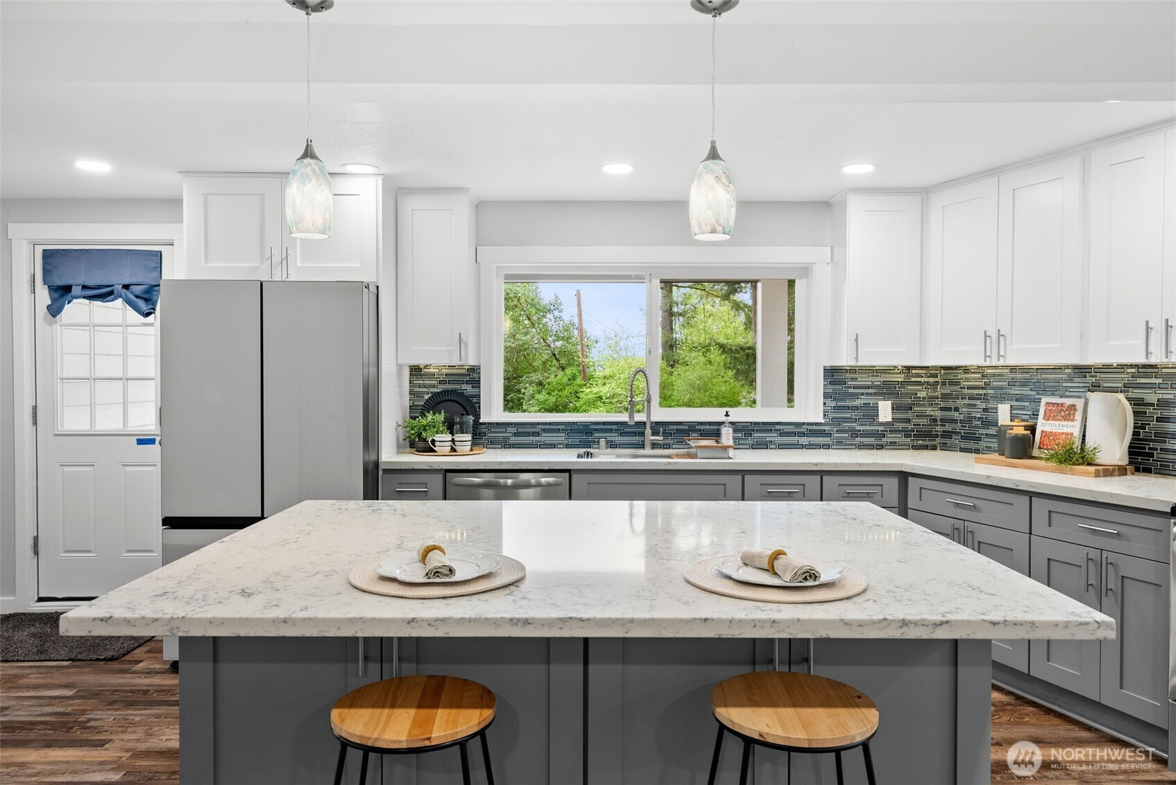 Perched on a corner lot along coveted Marine Drive, this beautifully renovated residence captures the ease and quiet luxury of water view living in Bremerton. Enjoy slow mornings on the primary suite deck or front porch as sailboats pass through Dyes Inlet, Ostrich and Mud Bays. Thoughtfully remodeled throughout, including a new roof in 2022, the home features a refined kitchen with quartz countertops, premium stainless appliances, and custom cabinetry, all opening to light-filled living spaces with vaulted ceilings and a seamless flow. The primary suite offers a fireplace, sitting area, walk in closet, and private deck access, creating a true retreat. The lower level adds flexibility with two bedrooms, baths, and a generous space suited for a home office, fitness area, or media room. Ideally located with convenient access to the Bremerton ferry, naval bases, and everyday shopping, this home offers a rare blend of comfort, style, and connection to the water.