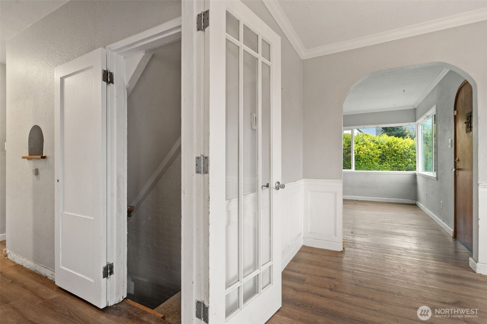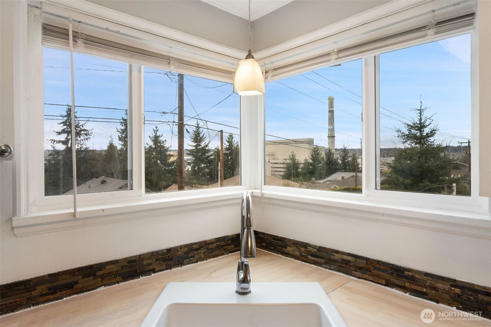 Fall in love with timeless charm in this gorgeous corner-lot home overlooking the city, Bremerton’s Sinclair Inlet, and the Navy shipyard. Rich in character and classic appeal, this inviting residence is filled with warm natural light that highlights its original details, including graceful arched doorways and a spacious living room with expansive corner windows. Step outside to your own private, fenced retreat or unwind on the covered front porch while taking in the views. The main level is fully finished, while the lower level offers a large unfinished basement with a dedicated workshop and abundant storage—perfect for projects or future expansion. Ideally located within walking distance to the shipyard, just minutes from SR-16, and only two miles from the ferry and downtown Bremert