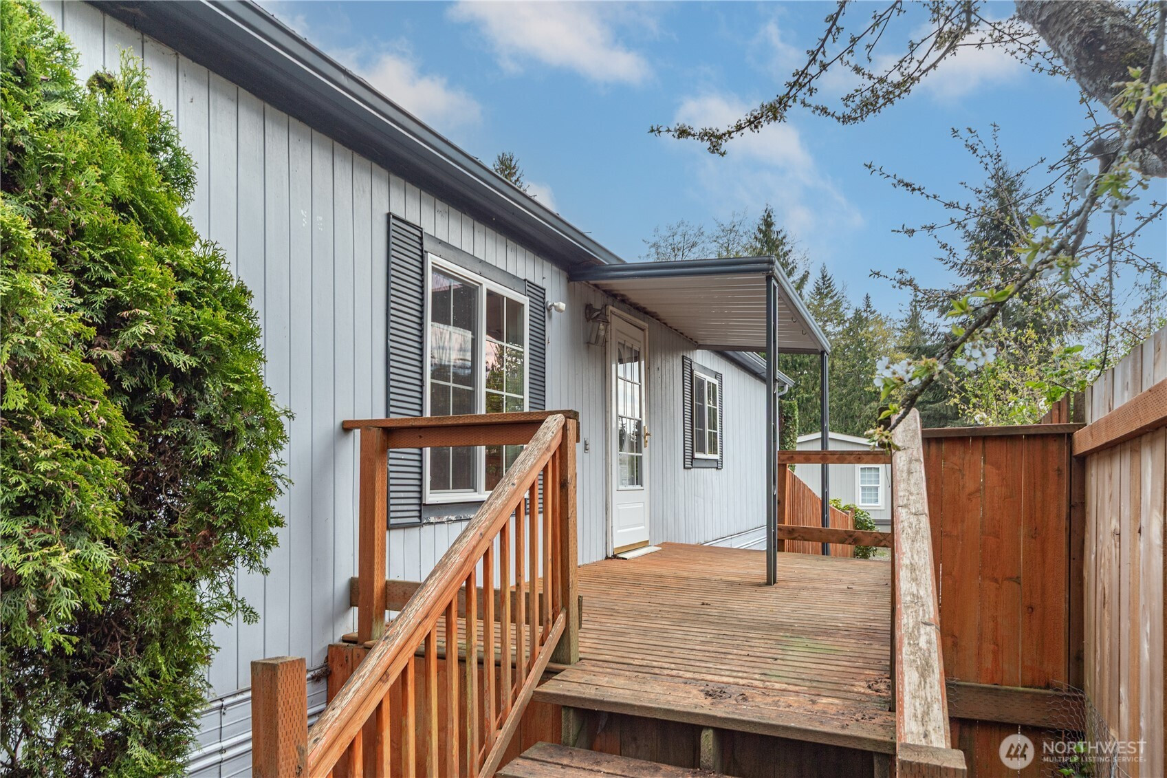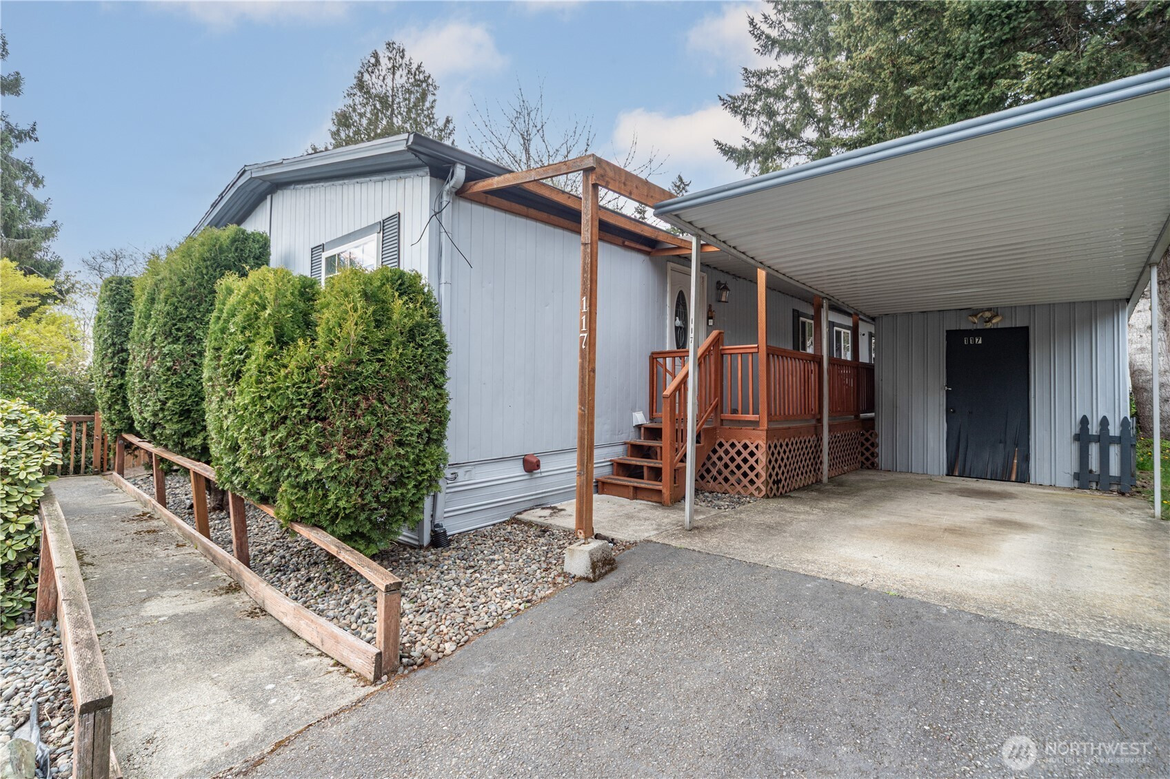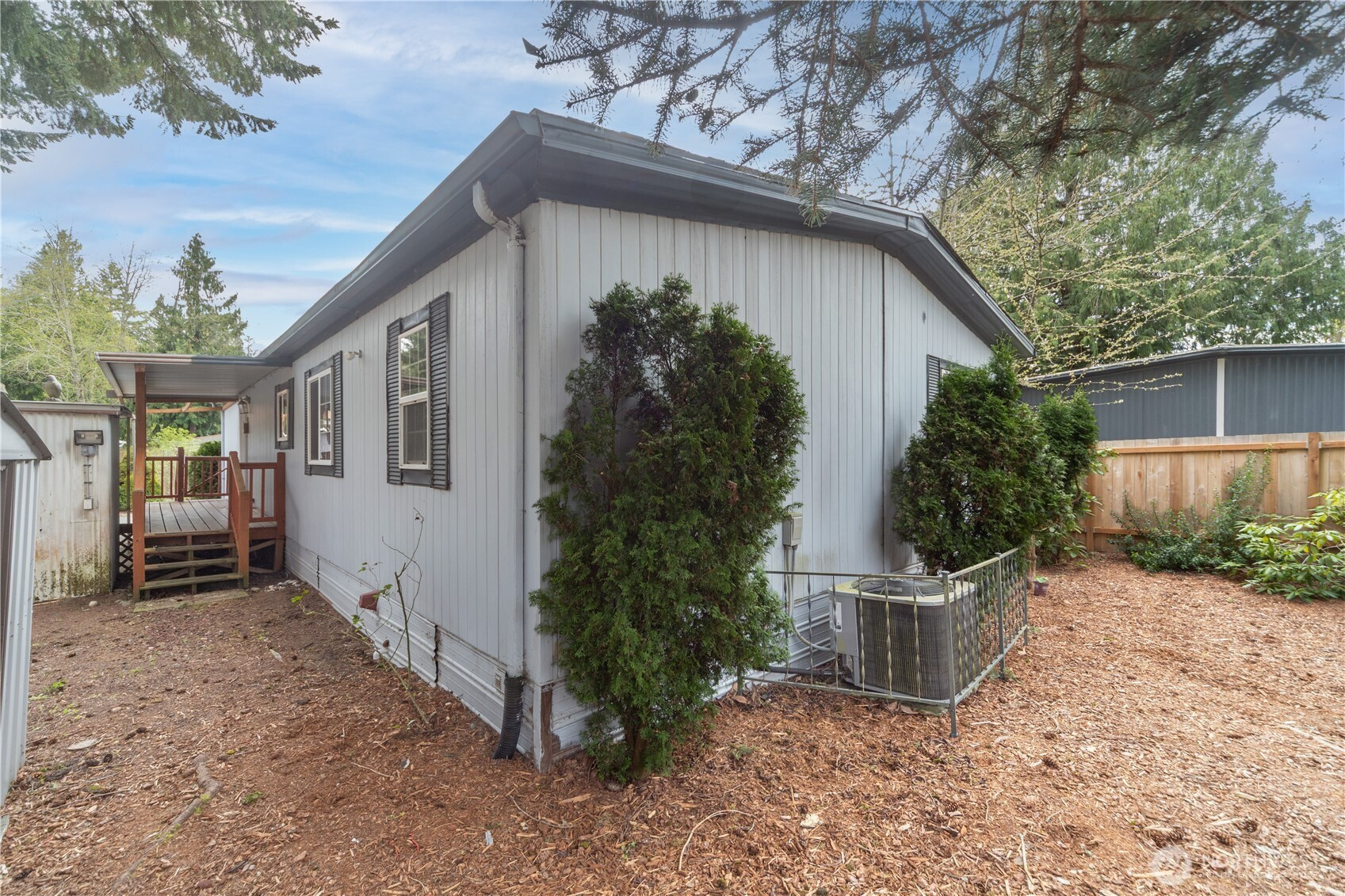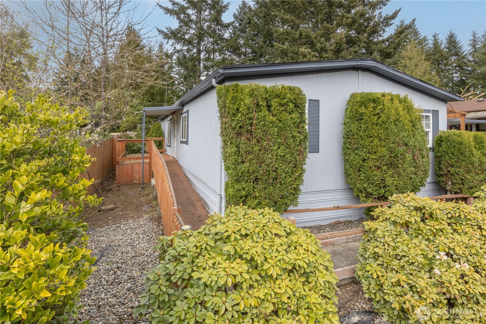 All-age Park in Central Kitsap School District! This 1484SF, 3 bedroom, 2 bath home offers a ramped entry plus a heat pump for efficient heating and AC, along with a brand new water heater, and vinyl windows. The inviting kitchen features a wood-lined ceiling, breakfast bar, and all appliances included. Desirable split floor plan with spacious primary suite offering a walk-in closet and ensuite bath with walk-in tub (heat, jets, lights), while two additional bedrooms and an updated bath with walk-in shower sit at the opposite end of the home for added privacy. Generous living spaces include a living room, dining room, and separate family room, giving everyone room to spread out. Exterior features include a newly fenced backyard, covered carport and two storage sheds. Kariotis is an all-age park with clubhouse and playground; space rent includes water and sewer for added value. Convenient location close to shopping, bus line, and military bases makes this a great place to call home.